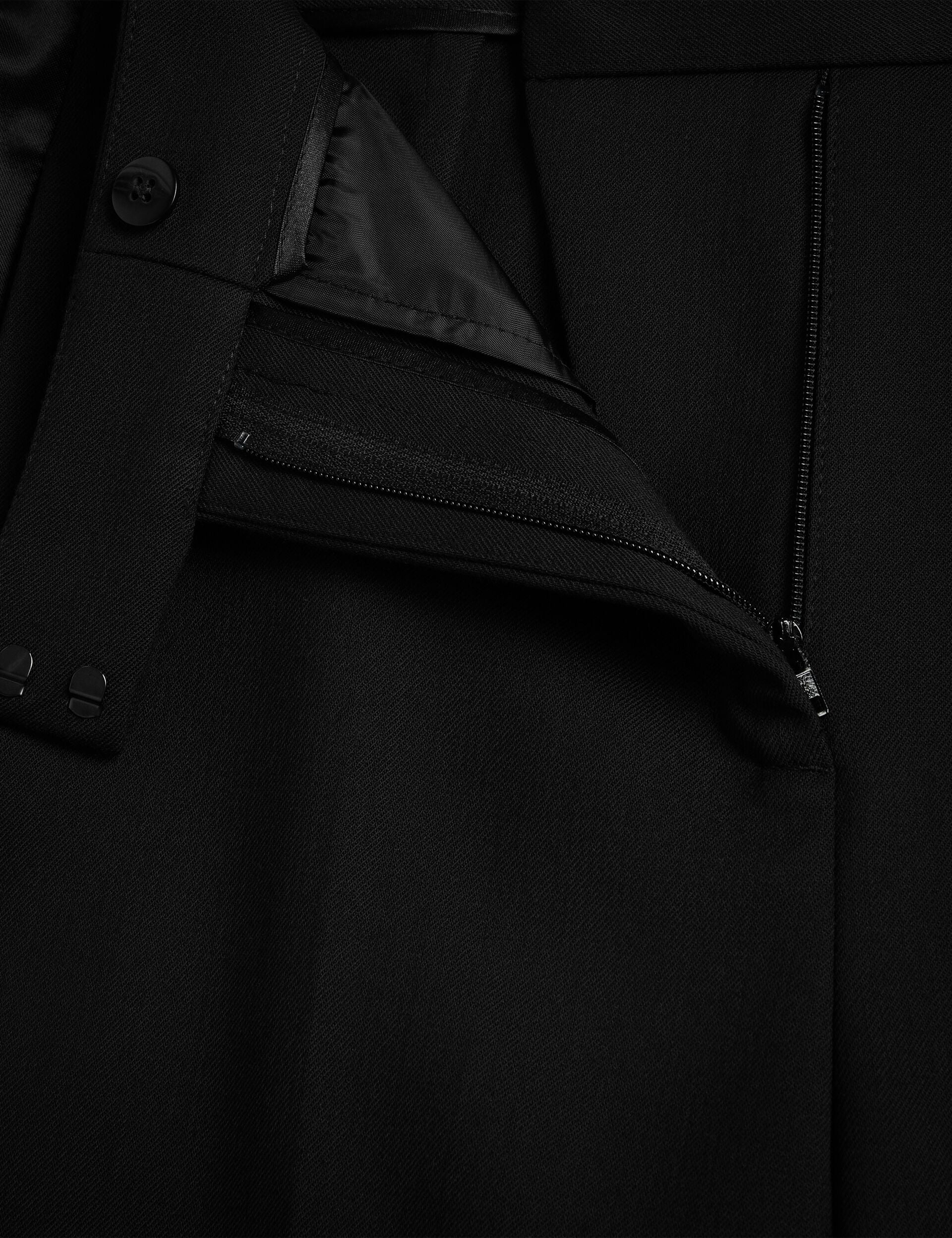 Step into refined elegance with our AARIAALT tuxedo trousers. They feature a zip fastening with a discreet hook and bar closure for a seamless look. Leg creases add a touch of classic charm, while the pockets and darts on the waist provide both functionality and a tailored fit.