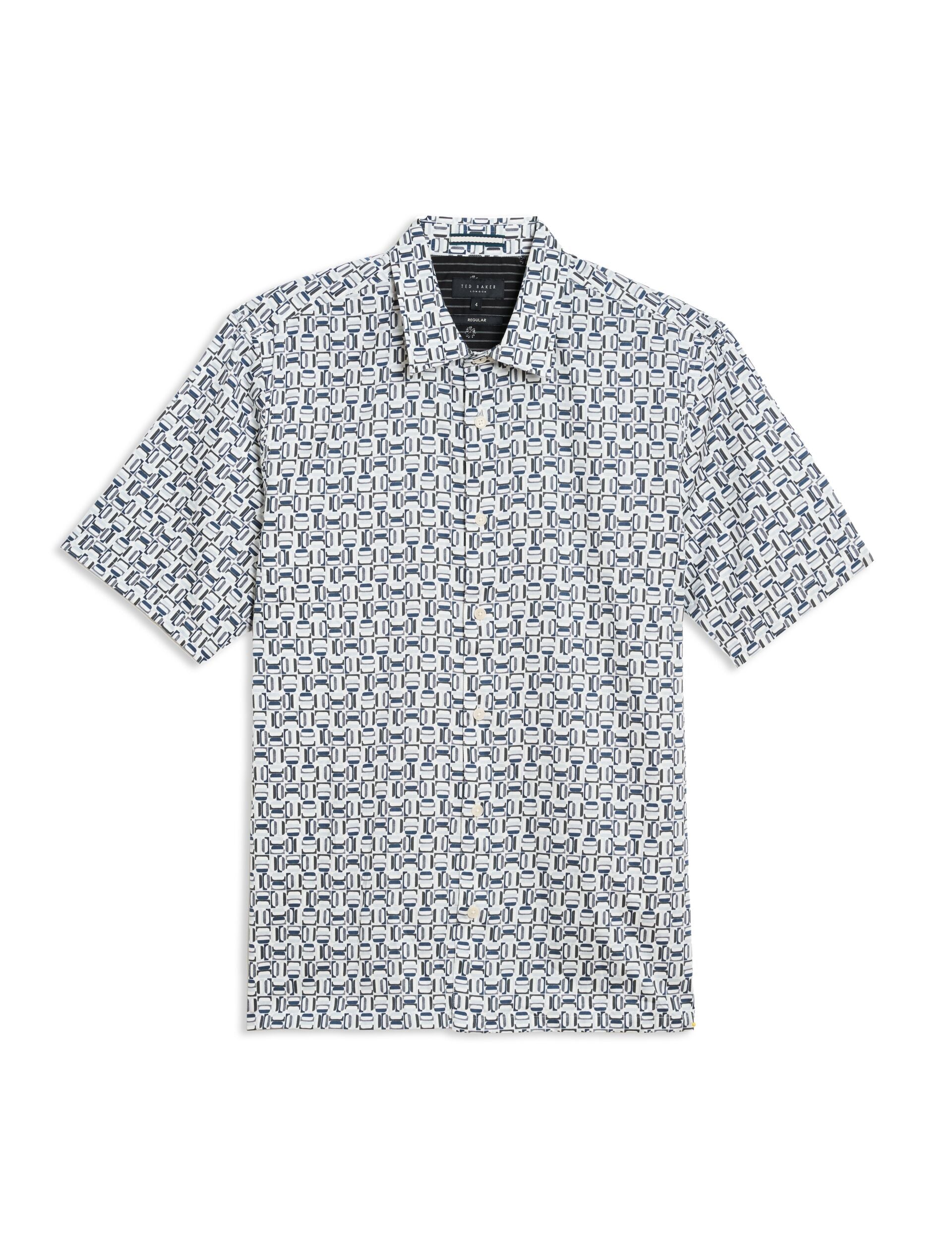Made from a comfortable cotton blend with stretch fabric, ASTUN is designed to keep you cool and stylish during warm days. Its eye-catching geometric print and classic collar make it a versatile choice for any occasion. Plus, the regular fit ensures a comfortable and relaxed feel all day long.
