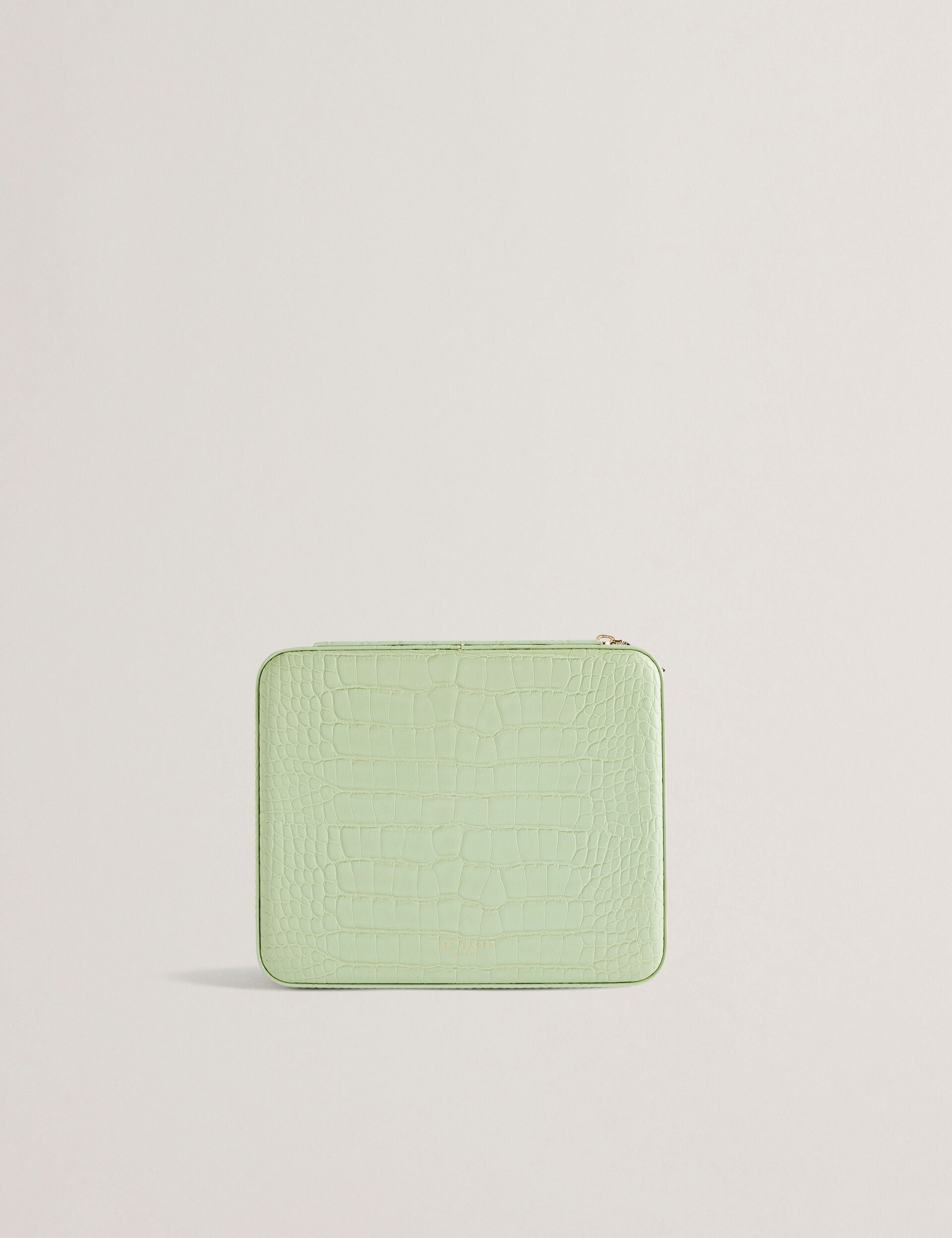 Fit your entire jewelry collection into the BRENDYY case with multiple storage compartments and a handy elasticated pocket. The zip around fastening makes it safe for travelling, and the faux leather outer is finished with a croc effect and branding detail for sleek style.