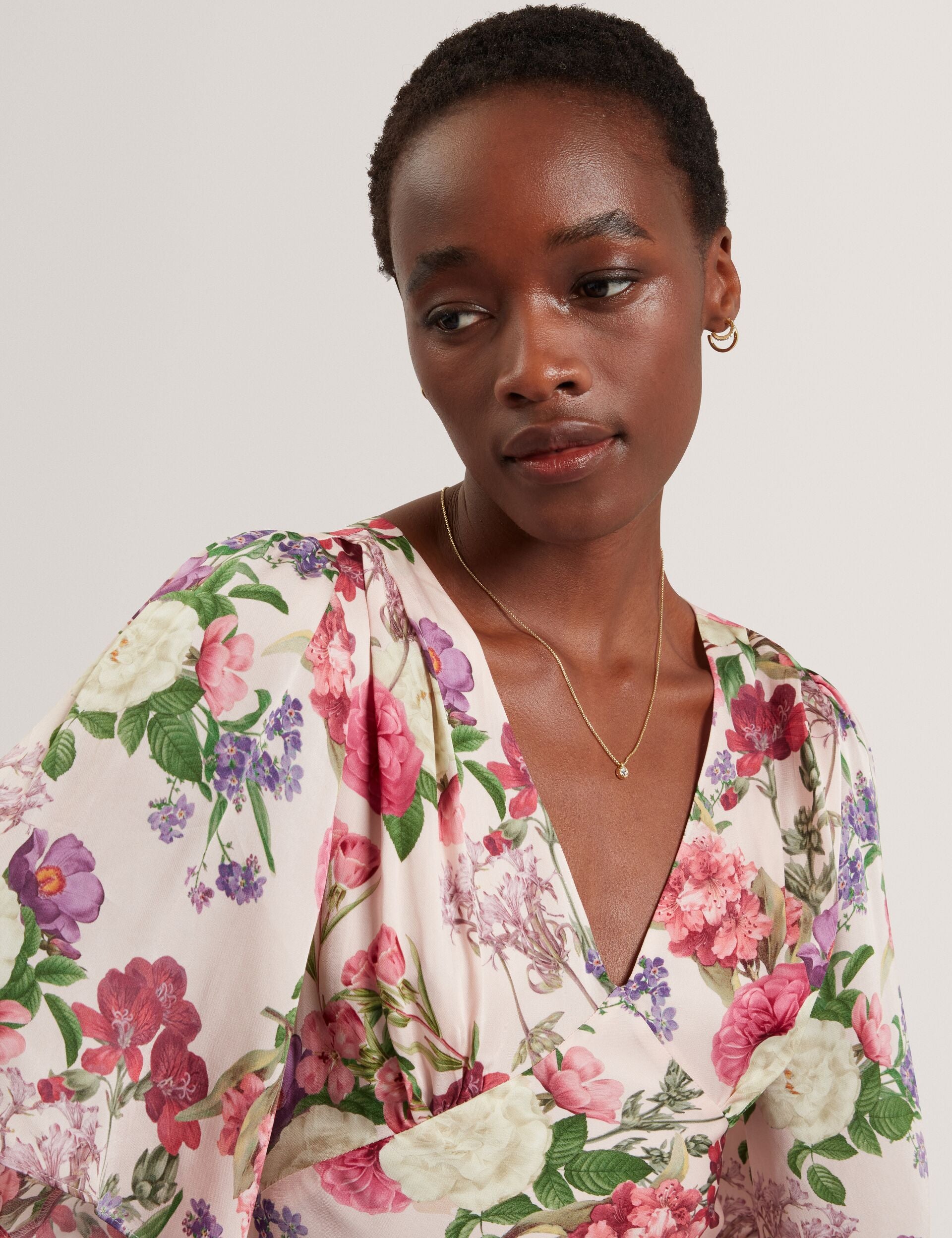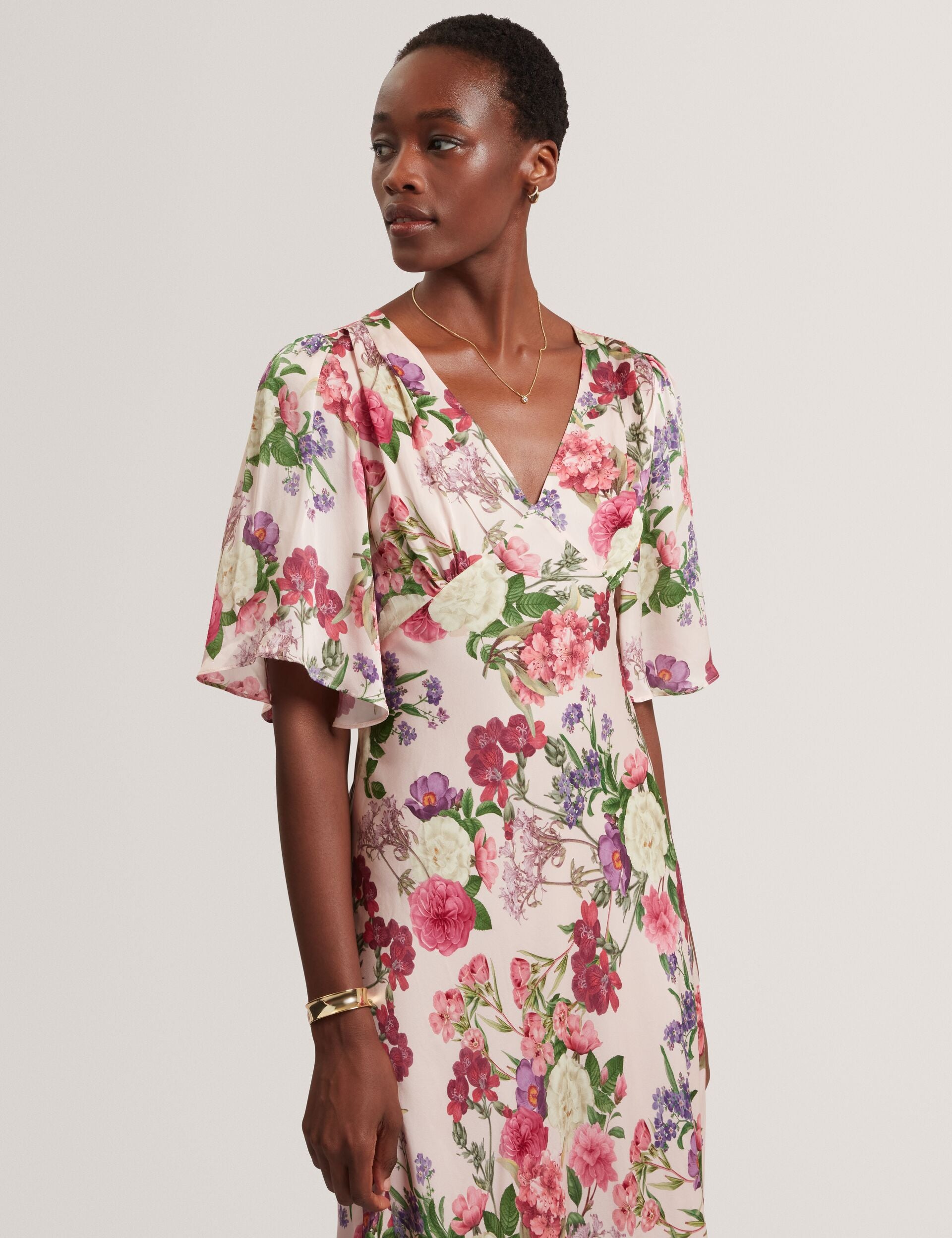 Bloom beautifully in the BRIAR V-NECK FLUTTER SLEEVE DRESS, featuring delicate Ted Baker florals and airy, feminine charm.