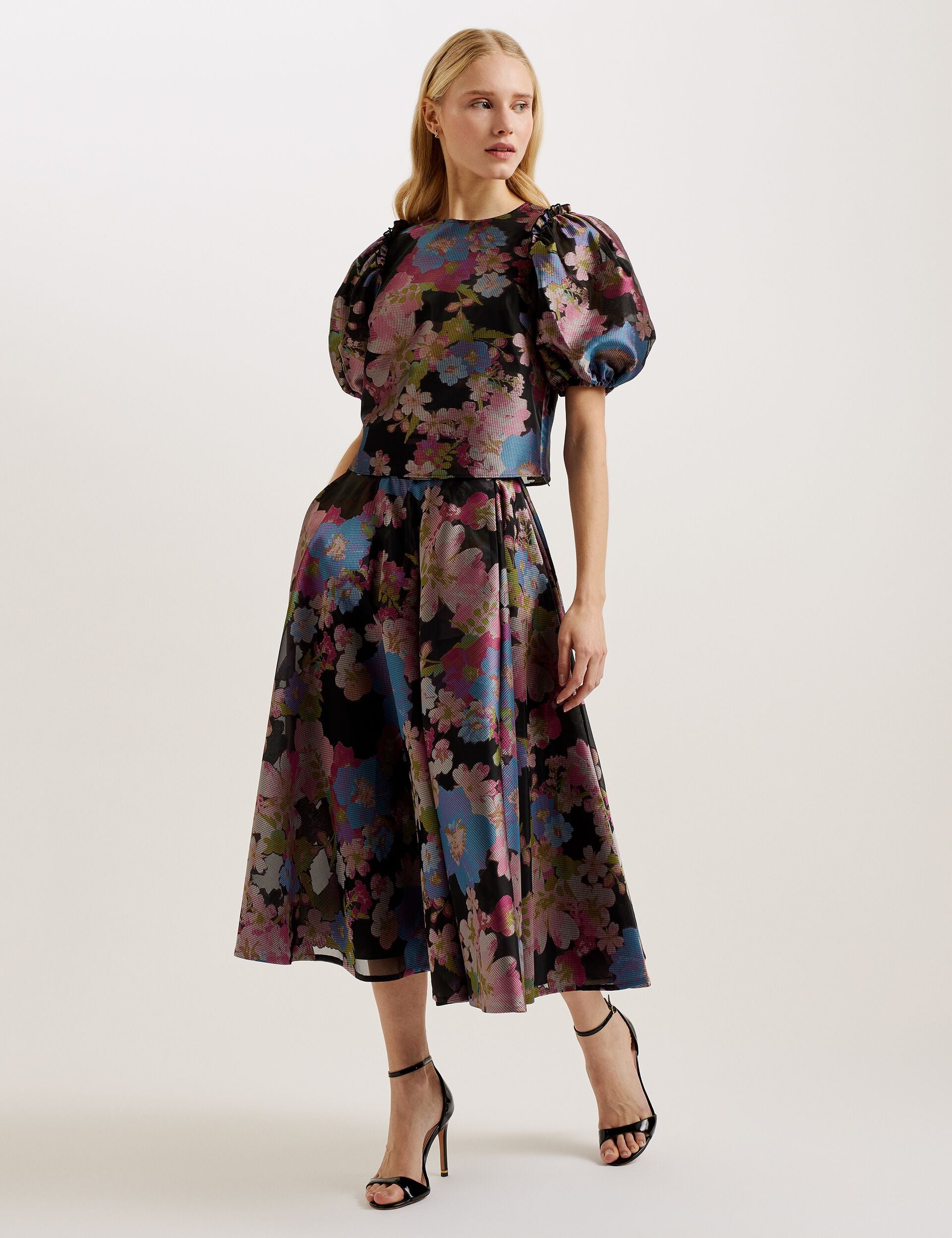 A bold jacquard floral design makes BURSA the ultimate statement skirt. Fitted at the waist and flaring out in an A-line silhouette, this midi skirt will bring fun and flounce to your looks every season. Keep it simple for spring with a plain t-shirt, or edge it up for winter with leather accessories.