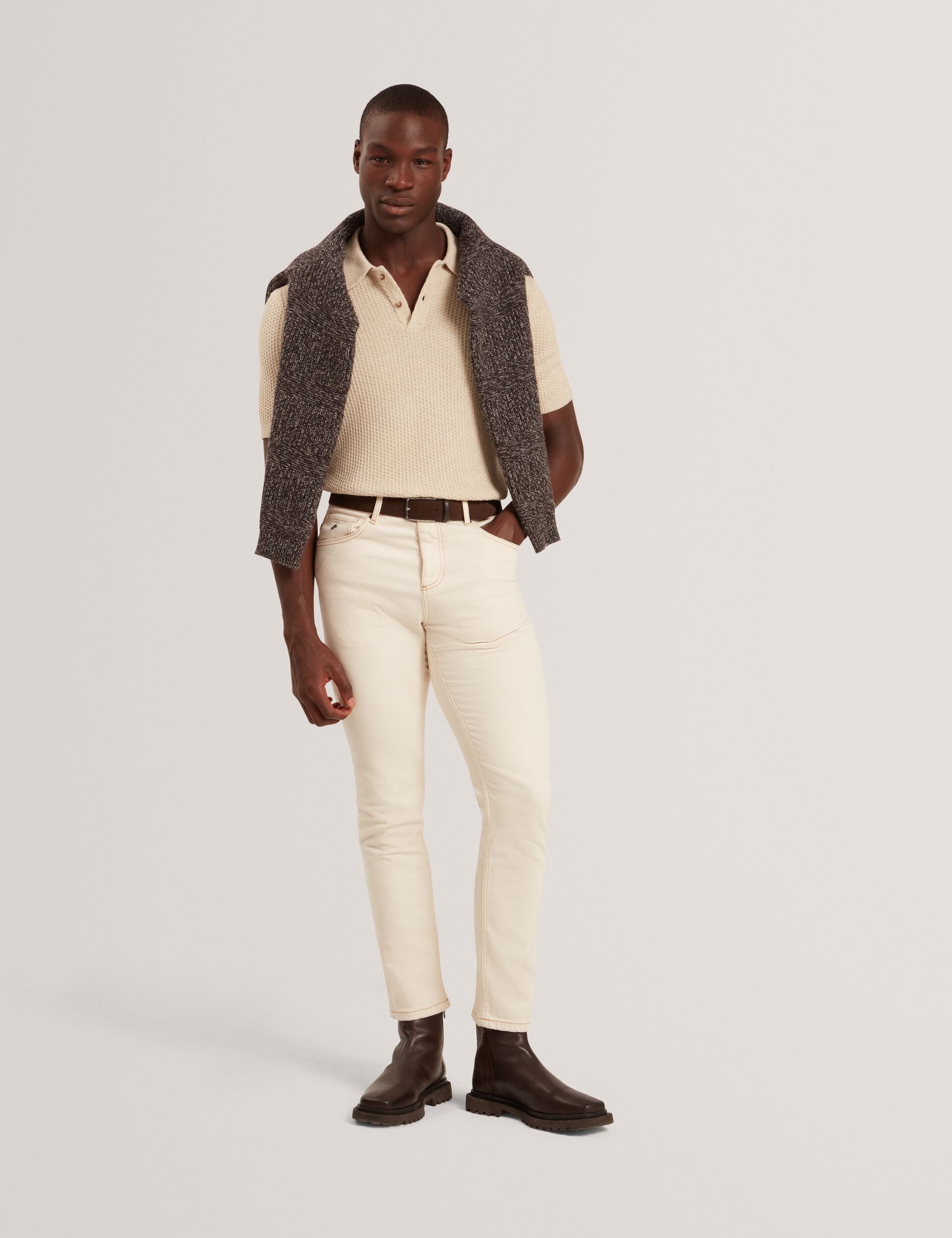 Texture is the name of the game when it comes to the CAELUM knit polo. The soft merino wool blend features all-over ladder ribbing and herringbone texture trims for a cosy staple that elevates every outfit.