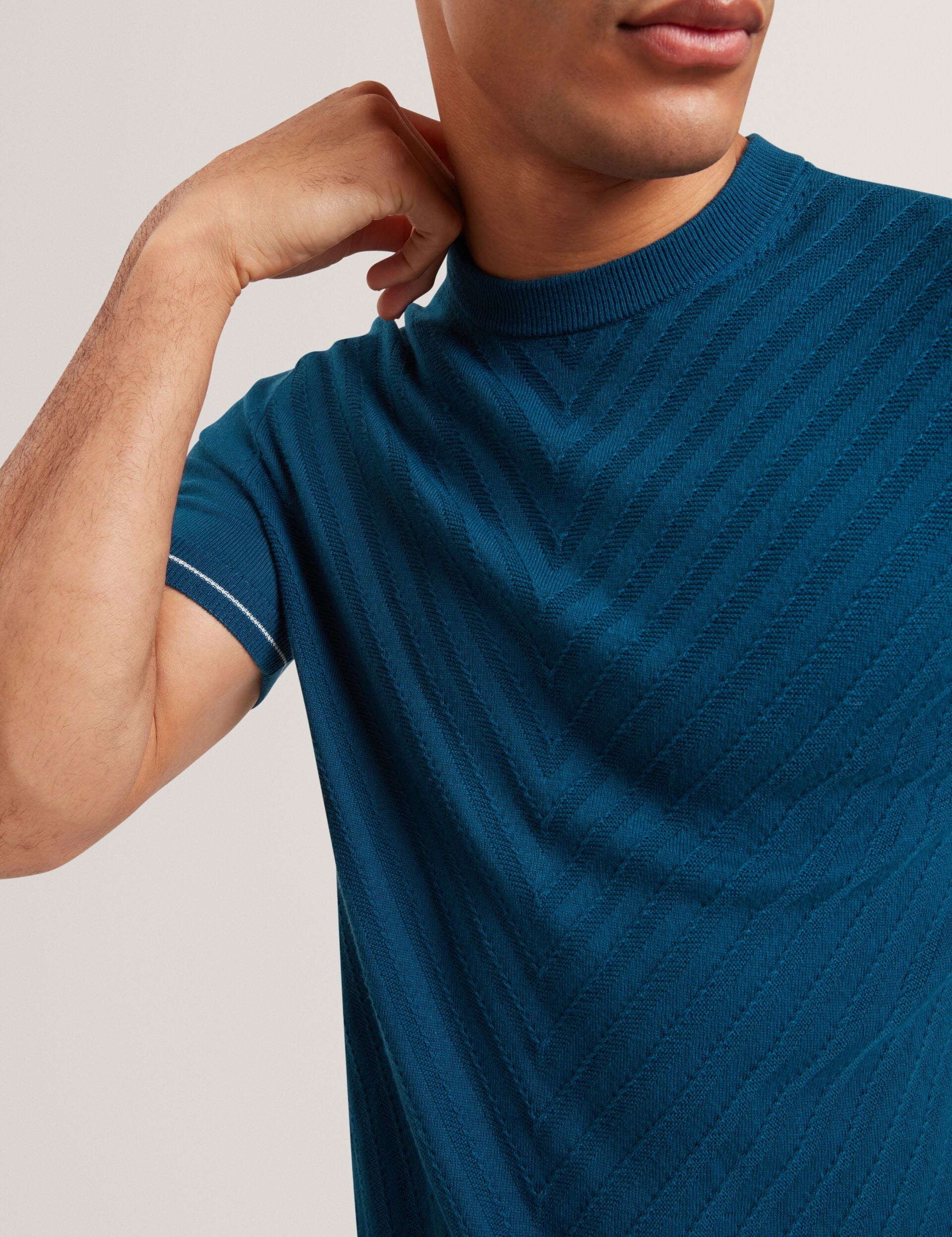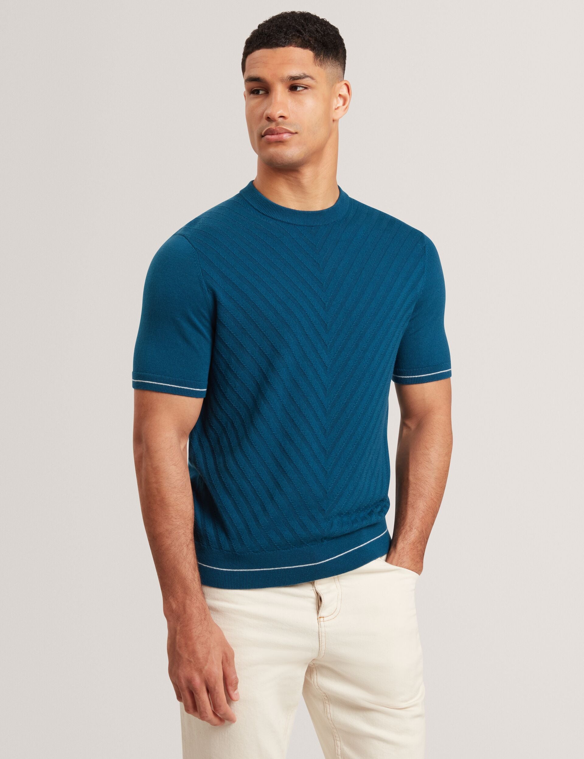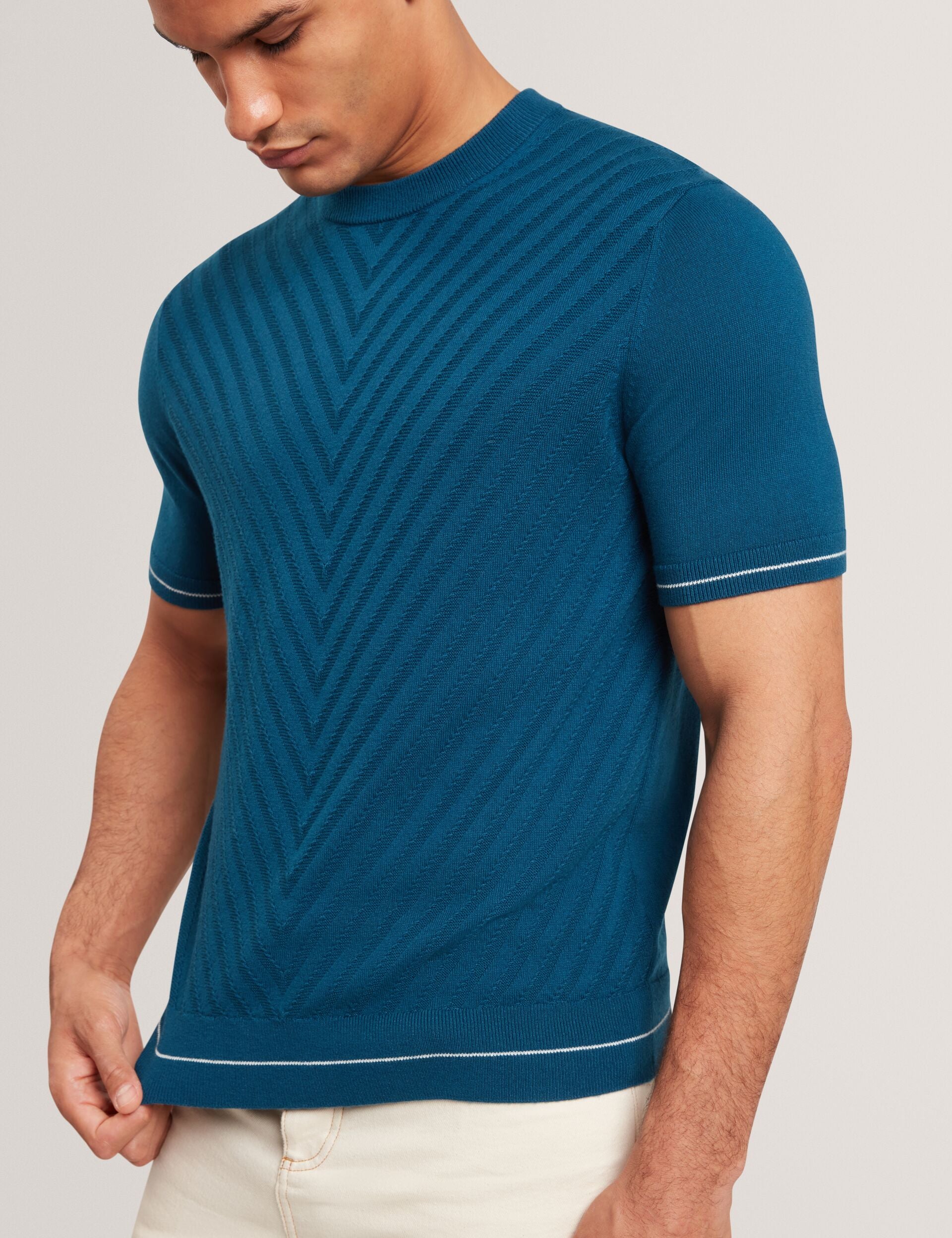 Elevating your casual style is easy with the CANON t-shirt. Crafted from a soft wool-cotton blend, this fine knit piece is designed with a chevron texture front that makes simple jeans or chinos feel more refined.