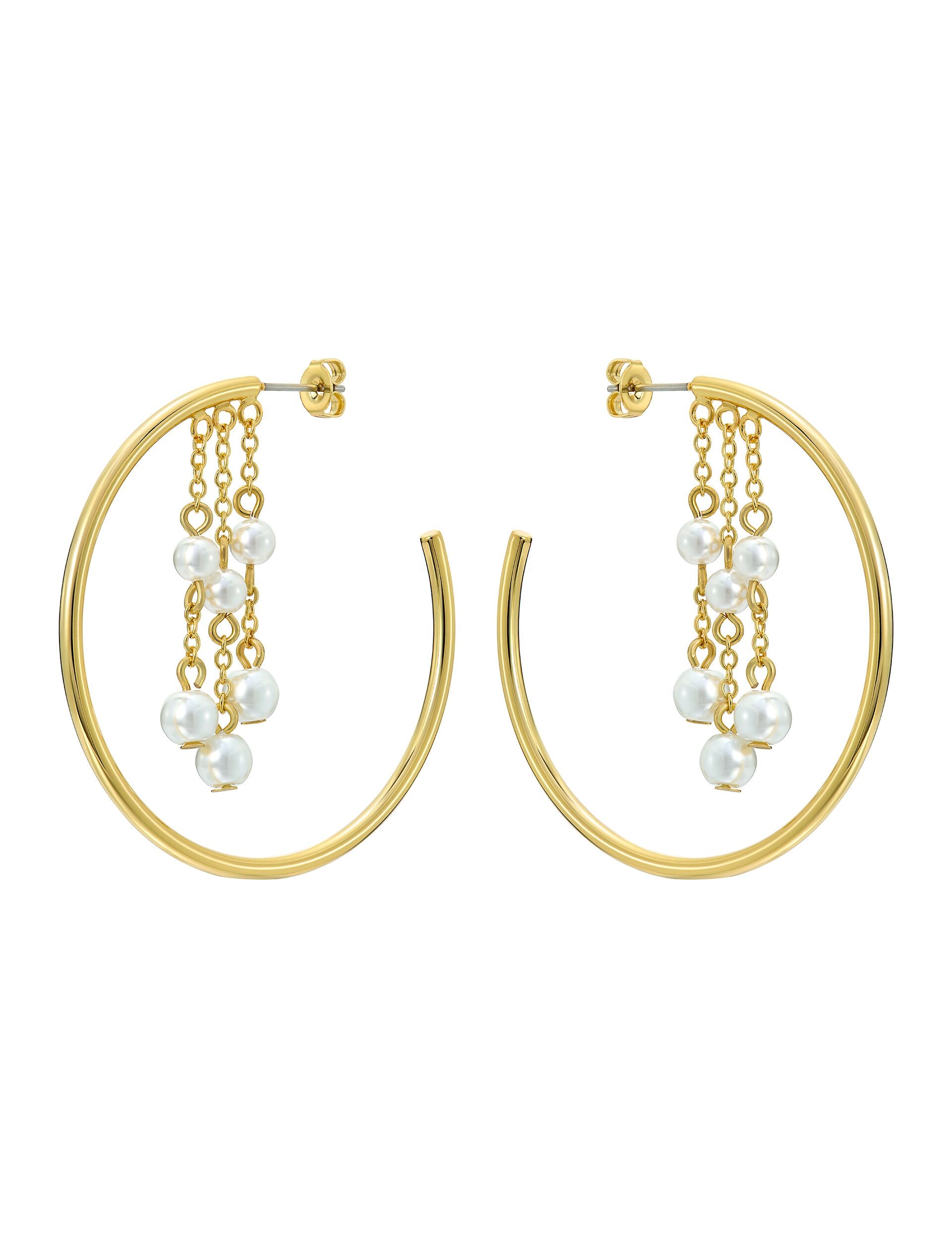 Complete your outfit with Ted Baker's CASEY Cascade Hoop Pearl Earrings. These unique hoops feature faux pearls suspended on delicate chains from the inner rim for graceful movement and shine. Finished in a sleek gold tone and designed with hypoallergenic posts for comfortable wear, they come packaged in a Ted Baker branded gift box—perfect for gifting or treating yourself.