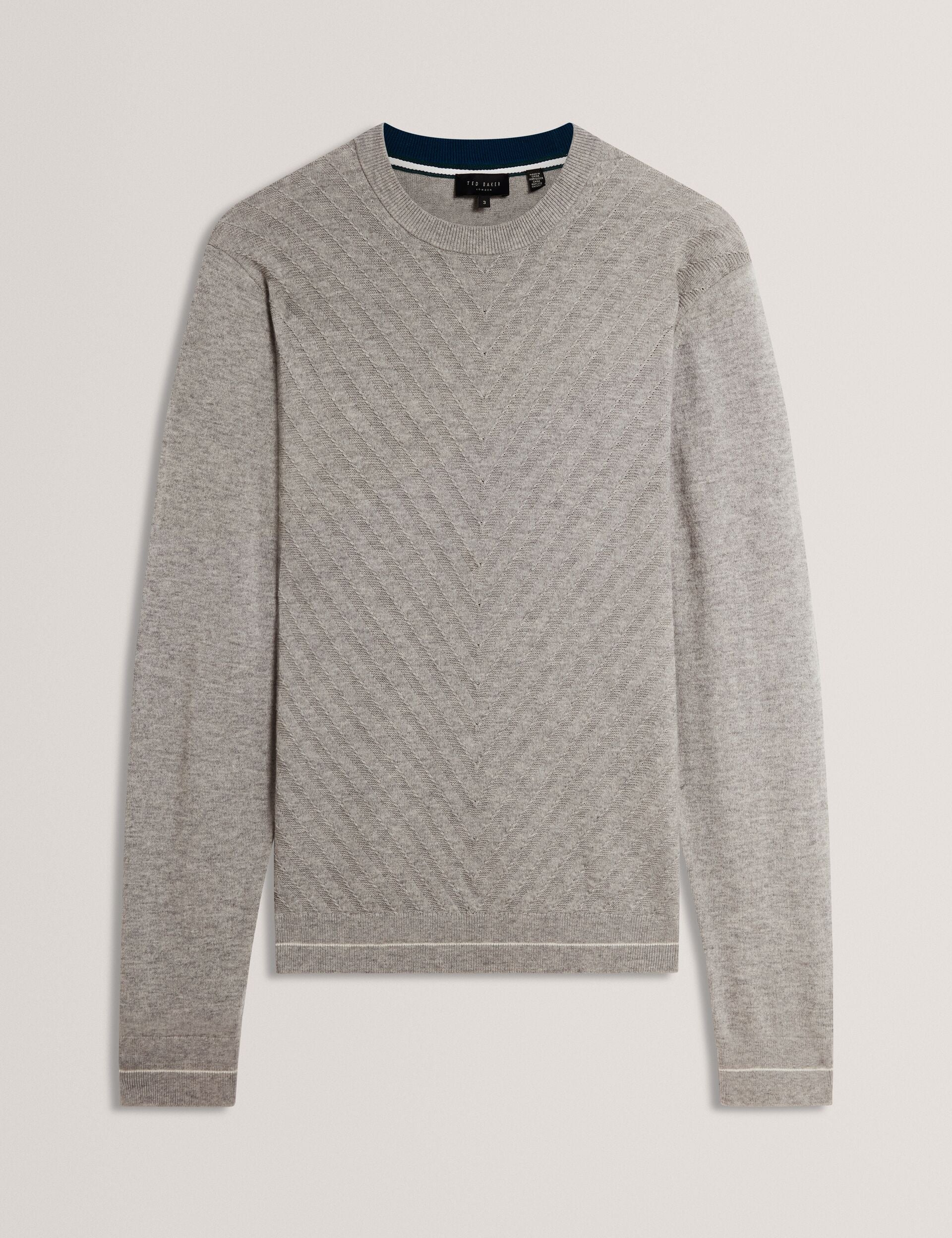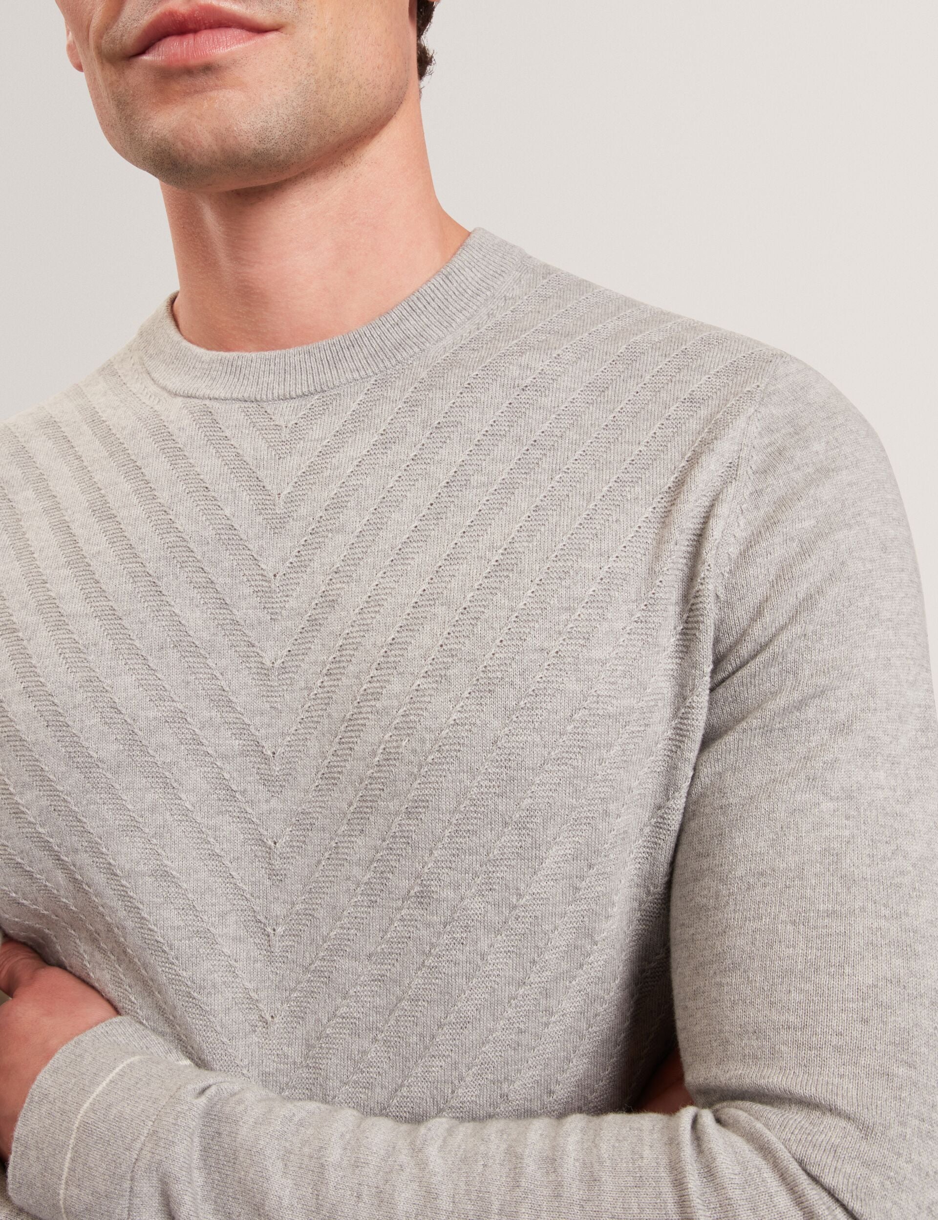 Versatile and refined, the CORBIN crew neck sweater is a must-have staple. Crafted from a soft wool-cotton blend, this fine knit piece is designed with a chevron texture front that elevates simple jeans or chinos.