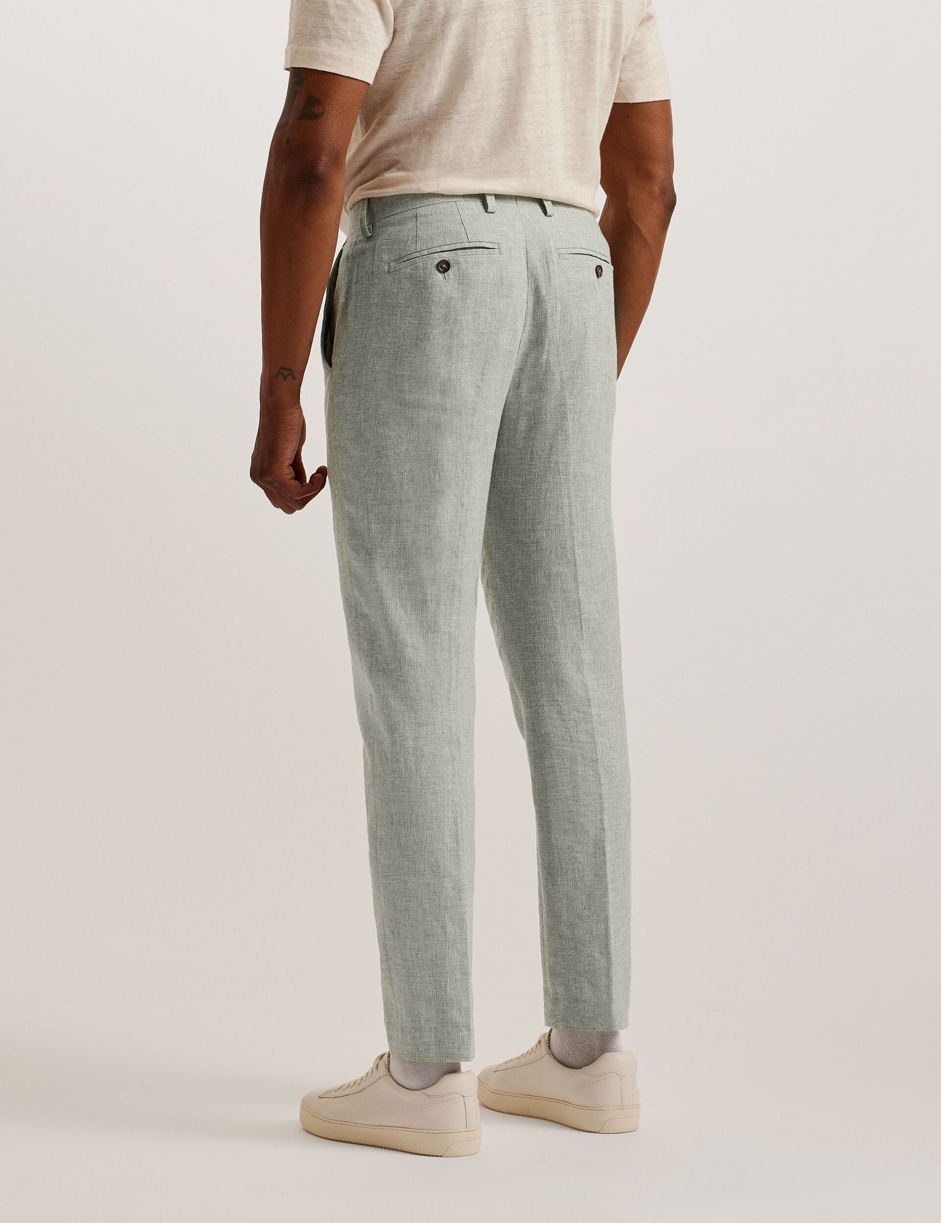 Feel comfortable when dressing smart this summer in these DAMASKT trousers. The tailored style is the look you need for special occassions, whilst the linen cotton blend has a breathable finish ready for those warmer days. The slim fit means they’ll look great dressed up or down, finished with a classic front crease and practical pockets.