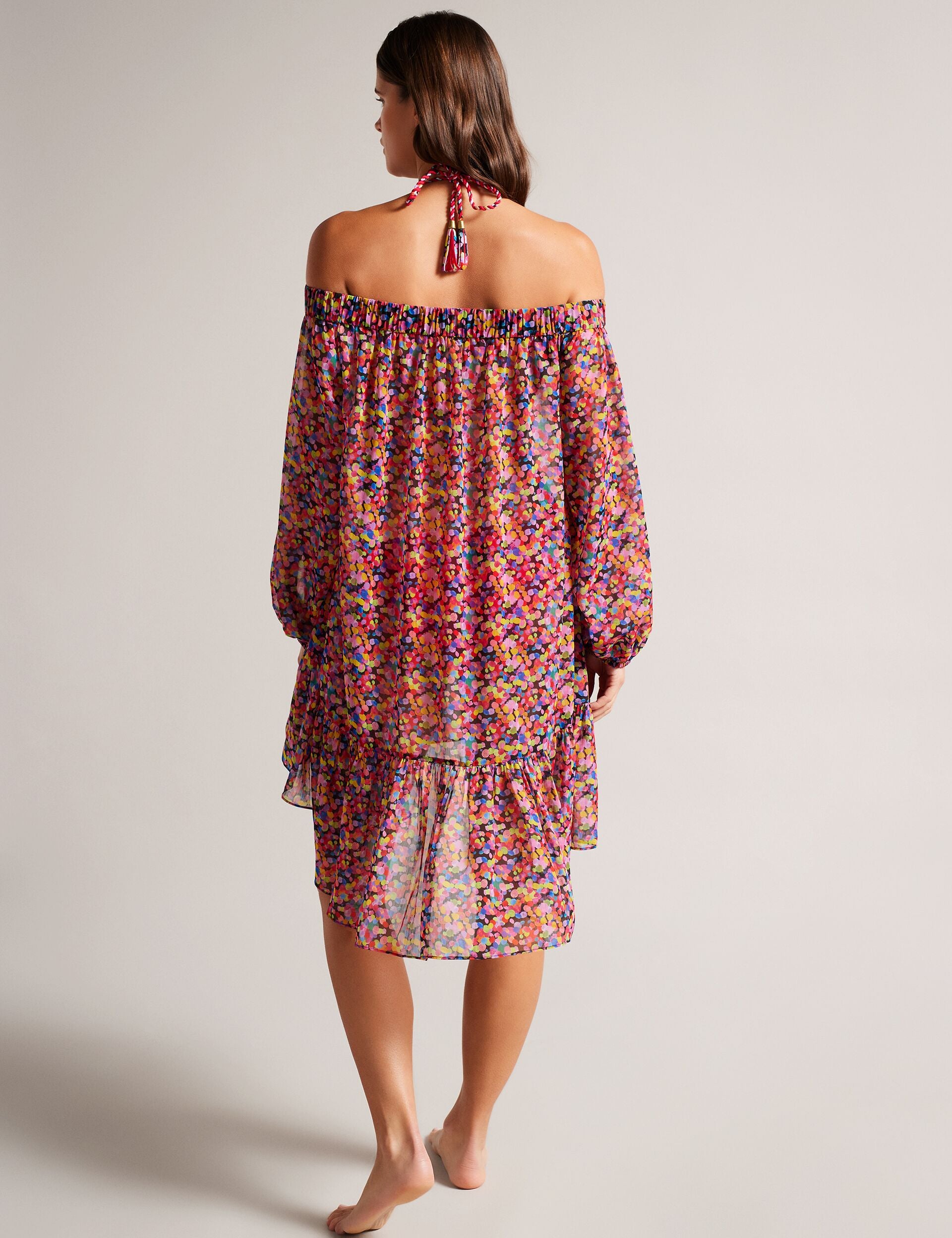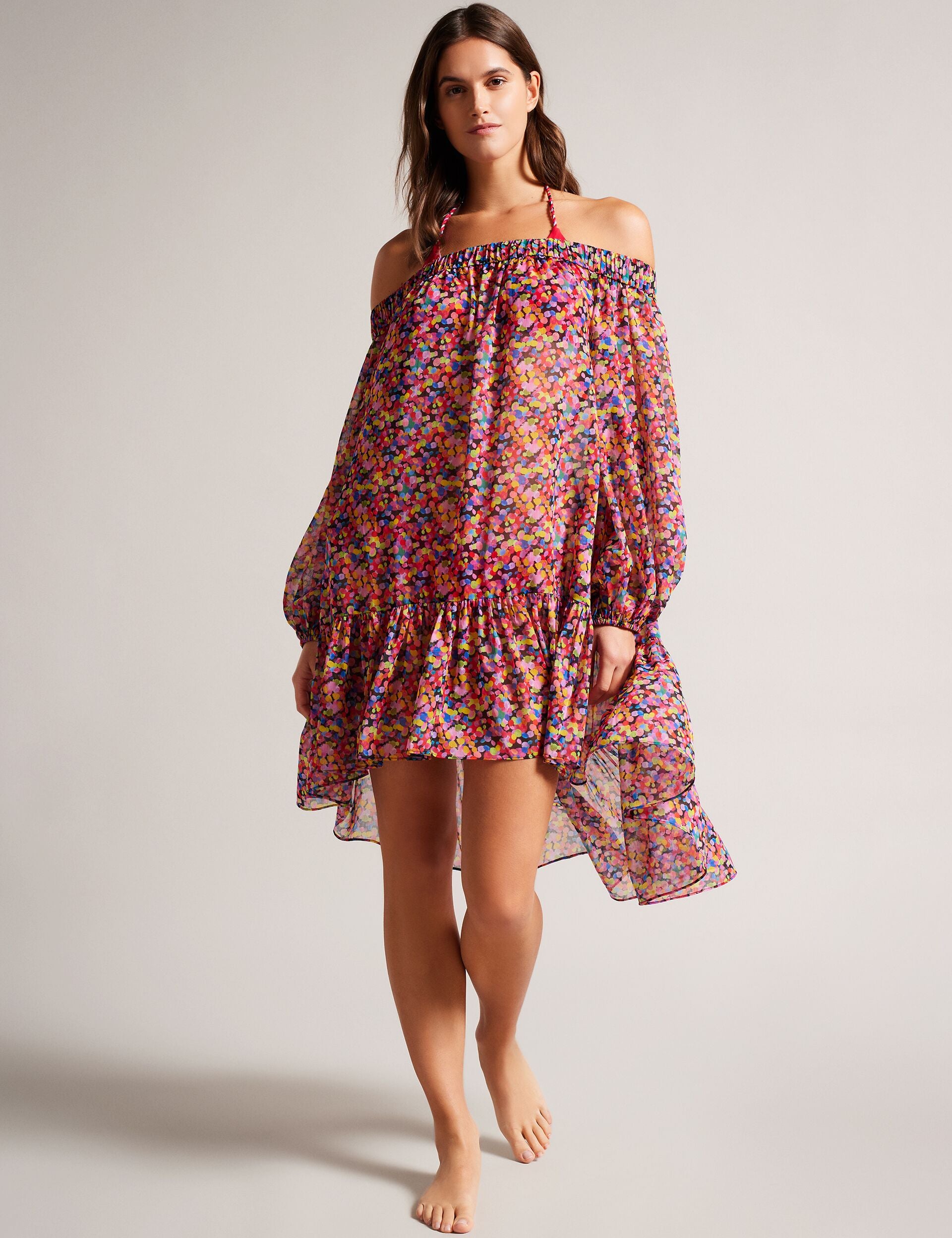The DANAEE cover-up is the perfect addition to your next pool party. Its flowy design, combined with the elasticated neckline and long sleeves, ensures easy and comfortable wear while providing ample sun coverage. Plus, our exclusive confetti print is sure to brighten up any look.
