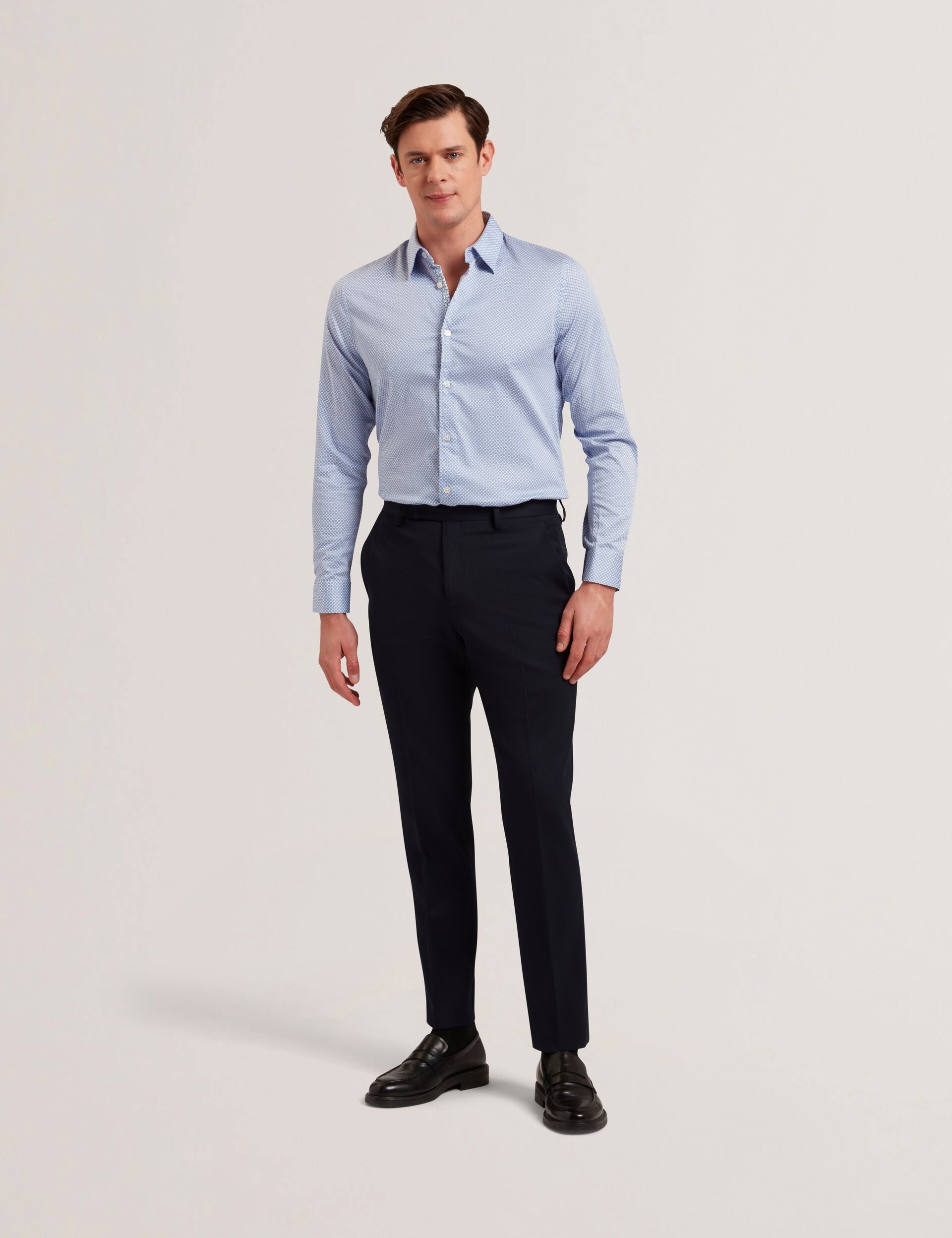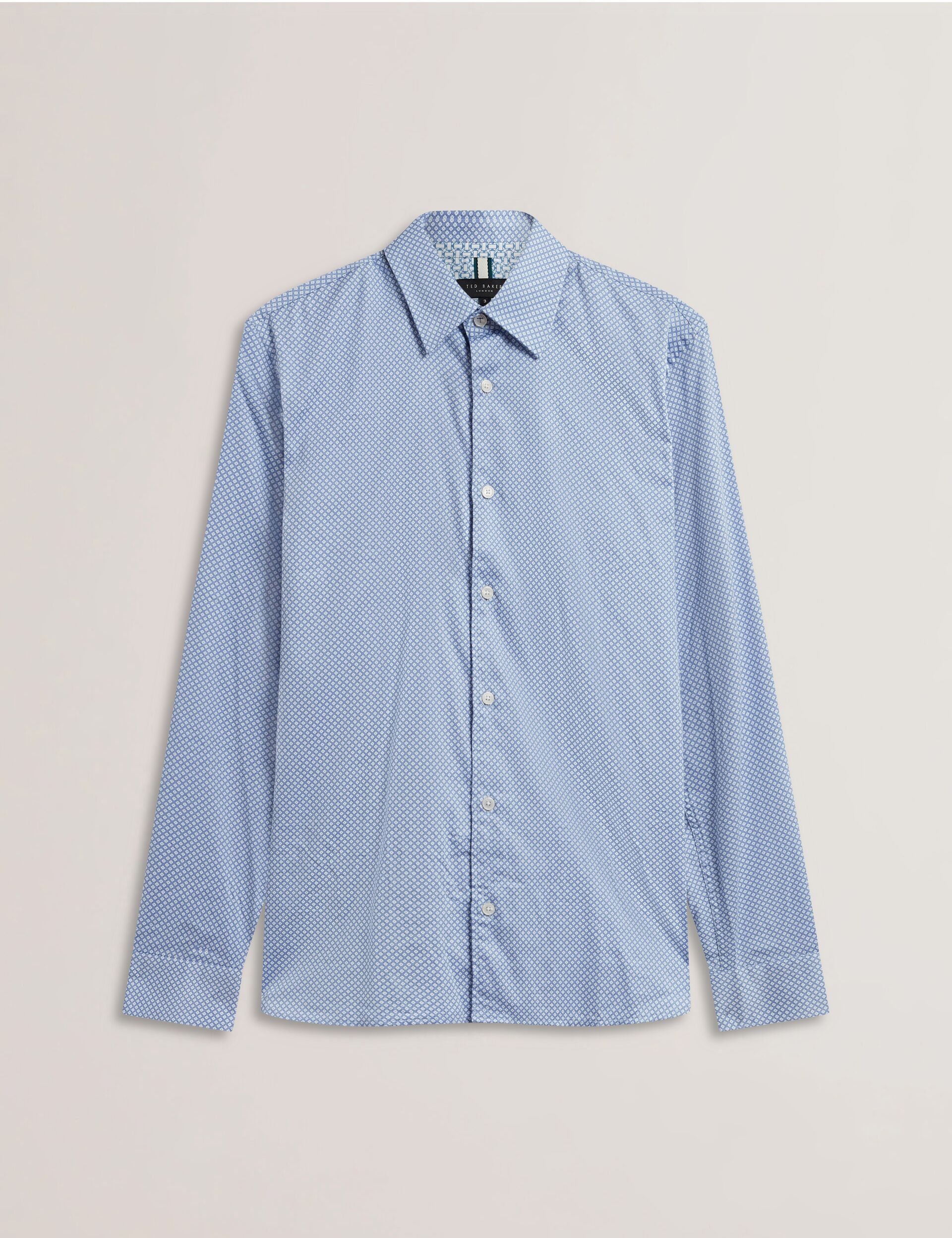 Elevate your formal repertoire with this sophisticated slim fit shirt, featuring a distinctive mini circles print that adds subtle texture and contemporary charm. The tailored silhouette delivers a sharp, modern aesthetic that transitions effortlessly from boardroom to evening occasions. Pair this polished piece with tailored trousers for an impeccably refined look.