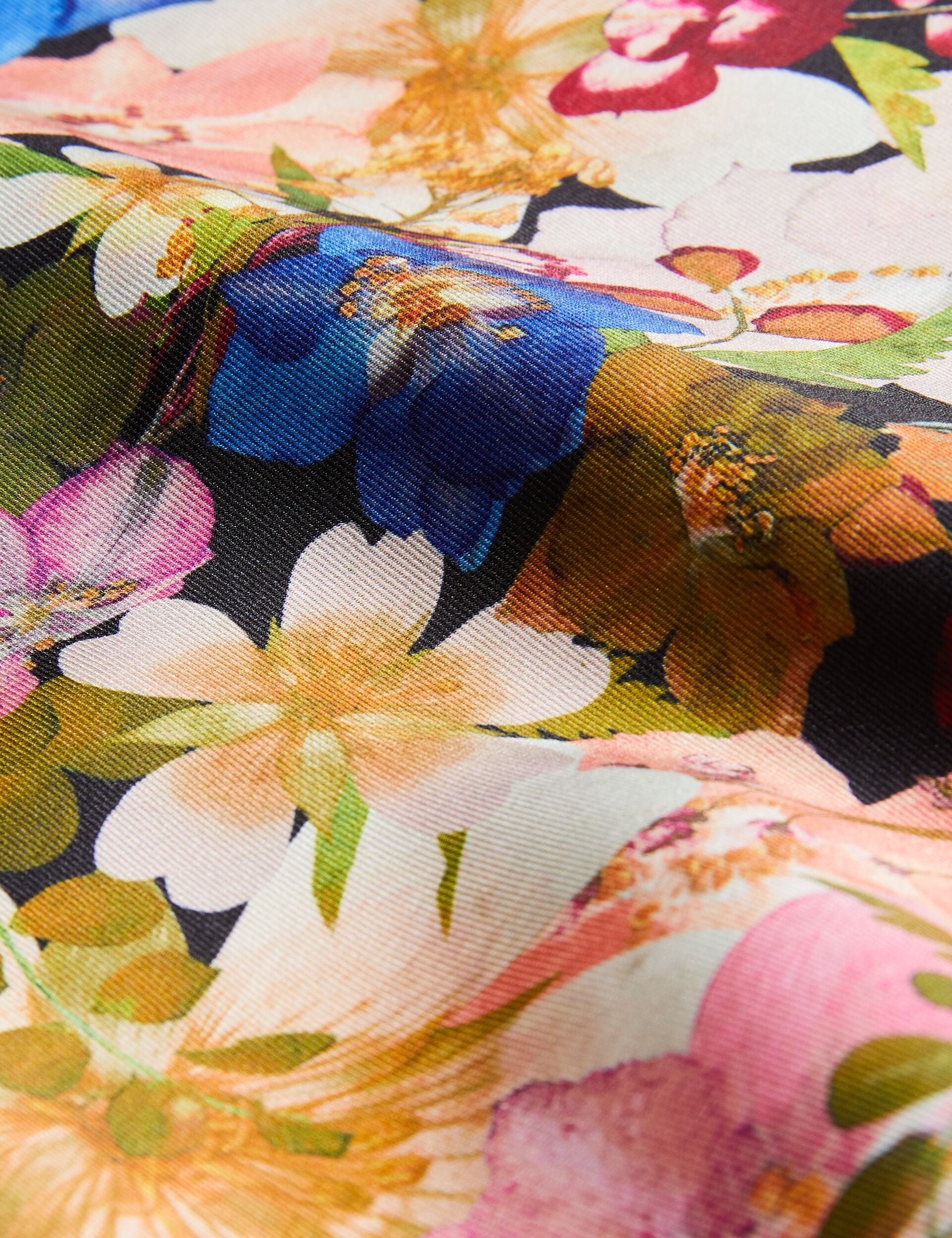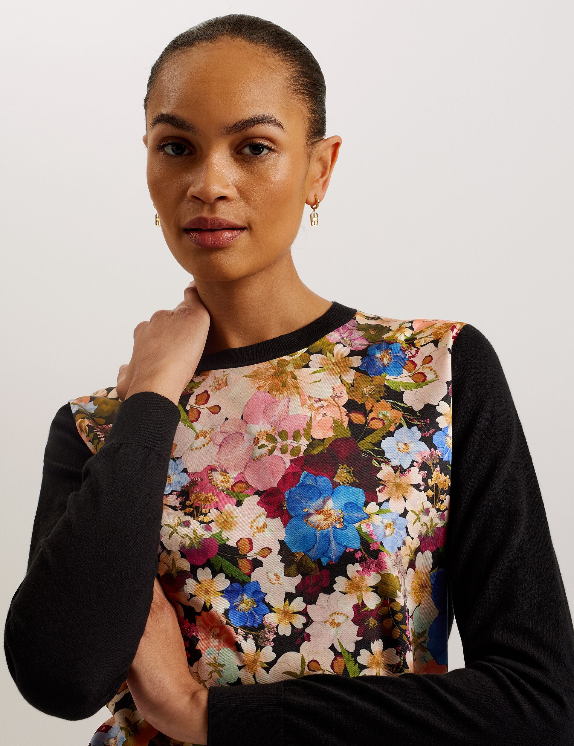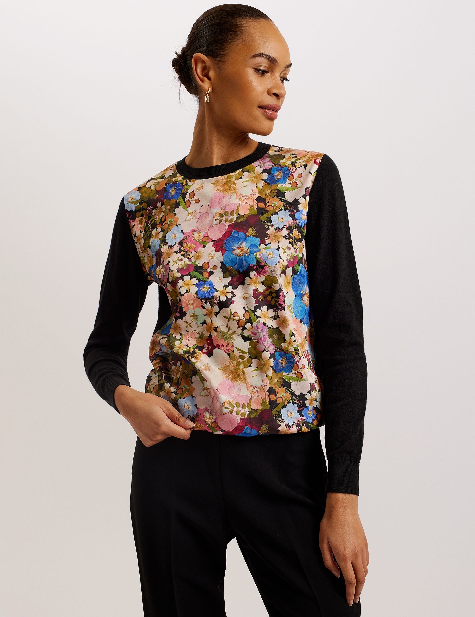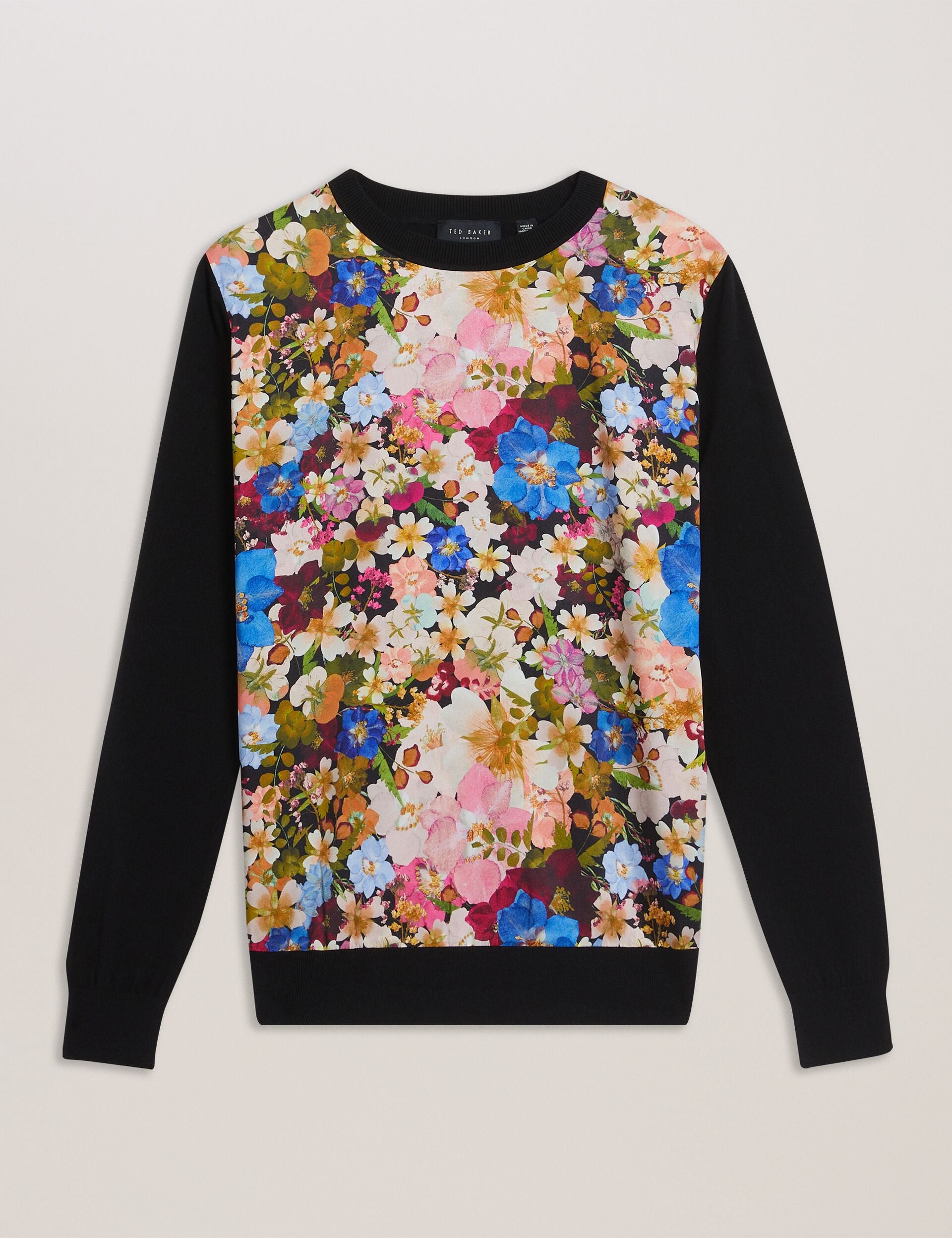 This DELBI sweater will earn you easy style points with a woven front featuring a bold floral print. The knitted long sleeves are made from a luxurious cotton silk blend, whilst the crew neck keeps up that casual feel.