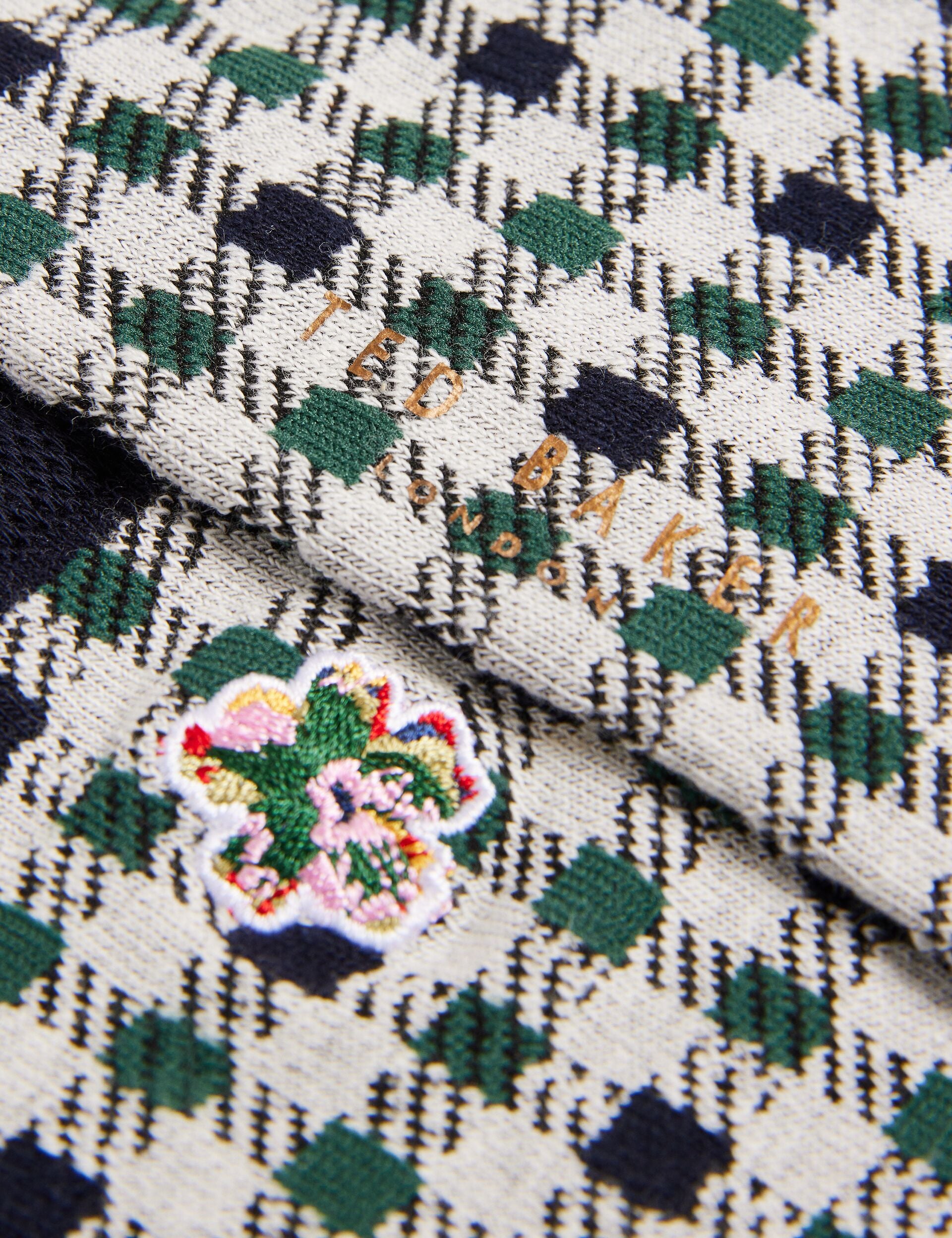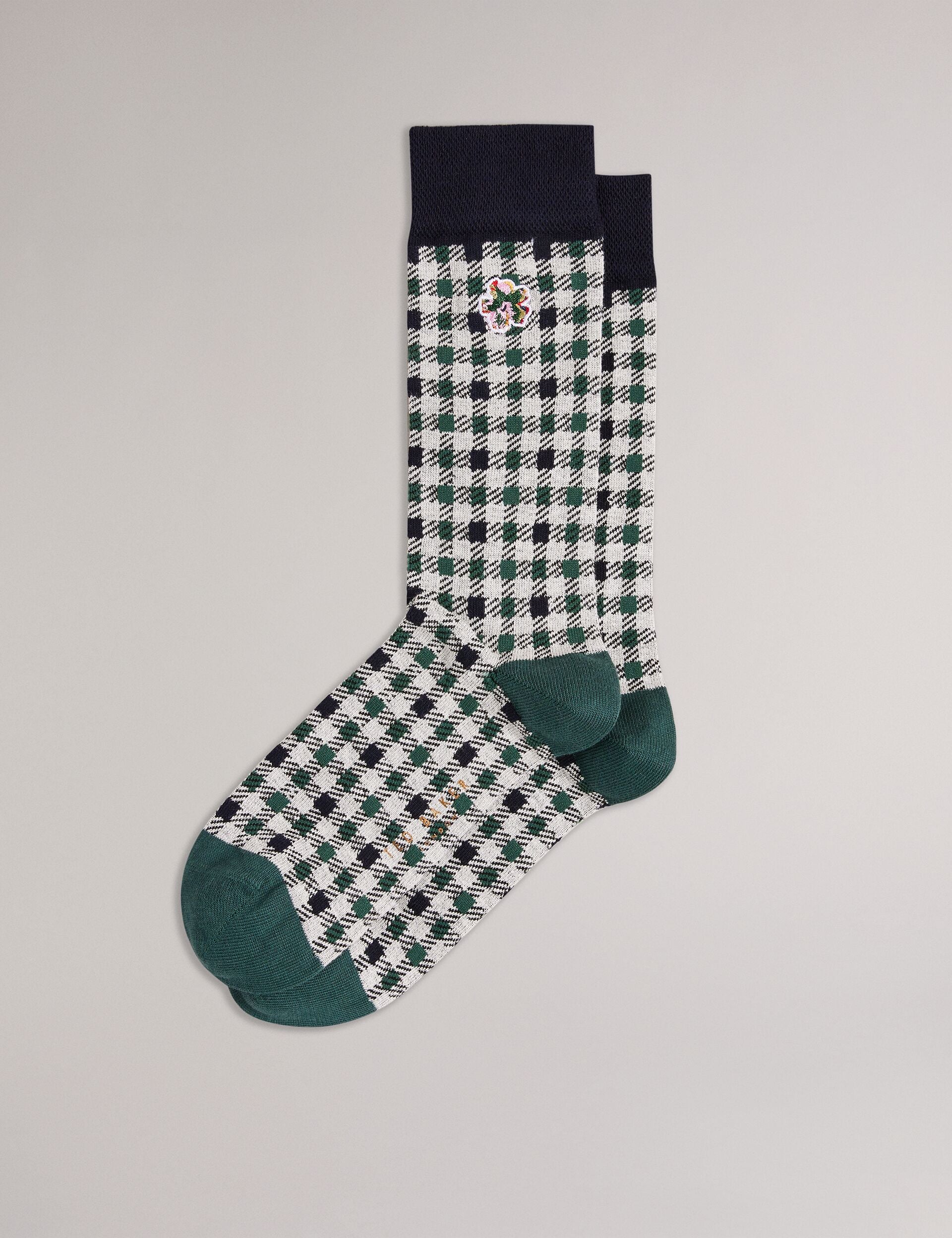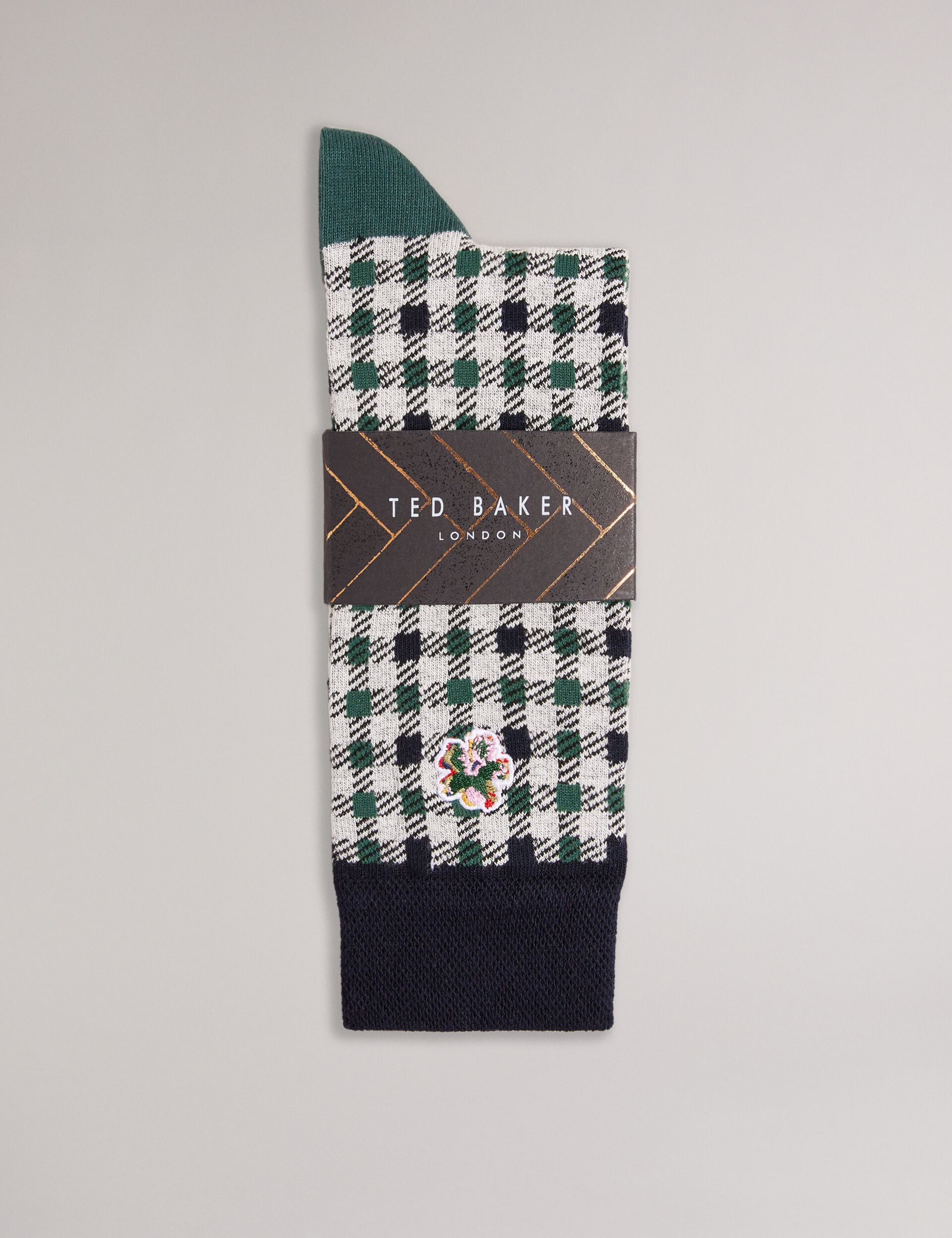 Put your best foot forward in our DETATCH check print socks. Made from a blend of cotton for a comfortable feel, this pair has an embroidered magnolia for the perfect finishing touch.