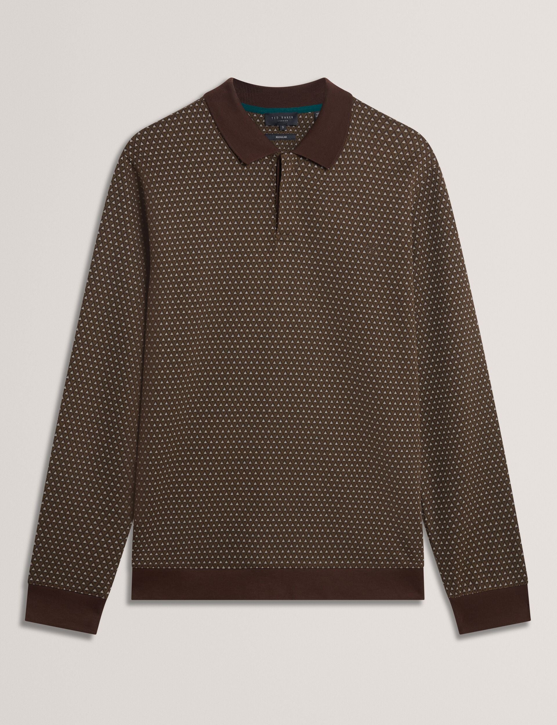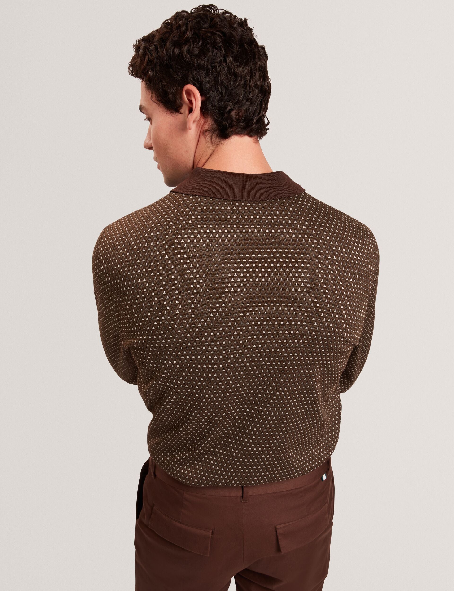 A classic long sleeve polo that exudes style: meet DURAND. This stand-out staple brings a retro feel with its micro geometric pattern and solid colour trims - pair it with tailored pants for a new take on smart casual dressing.
