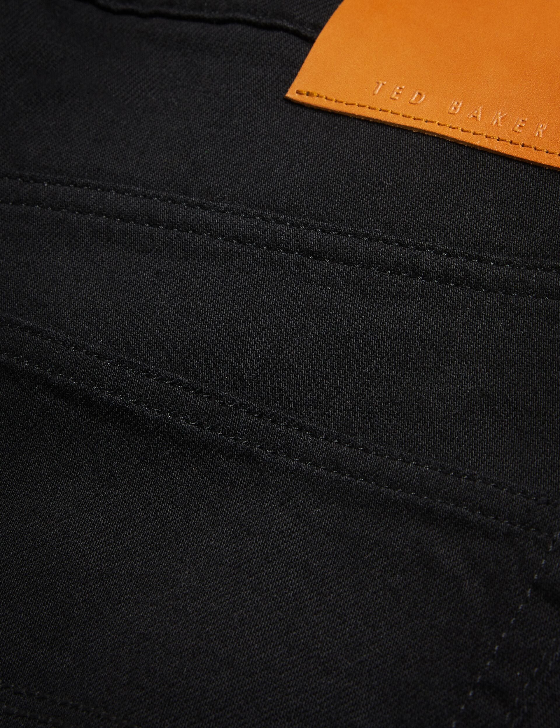 - Classic five-pocket styling with branded leather patch