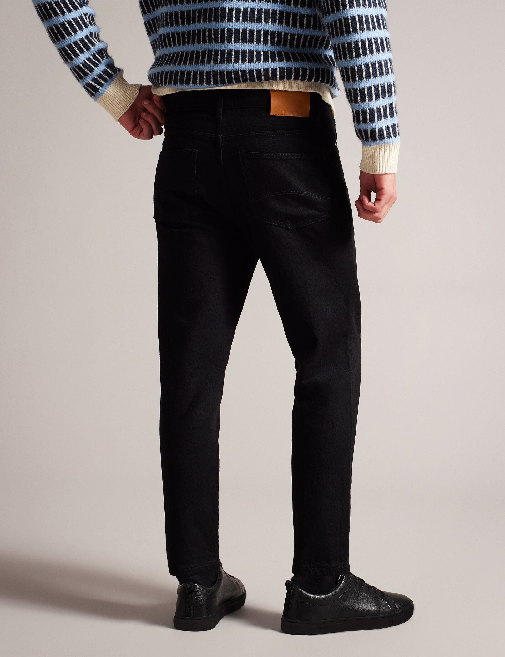 Crafted with stretch-infused denim and a contemporary tapered silhouette, these versatile jeans deliver both comfort and refined style. The modern fit narrows elegantly from knee to ankle, creating a sleek profile that pairs effortlessly with everything from casual knits to smart shirts. Perfect for the discerning gentleman who values both movement and sophistication in his everyday wardrobe.