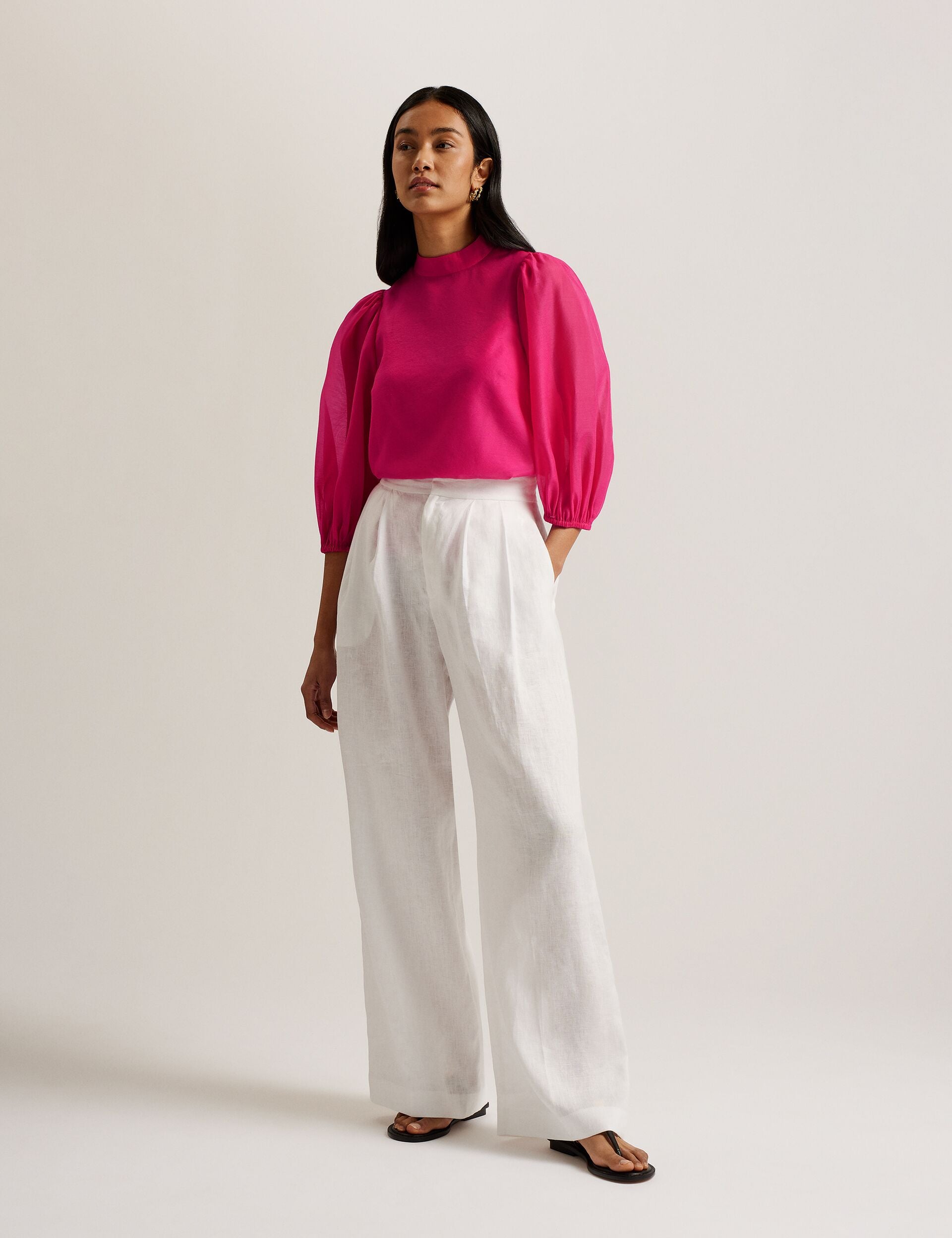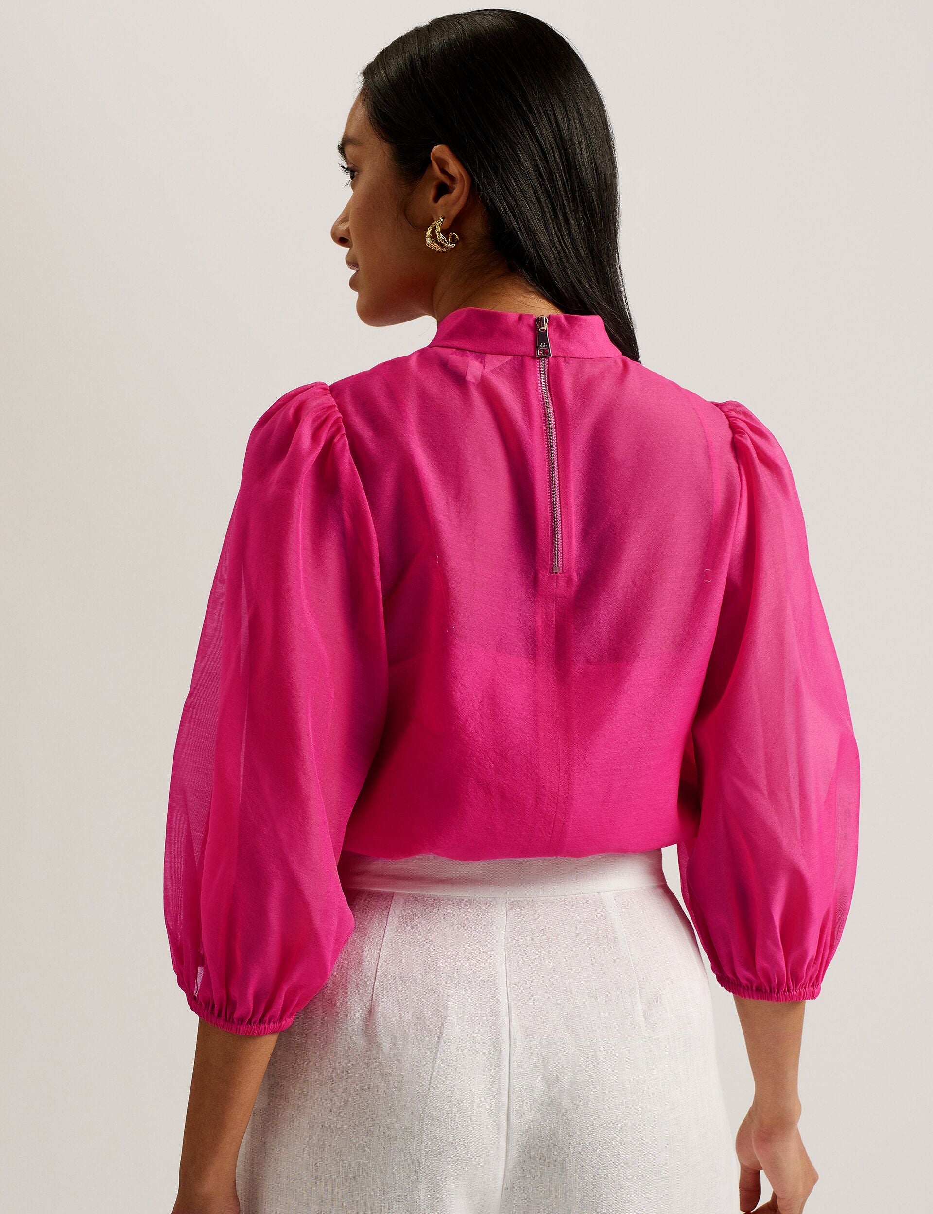 - Three-quarter puff sleeves