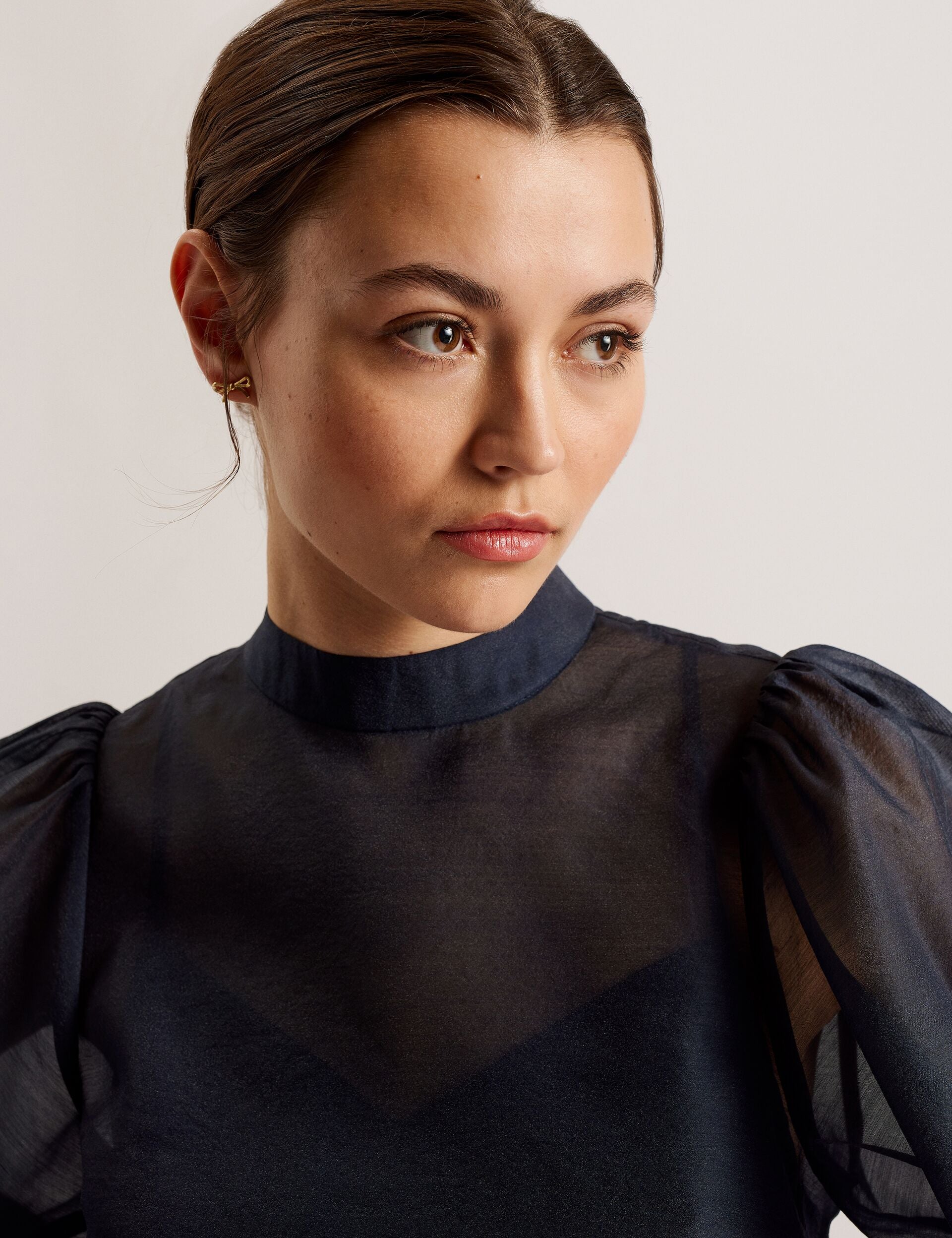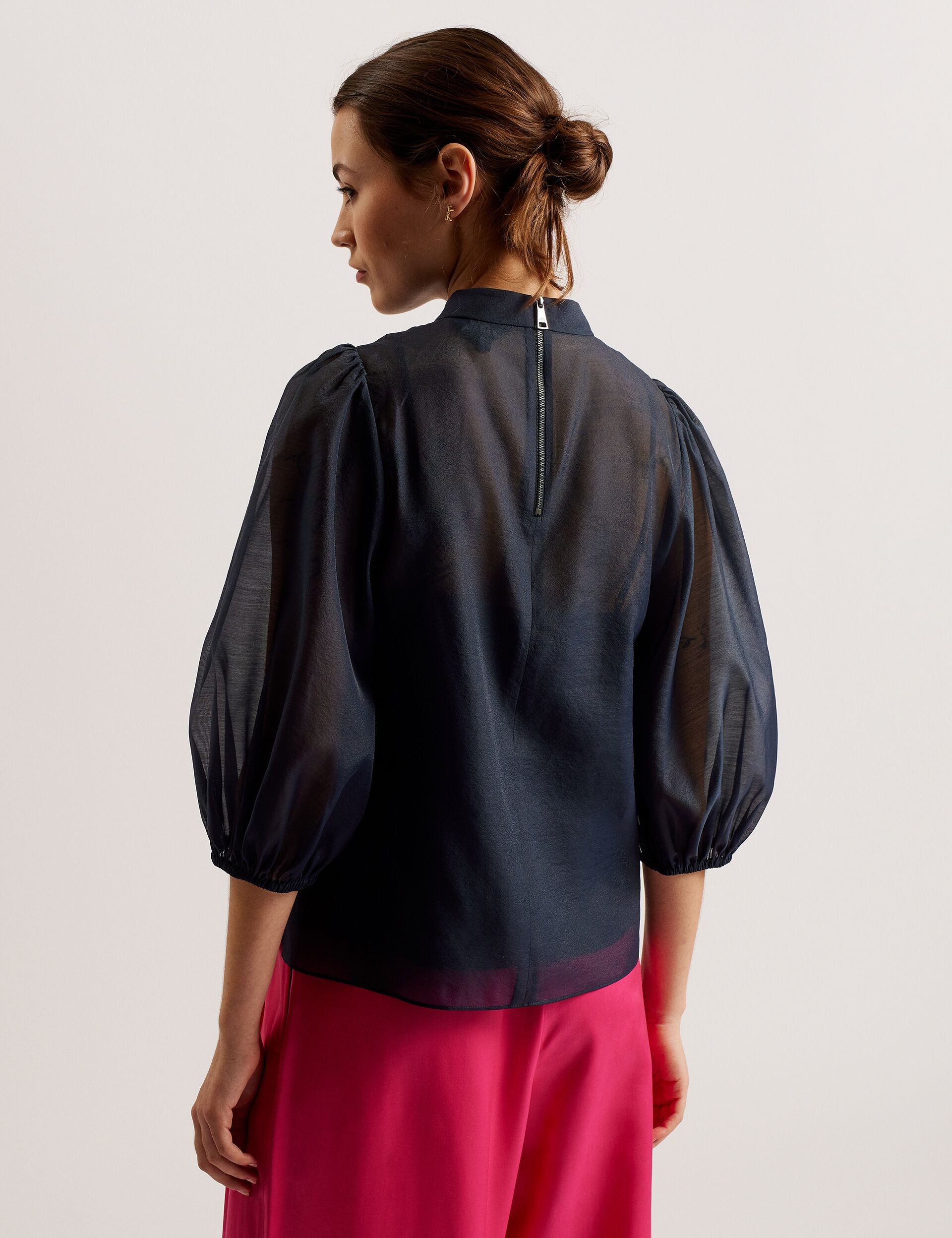 Sheer Organza Top with Balloon Sleeves