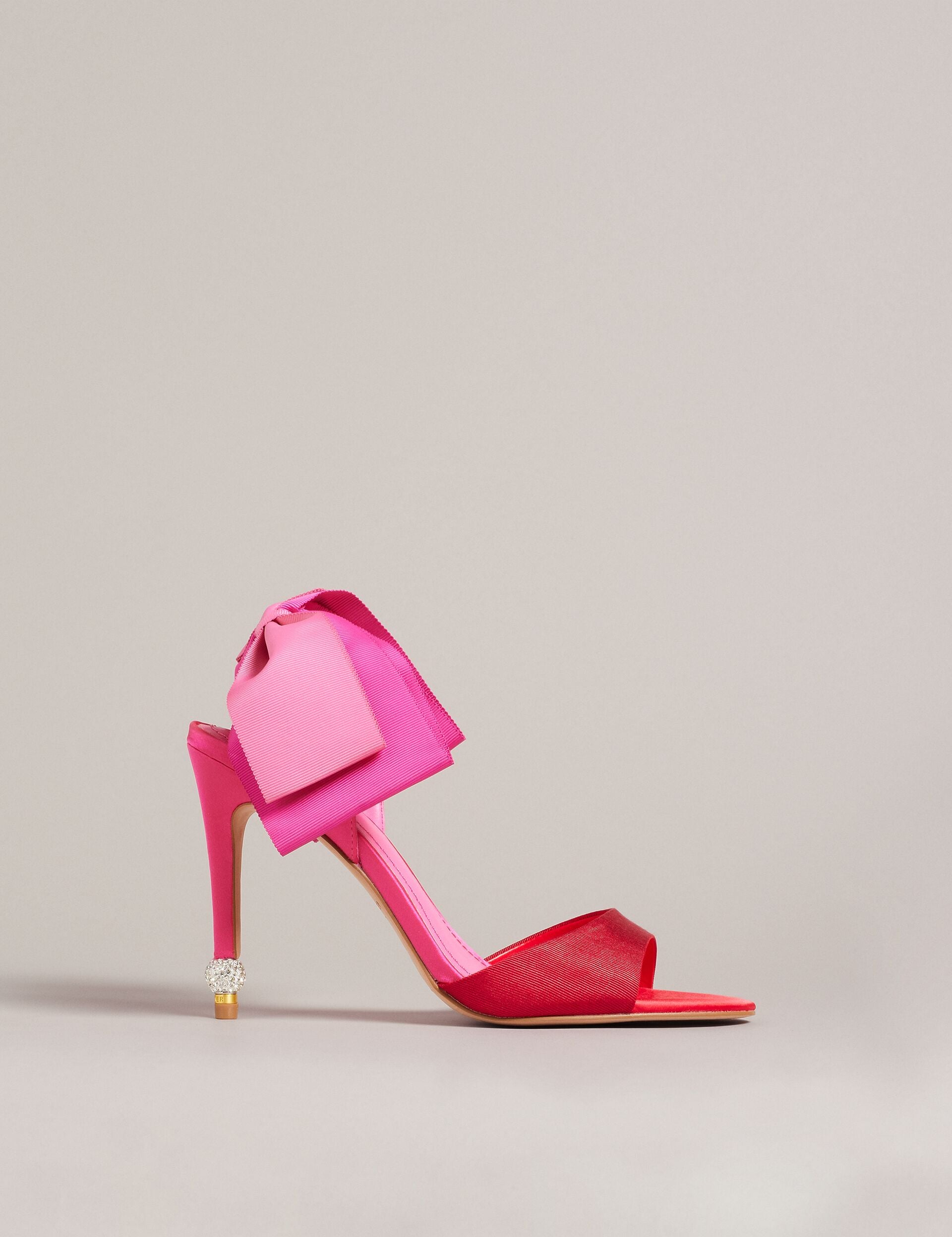 We've made the perfect party piece with HARINAS. Oversized double bows in a dual tone embellish the heels of these sandals to wrap up your look. The satin finish and crystal heel detail add the finishing touch you need to turn heads.