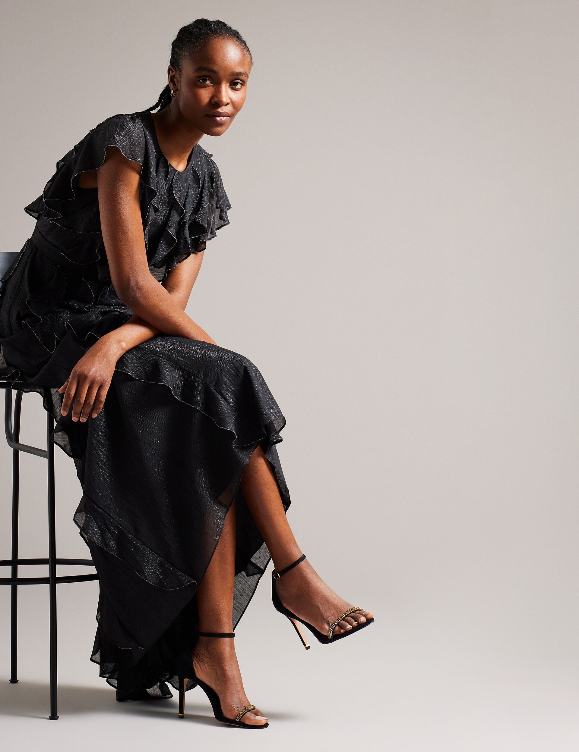 Whether you're strutting down the city streets, sipping cocktails at a rooftop bar or dancing the night away, the HELENNI heels are your new partner in crime. With their open toe design, golden detailing to the heel and crystal embellishment, these heels are sure to make a statement.