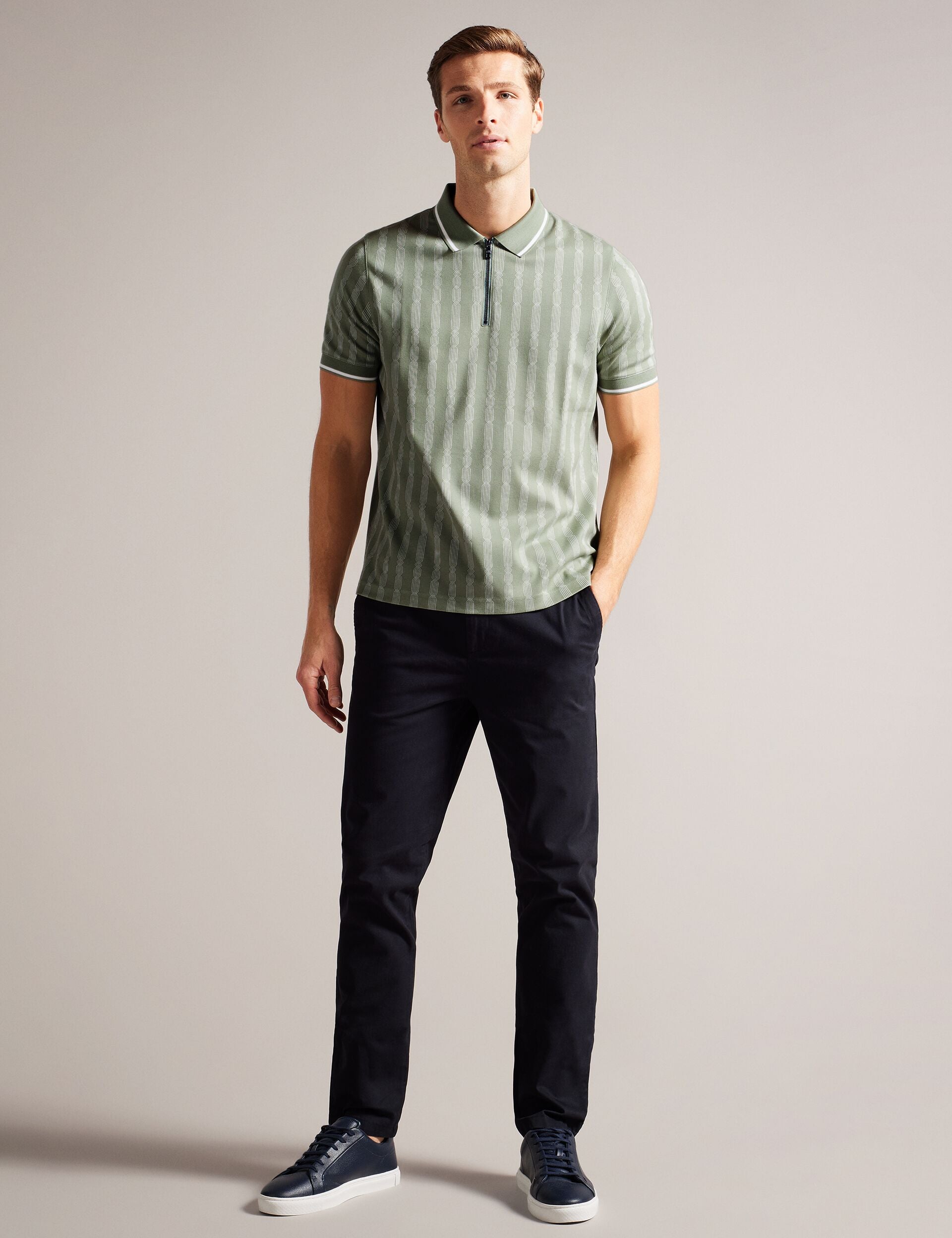 Meet your new favorite polo. Short sleeves, a convenient zip placket, and a geometric design make ICKEN effortlessly stylish.