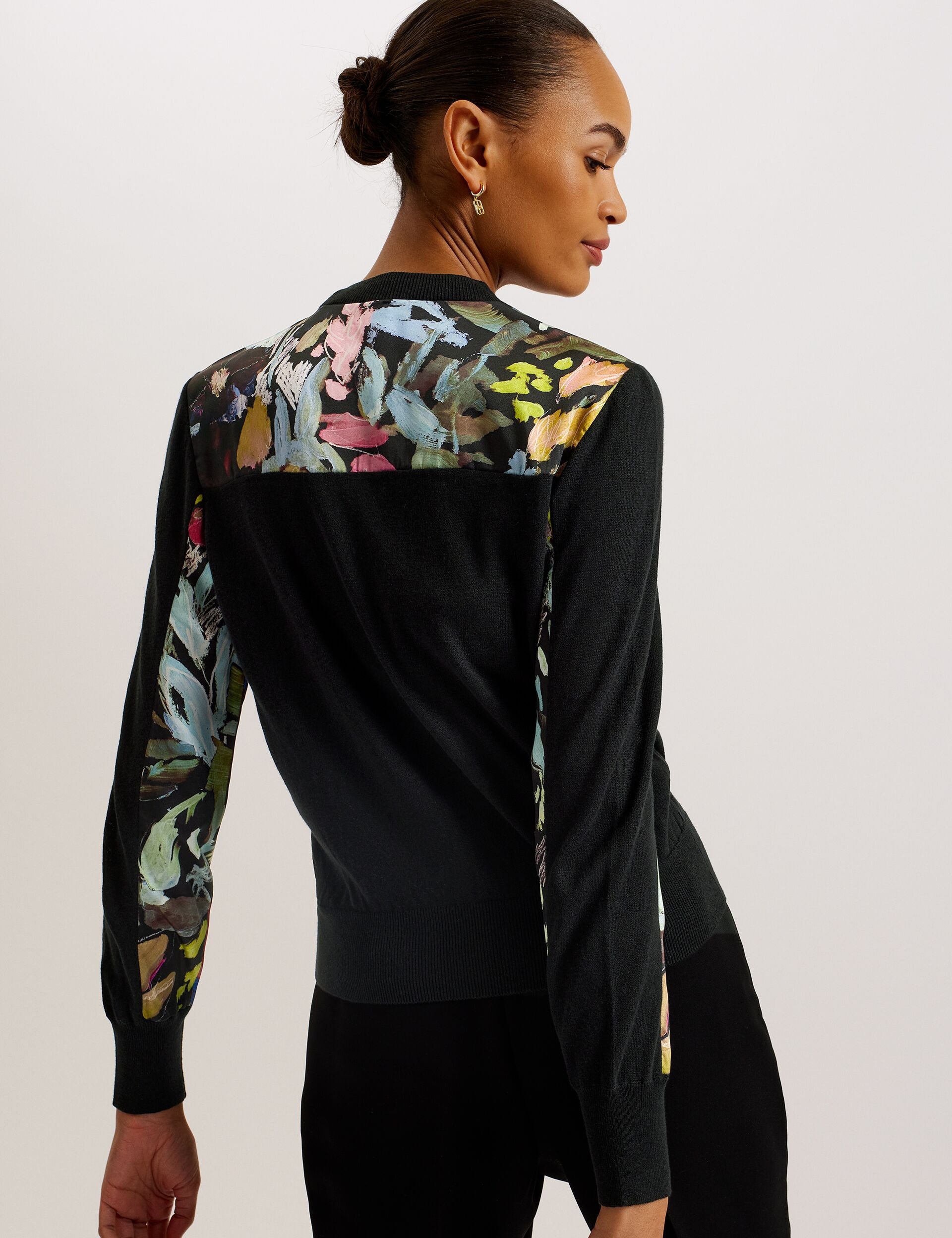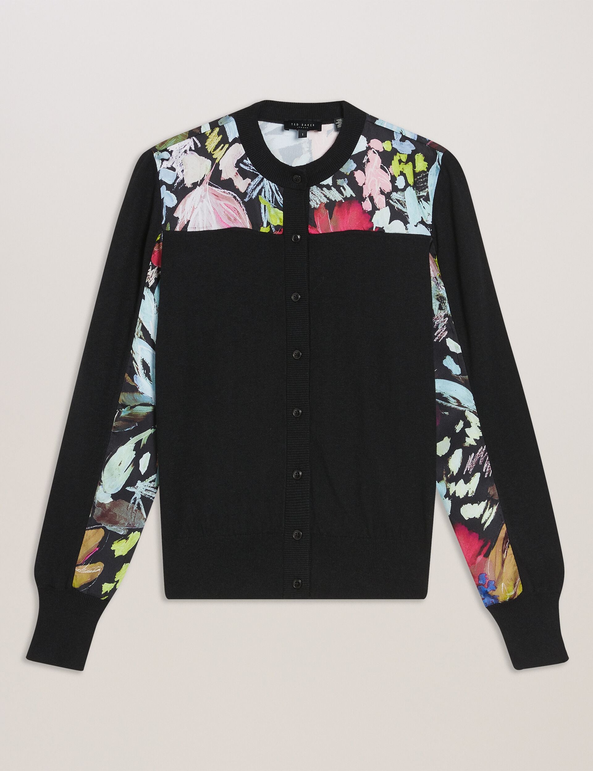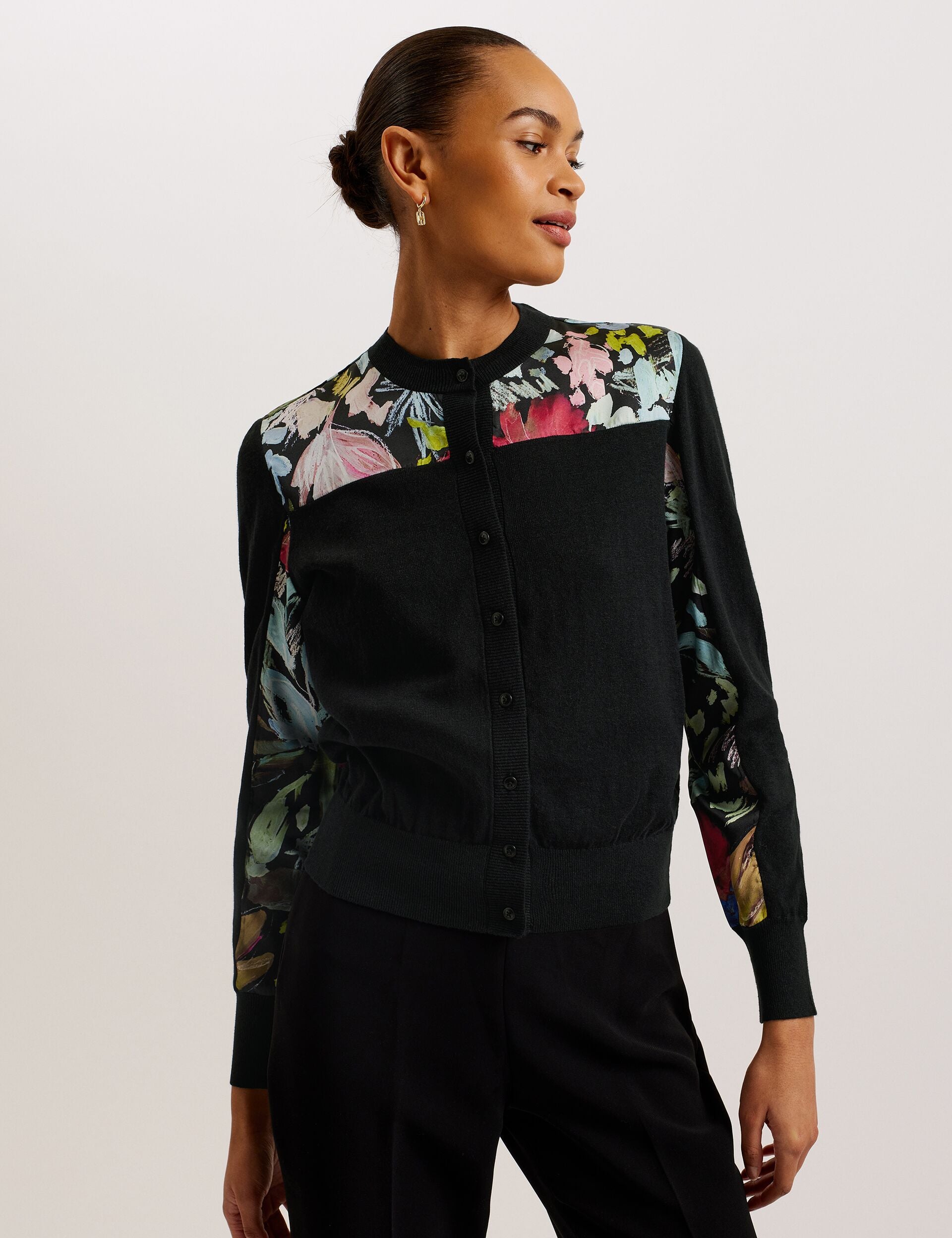 IILEENA introduces a fun twist to the classic cardigan style with woven floral panels that contrast against the soft cotton blend knit. With a crew neckline, button fastenings and ribbed trims, this cardi will look dreamy with a high waisted skirt or tailored trousers.