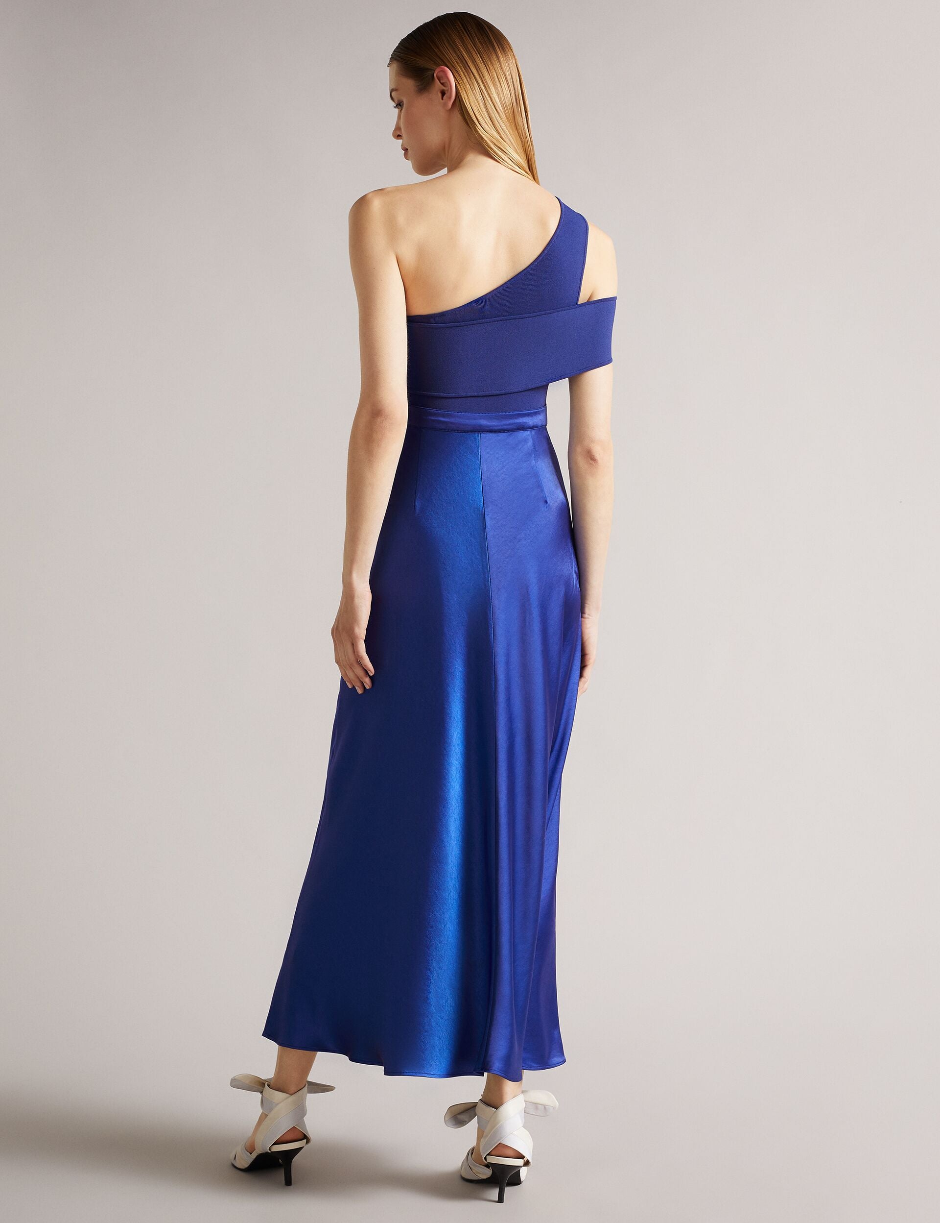 Turn heads in IVENA. An asymmetric cut and a combination of knit and satin make this dress a flawless party piece. Wear yours with a statement clutch and sandals for a chic night time look, whatever the occasion.