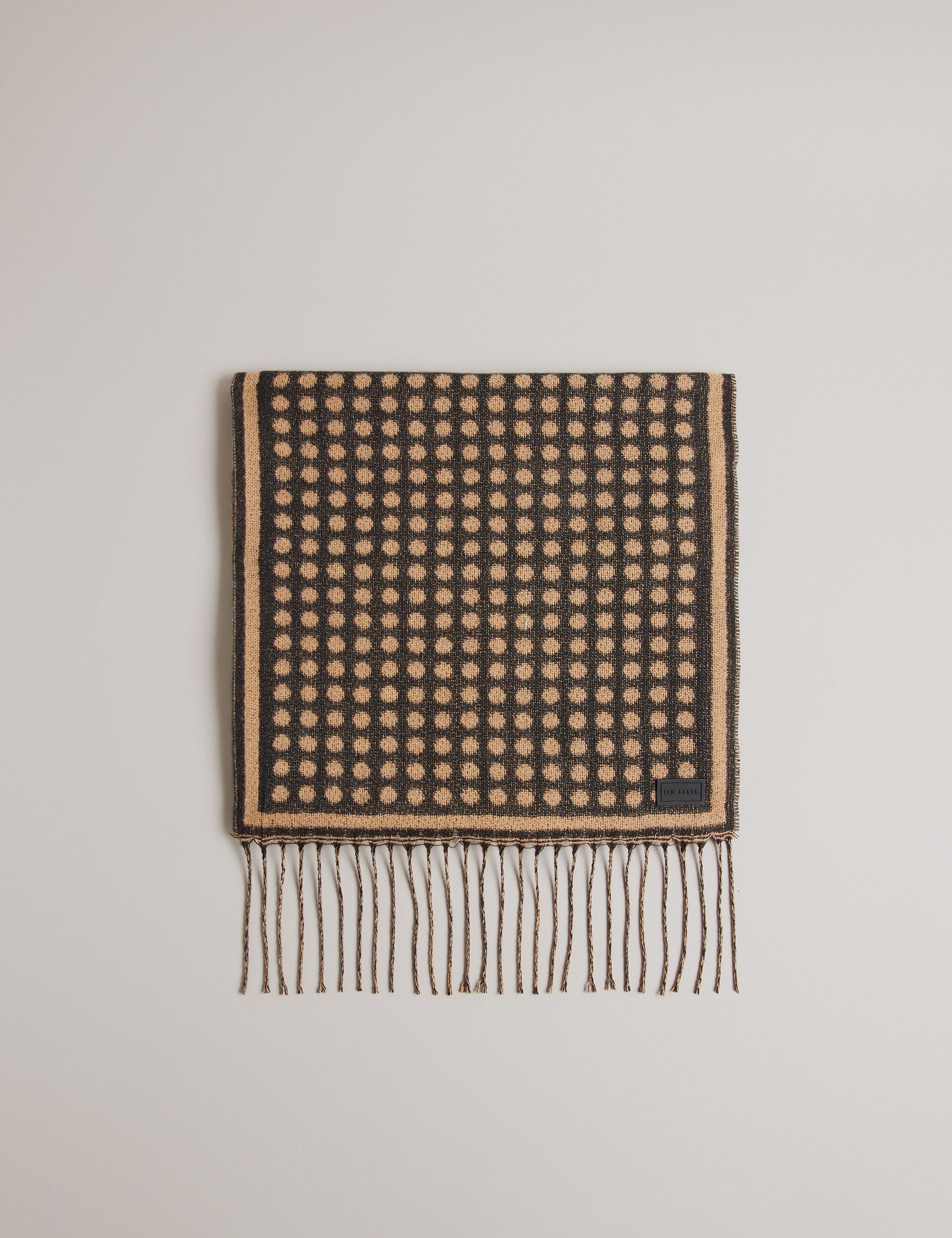 Fashion-forward and extra versatile, this lightweight scarf will instantly upgrade your cool weather wardrobe. Crafted with a solid frame, fringed edge and dot print, JASONY will keep you warm all season long.