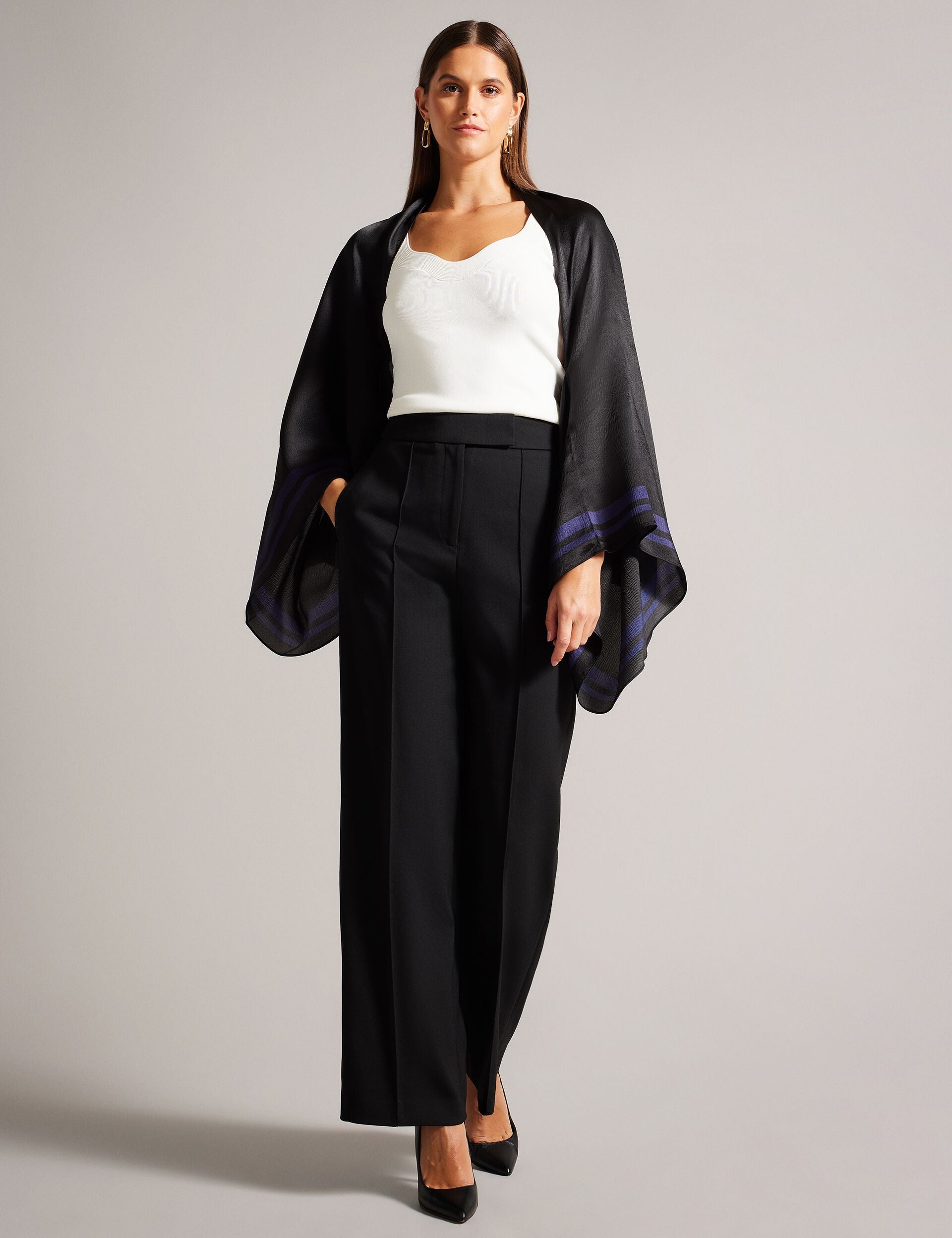 Bring luxury to any look with the JILLLIA silk cape. With built-in sleeves and a subtle striped print to the trim, it's the epitome of effortless elegance.