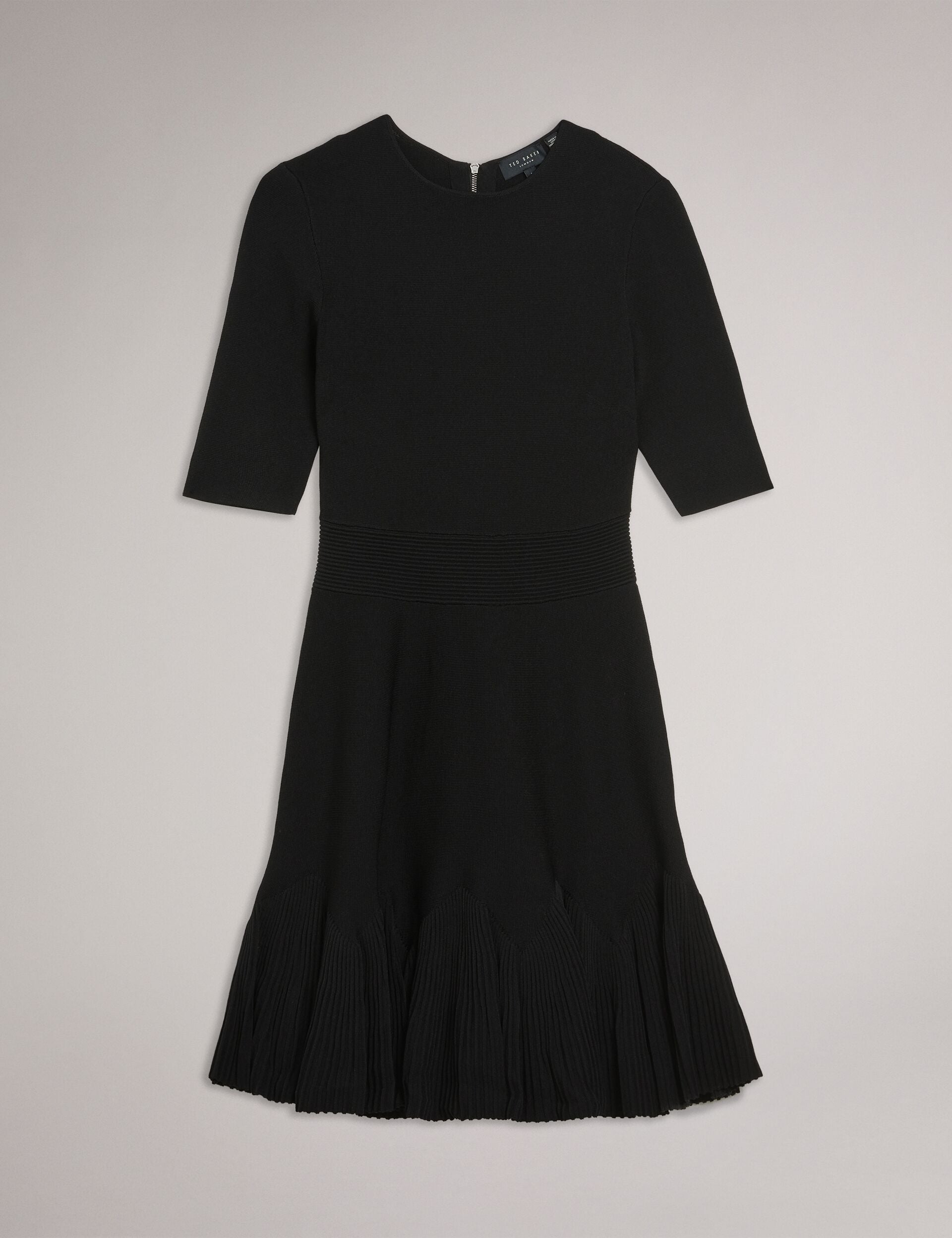 When knitwear and glamour collide, you get JOSAFEE. This perfectly tailored mini dress boasts a figure hugging silhouette with a pleated hemline that ensures you'll look and feel fabulous in any setting, from a lunch date to a weekend exploring the city.