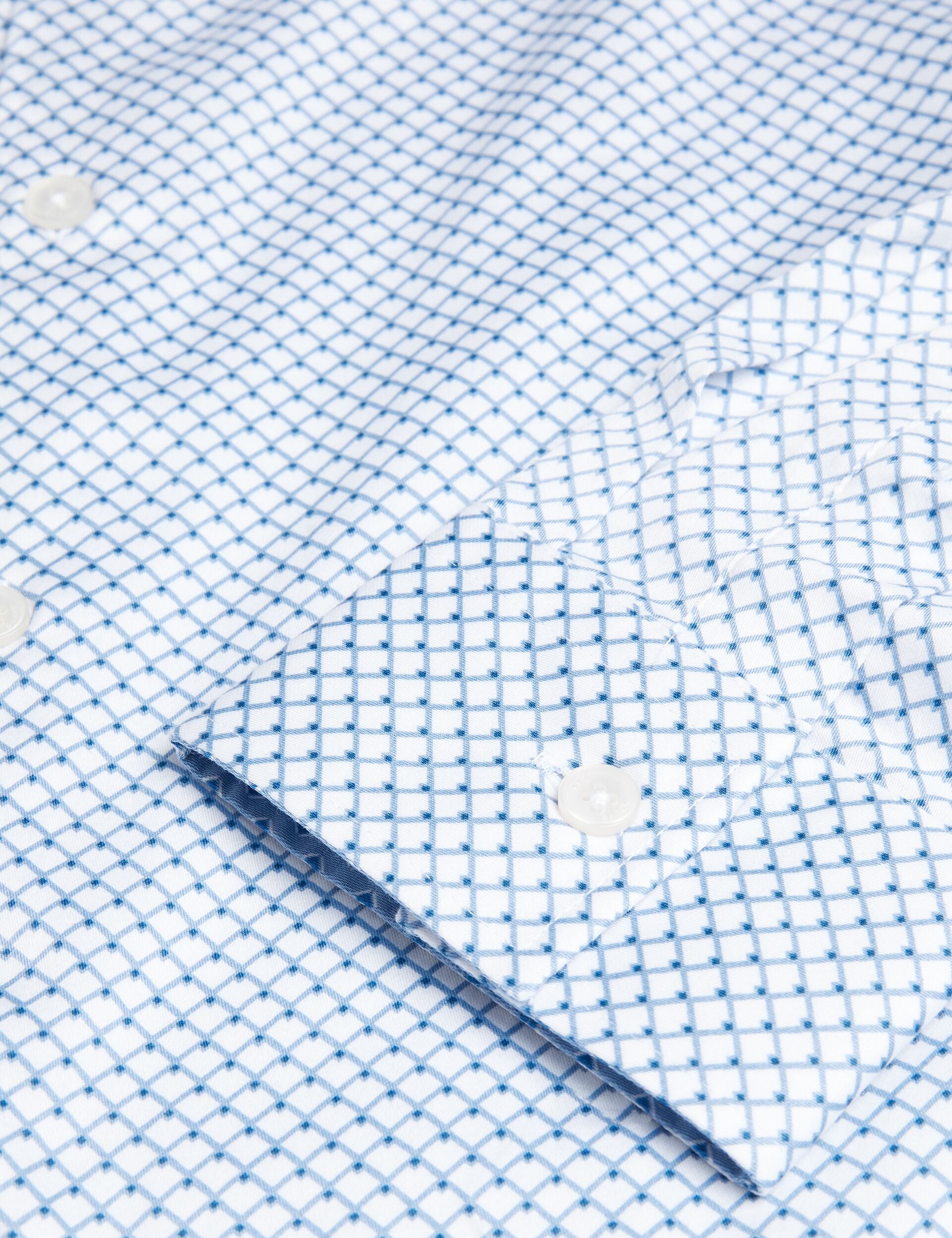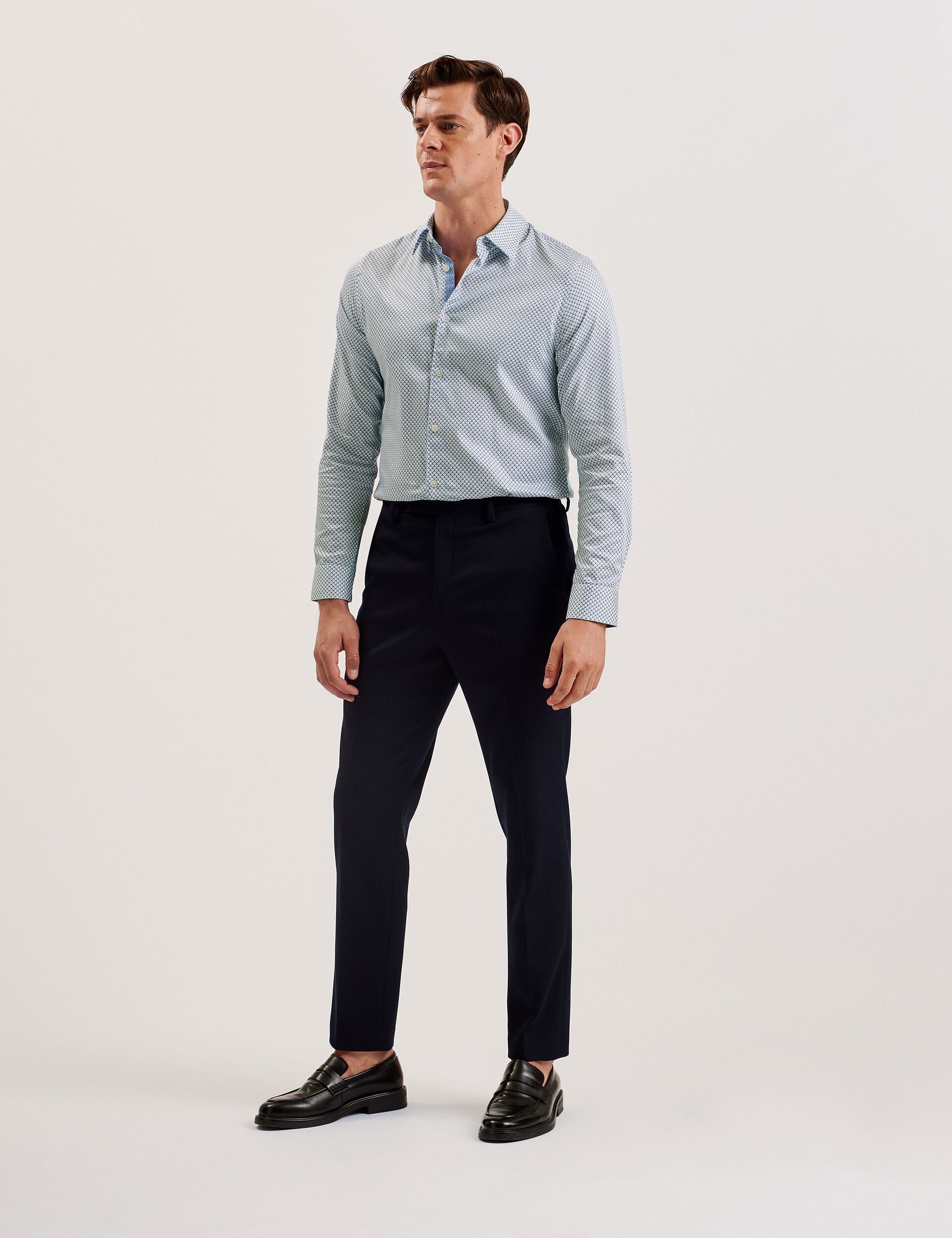 Geometric precision meets contemporary style in this slim-fit dress shirt that transforms your smart-casual wardrobe. The intricate triangle print creates visual texture while maintaining a refined aesthetic that works effortlessly from desk to dinner. Crafted for the modern gentleman who appreciates subtle statement pieces that elevate everyday dressing.