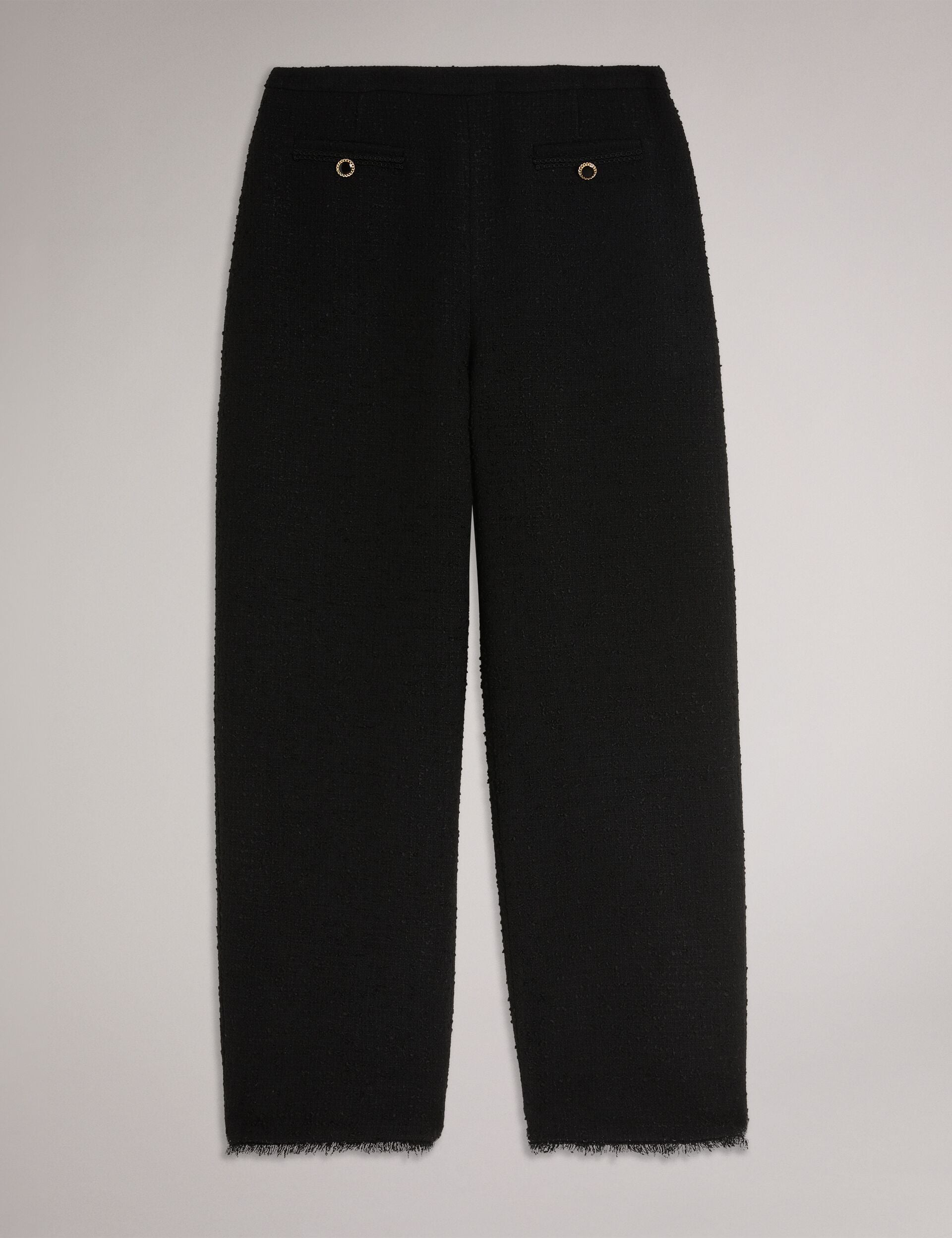 Level up your look with KATYYT. Not your ordinary trousers, this pair features a subtle texture all over and a fringe trim to complete the look. Don't mind if we do.