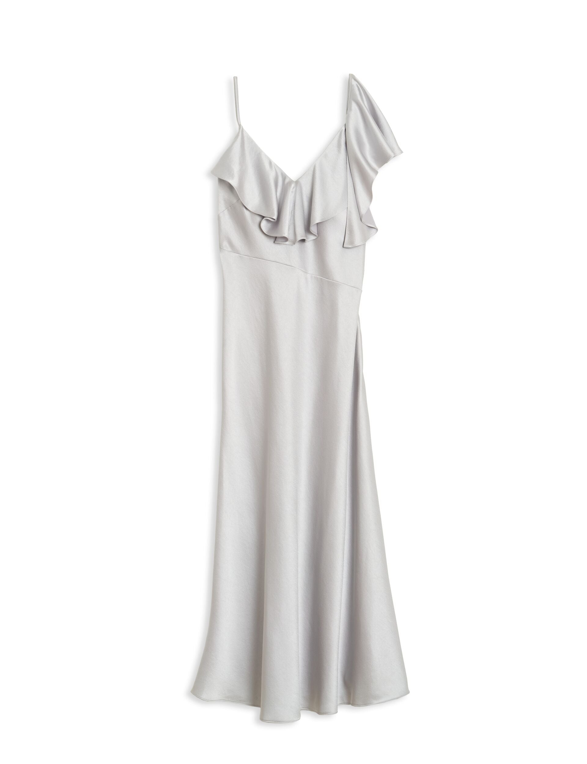 Effortless elegance meets romantic femininity in this gracefully cascading midi silhouette. The asymmetric waterfall ruffle transforms a classic slip silhouette into something truly special, adding movement and dimension that catches the light beautifully. Perfect for elevating your occasion dressing with contemporary sophistication.
