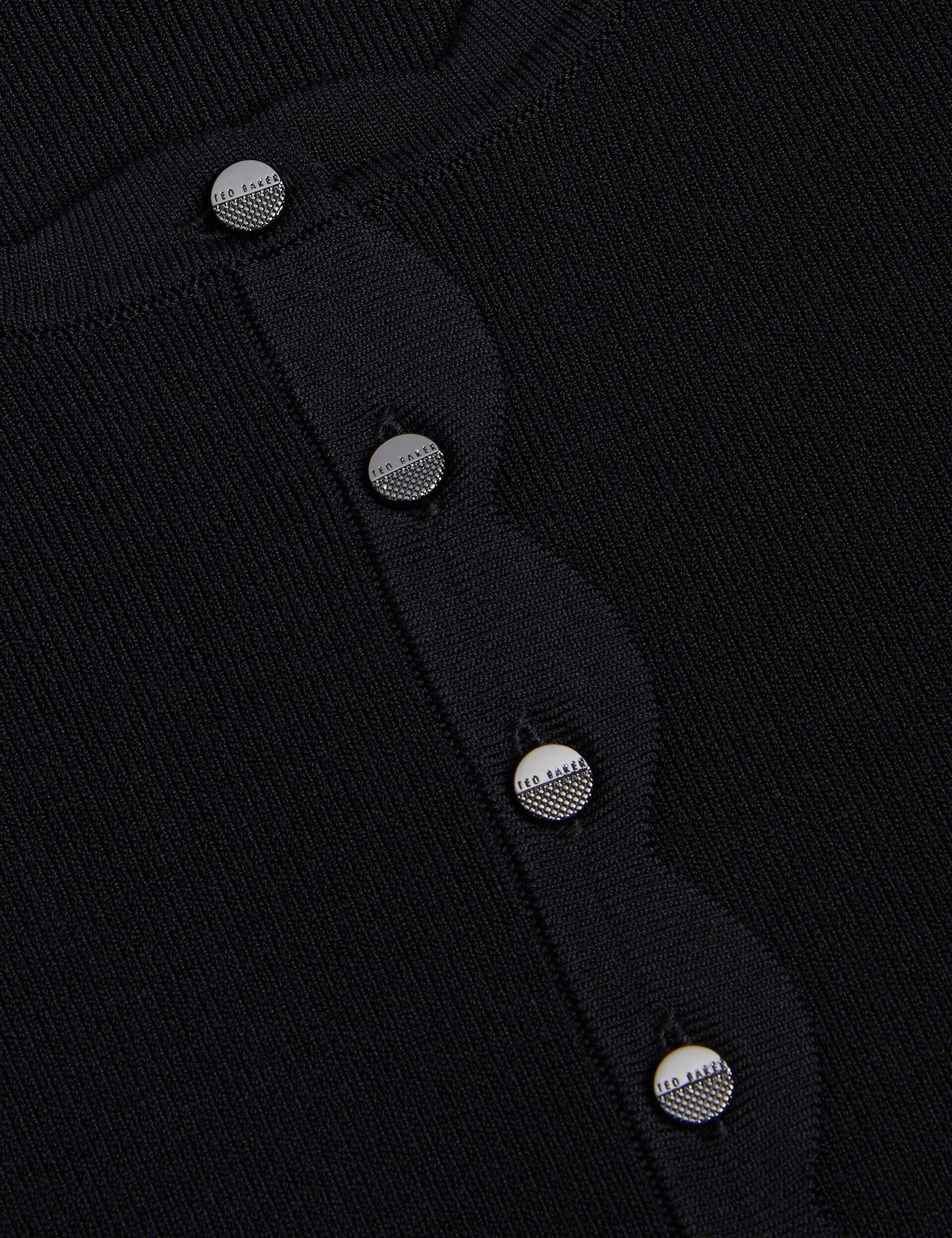 KKLARA is the trusty little cardi your wardrobe needs. The cropped length, ribbed knit material, and slim fit make it perfect for layering over dresses and tees – or wearing on its own. Plus, its scallop trim and branded buttons add an element of sophistication.