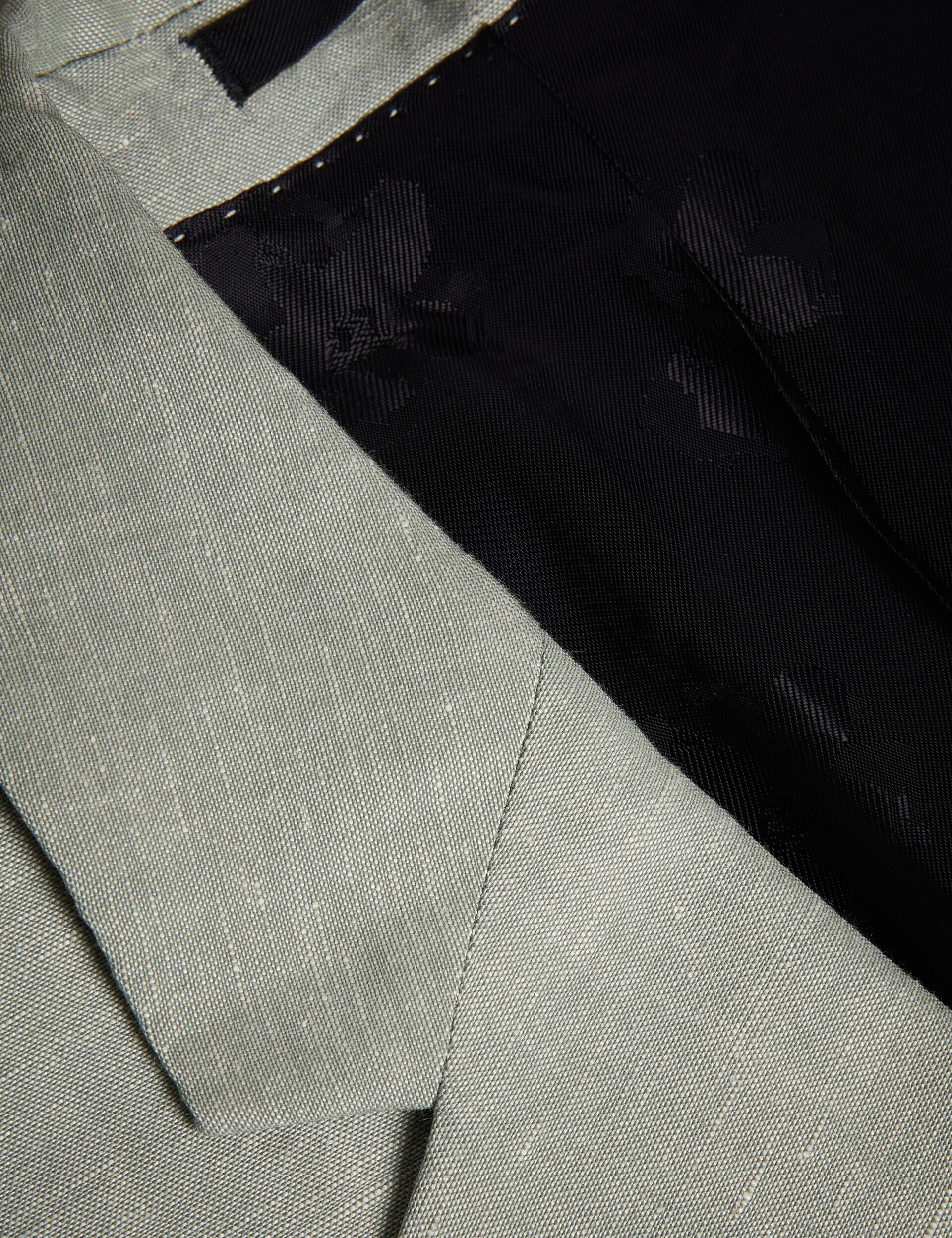 Look sharp in LANCEJ, a luxe blazer in a wool and linen blend that has all the details covered. With a jacquard magnolia lining, it features single breasted buttons and long sleeves.