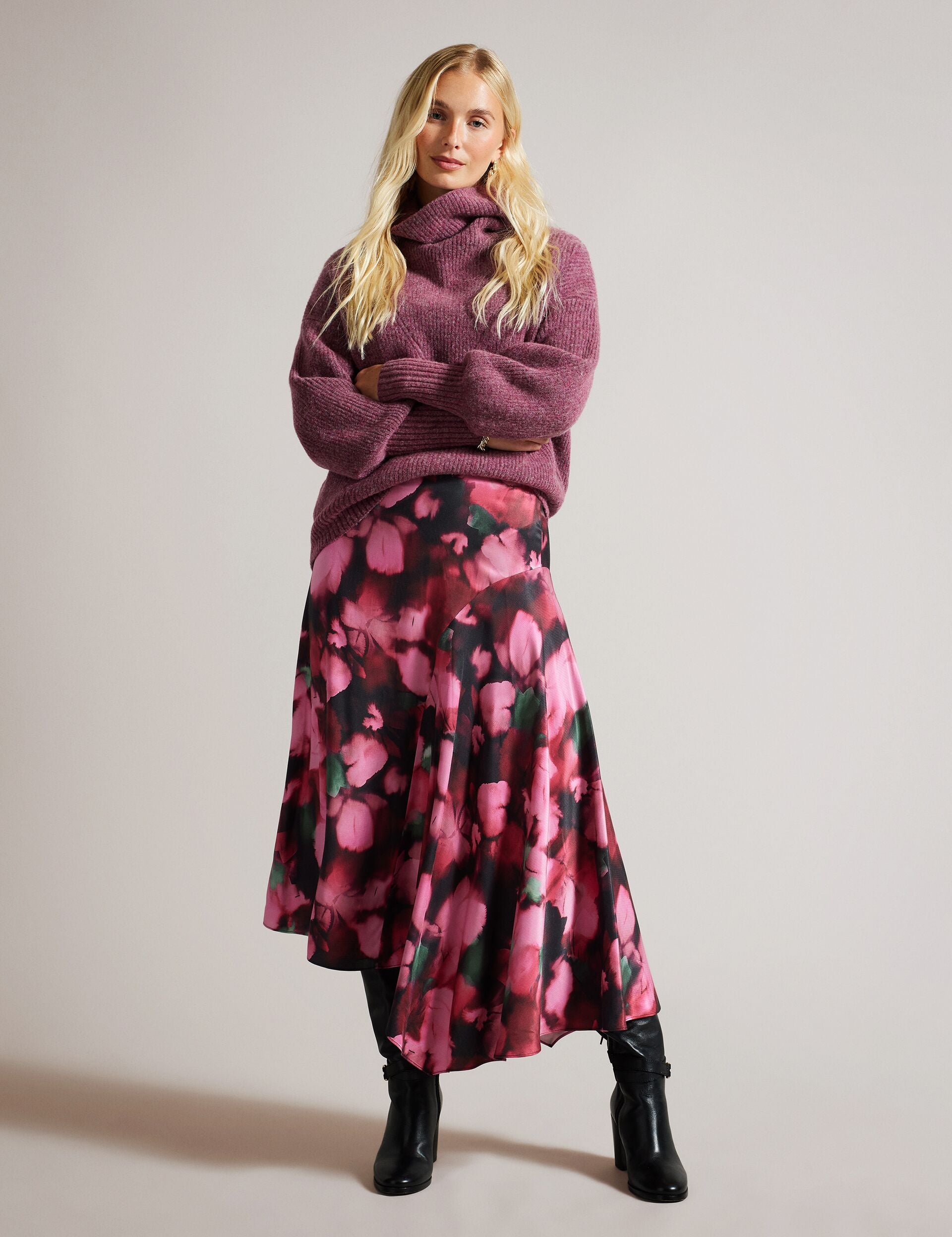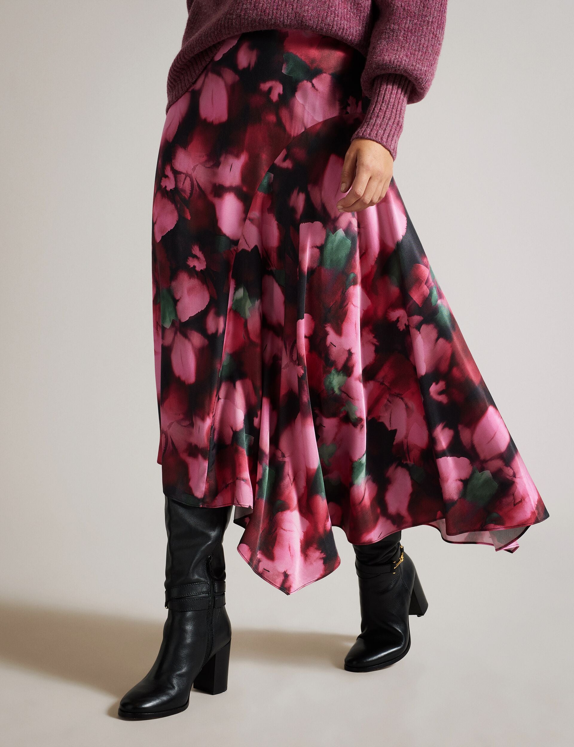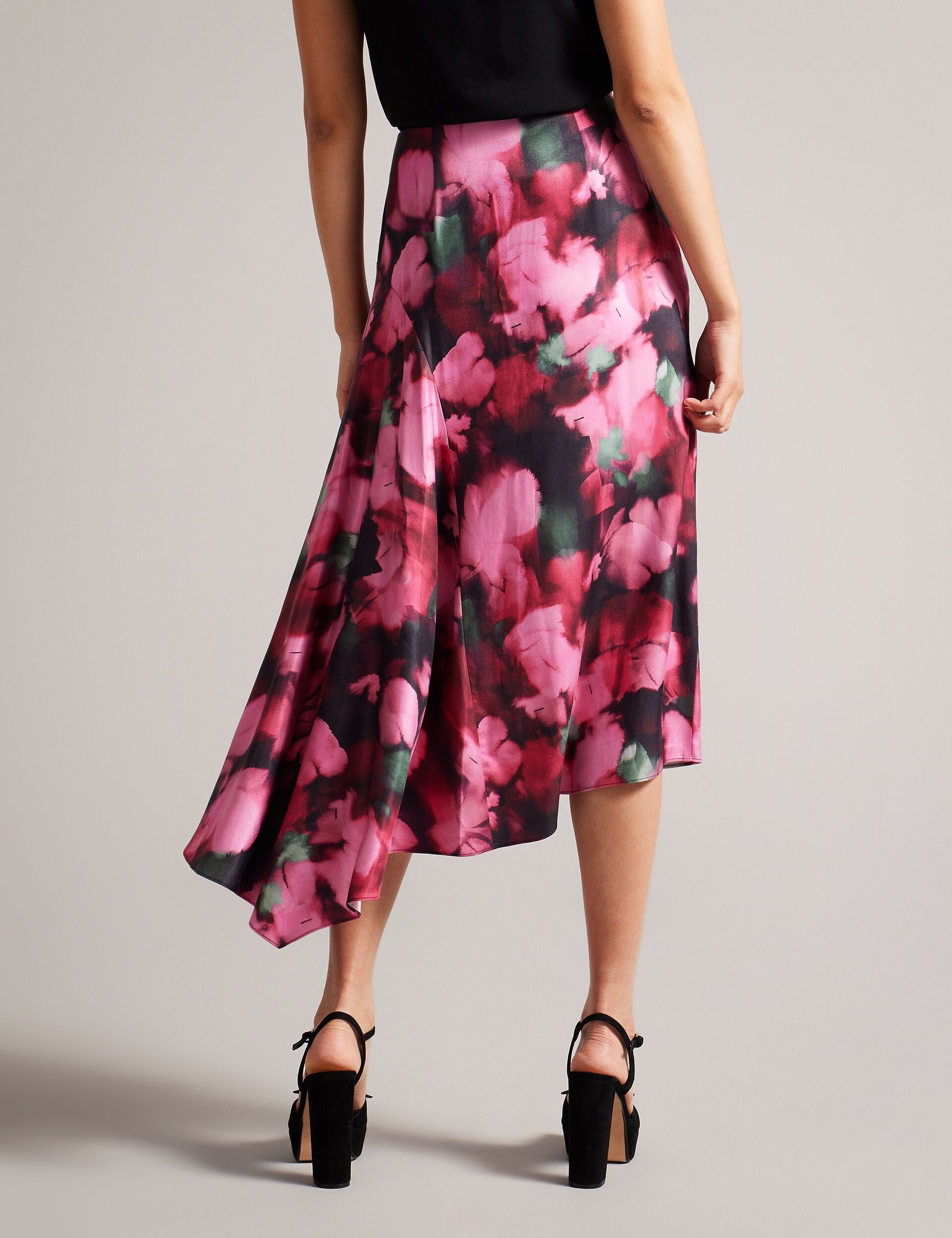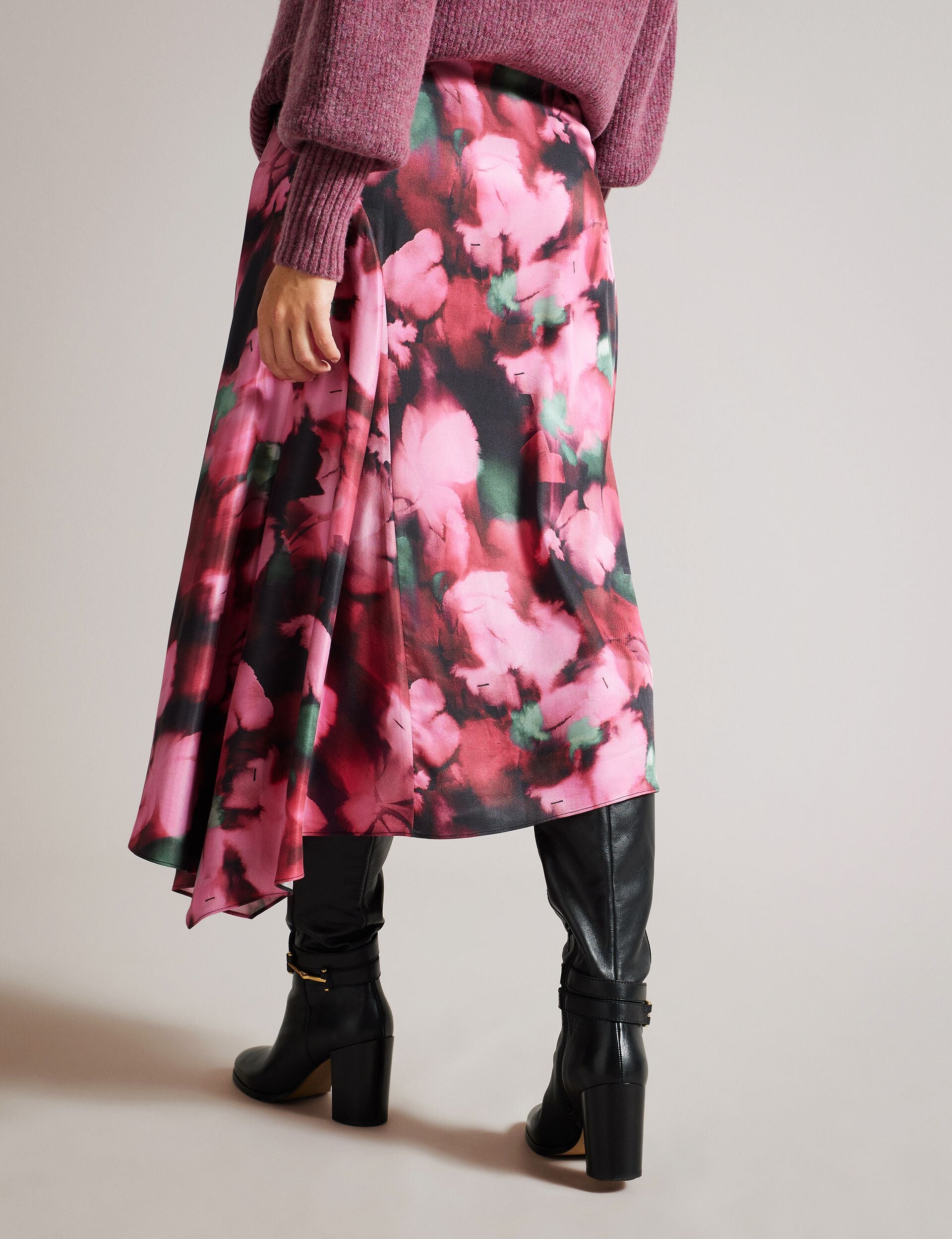 Effortlessly beautiful, the LIZZIEE skirt is crafted from viscose satin with an A-line silhouette and charming petal print. The gathered side panel puts an extra swish in your step, while the bias cut fabric ensures a flattering fit.