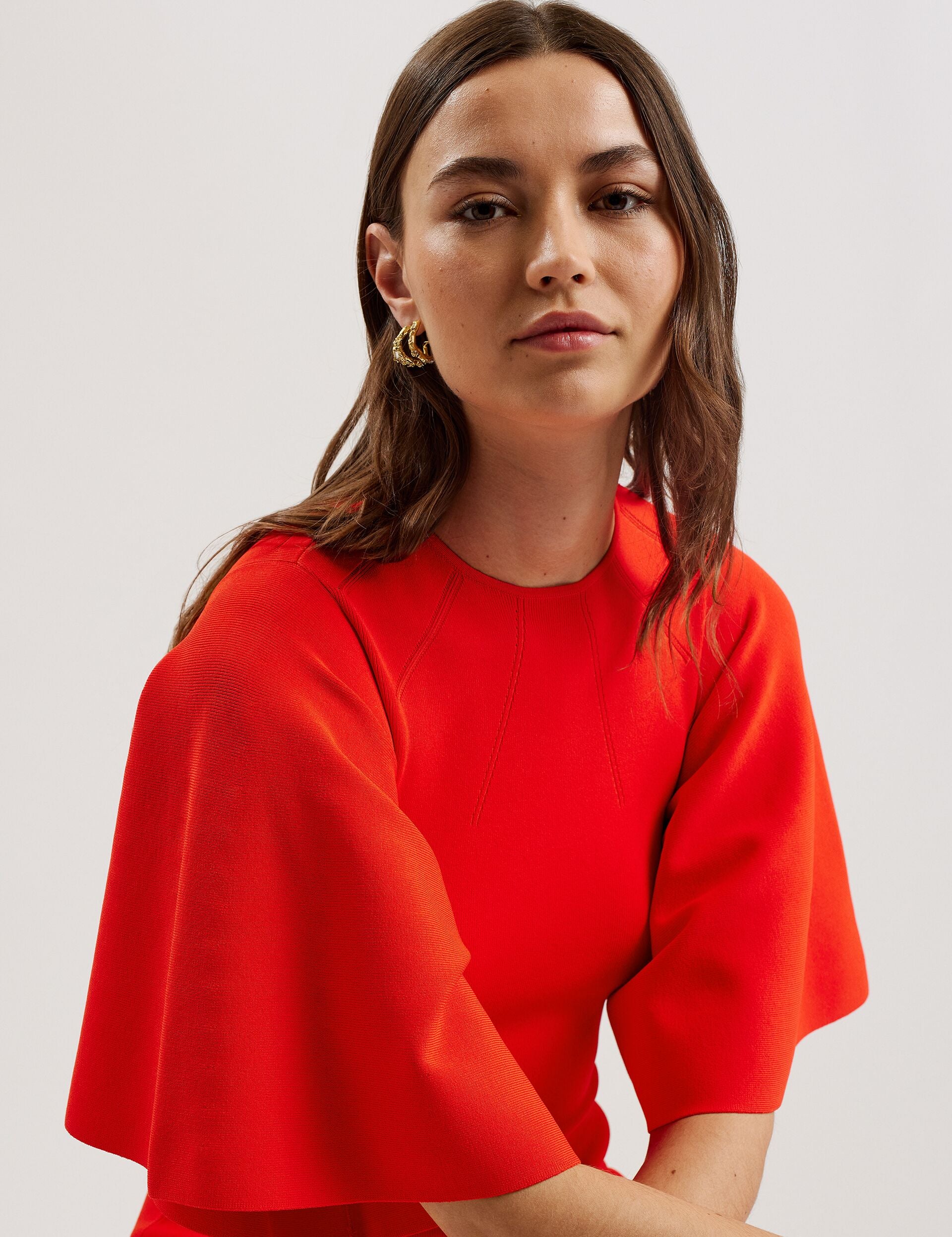 Flaunt your figure in LOUNIA. Crafted from a soft knitted with short fluted sleeves and a split hem, this celebration-worthy dress offers understated glamour that you won't want to take off. Complete the look with simple accessories and allow the dress to speak for itself—you can thank us later.