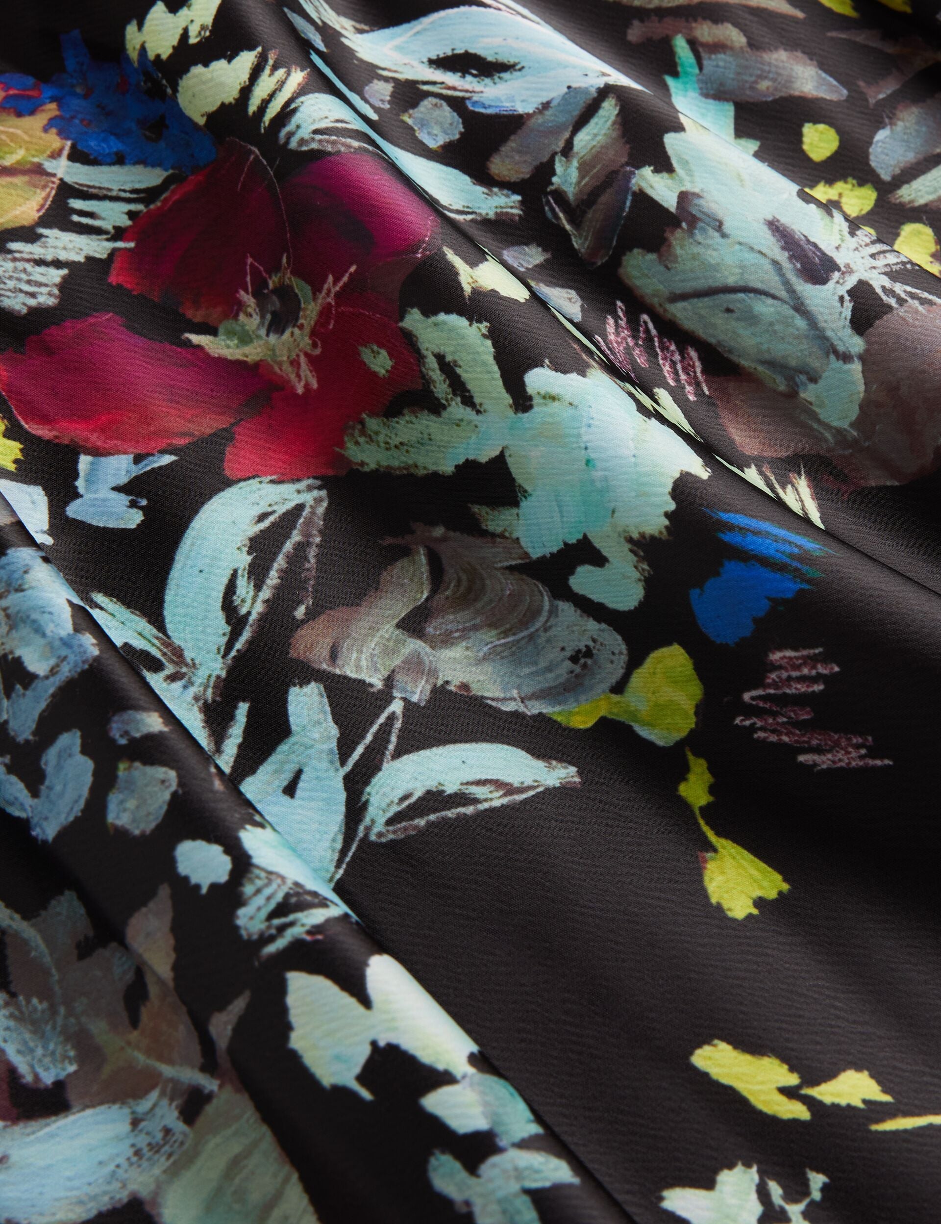MAULINA is made to flatter with its bias-cut midi length and Ponte bodice that create an elegant silhouette. This dress is fitted with a satin skirt that boasts a floral print, whilst the short sleeves come in a puff style for a touch of glam.