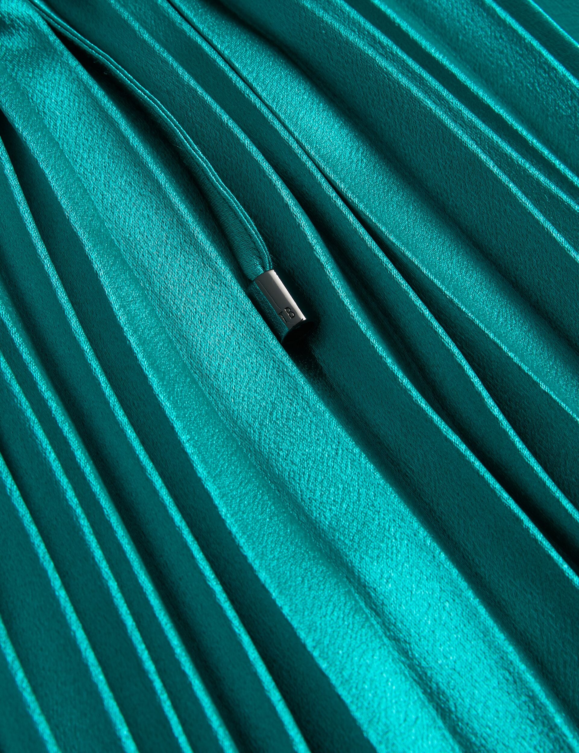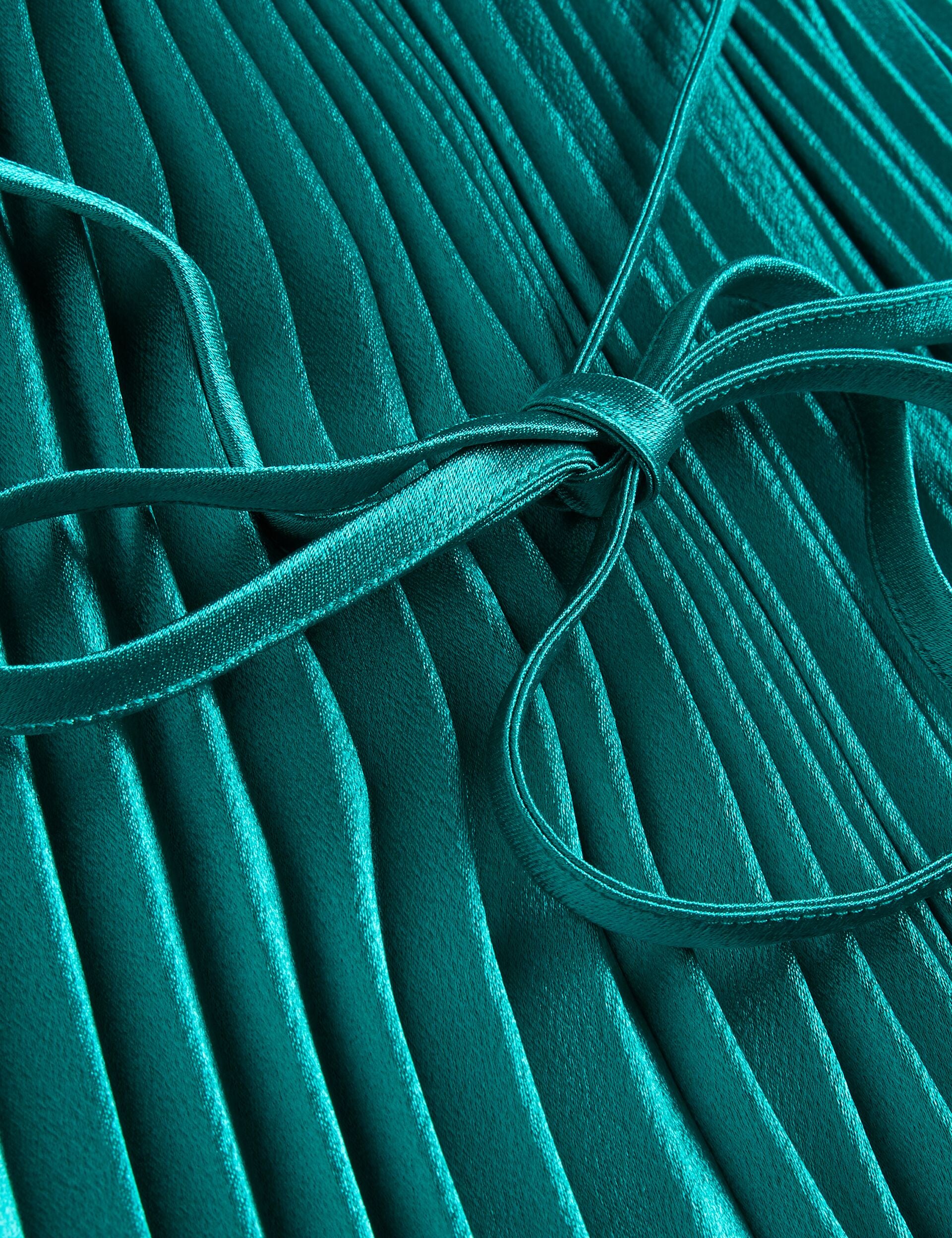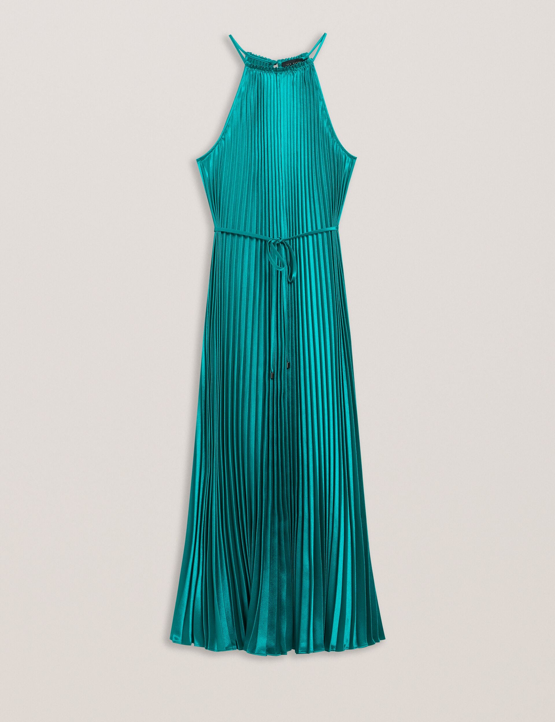 Searching for a glamorous gown? Look no further than MELIKE. Bringing together a pleated design, satin finish and a halter neck, we've created a dress that's sure to shine under those party lights. Its flowy finish is cinched at the waist with a tie belt, making it the perfect dance partner.