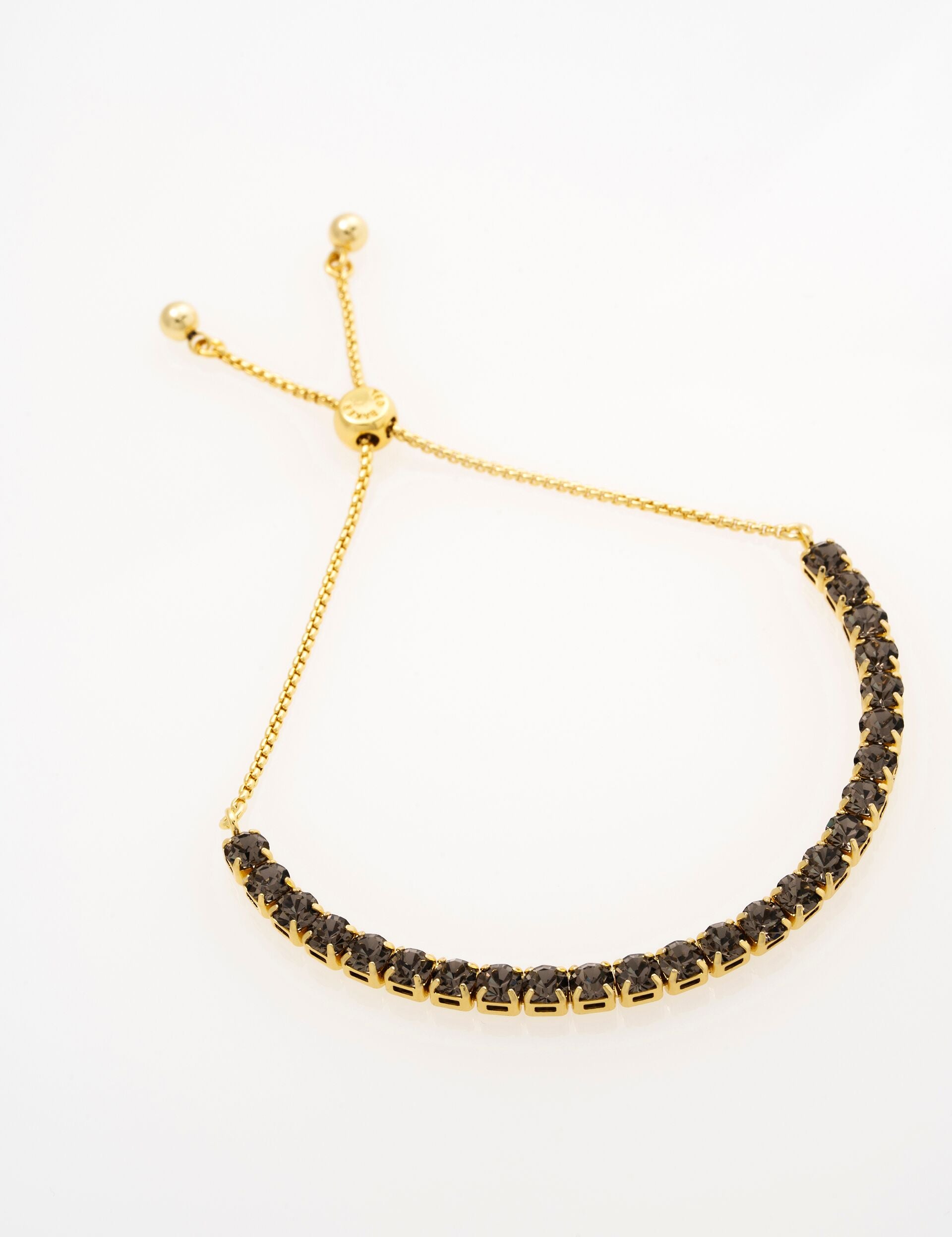Add effortless sparkle with MELRAH. Crafted in a tennis-style, this bracelet features a row of dazzling clear European crystals, finished with gold-tone plating. Thanks to a subtly branded sliding adjuster, you can personalise the fit to you.
