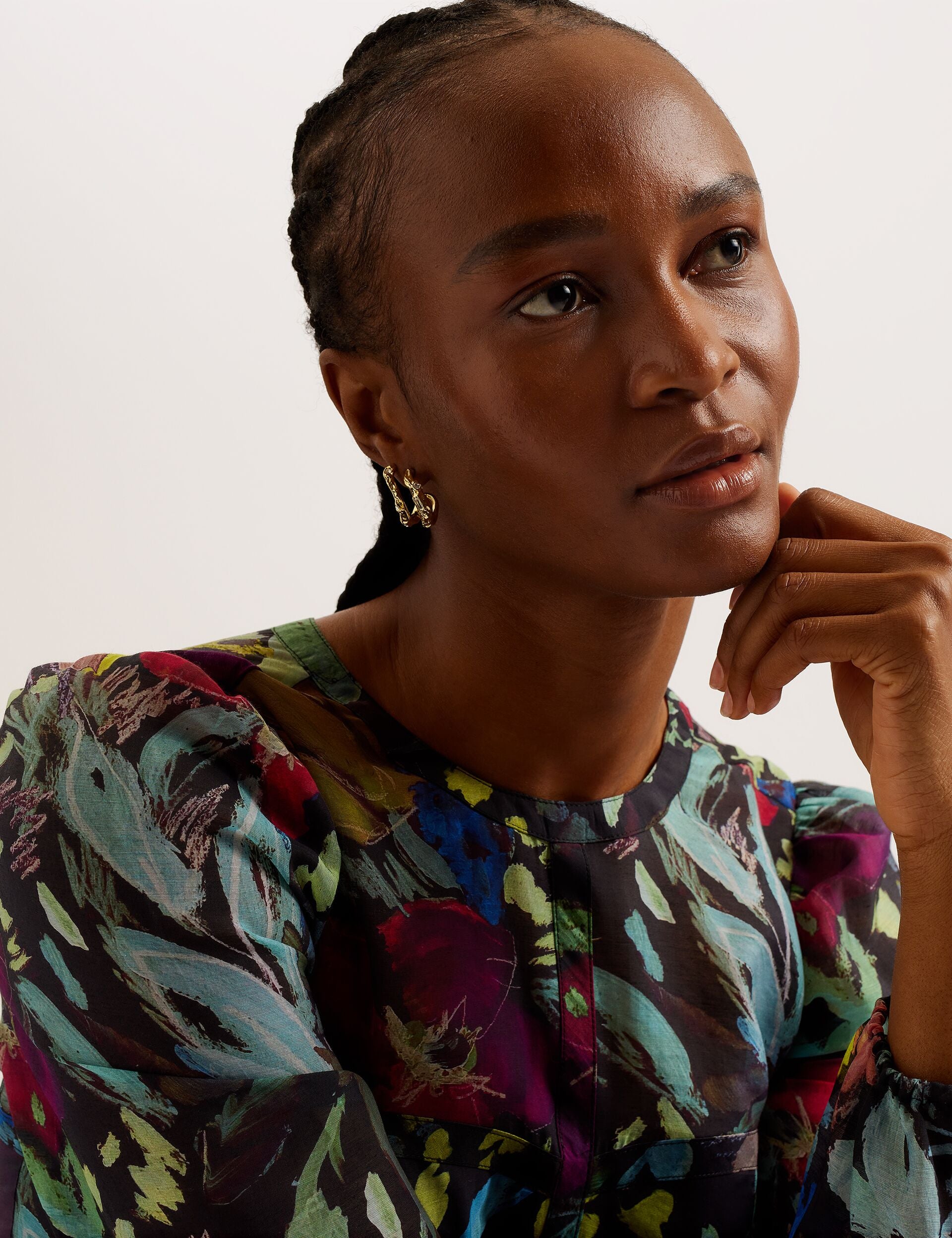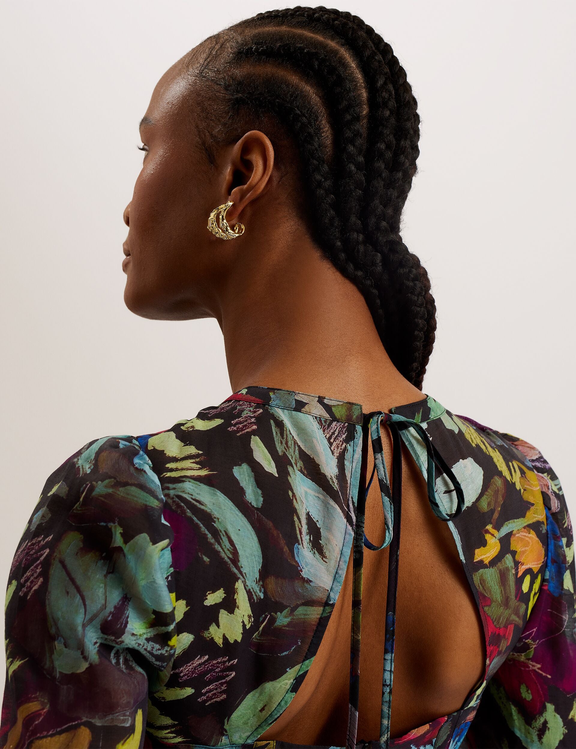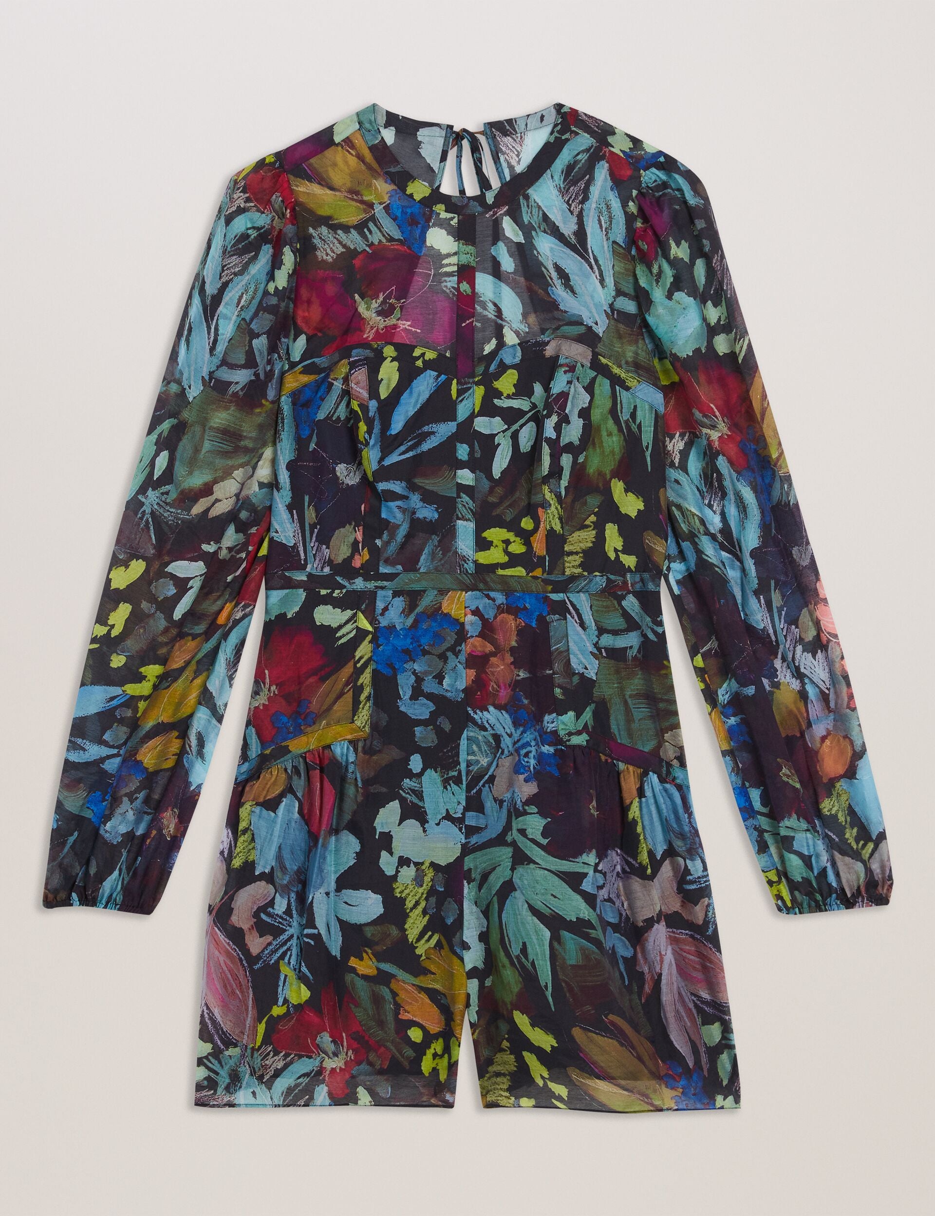 Looking to mix up your special occasion fits? Meet METAYA. The bold floral print makes this romper the perfect party piece, with panel detailing around the bust and waist to flatter your silhouette. It's a cocktail of flirty and fun with long bishop sleeves and a cut-out detail on the back.