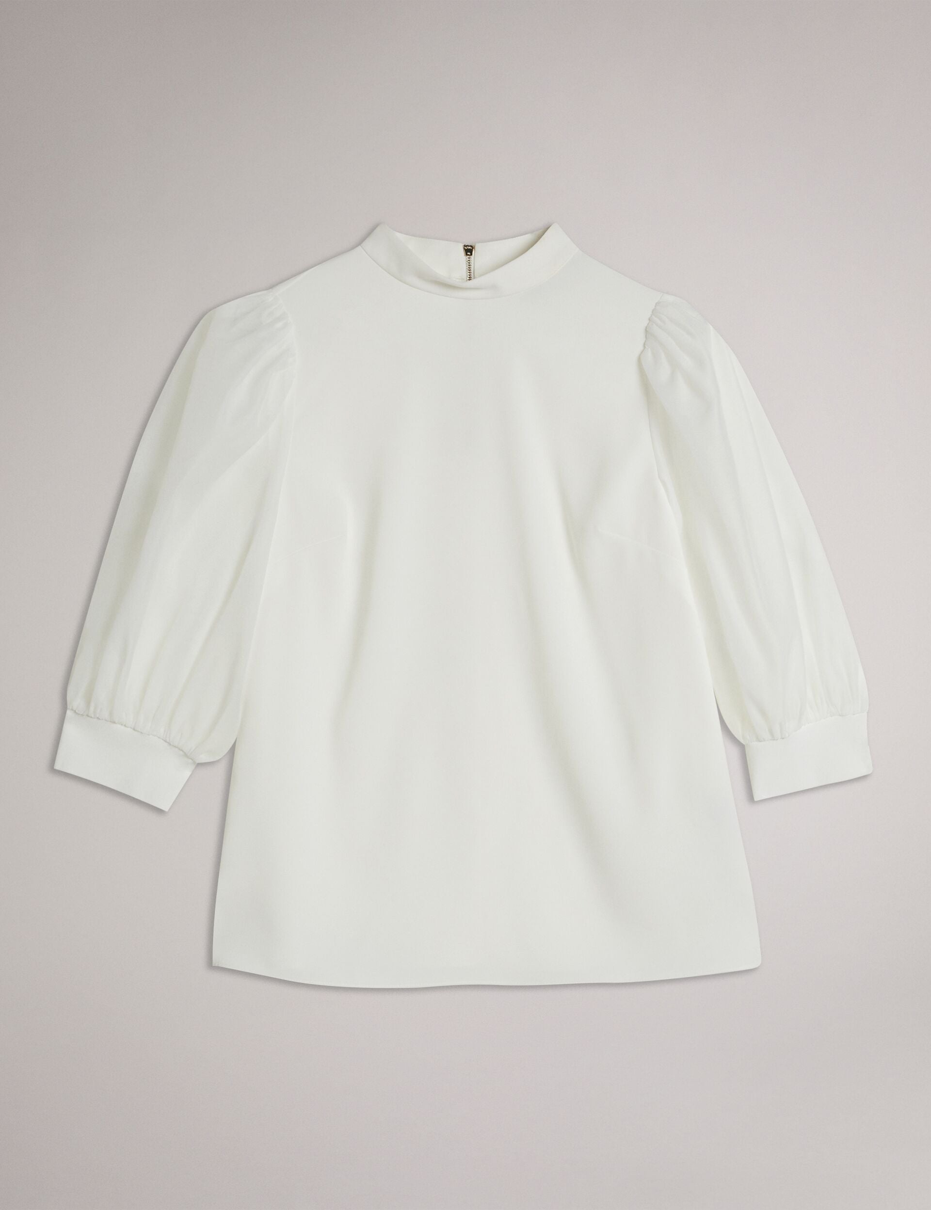 It's big sleeve energy with the MICAELI top. Organza oversized puff sleeves complimented by a contemporary high neck, this wow-worthy piece makes a real style statement, whether you choose to wear it with jeans or a slightly smarter choice.