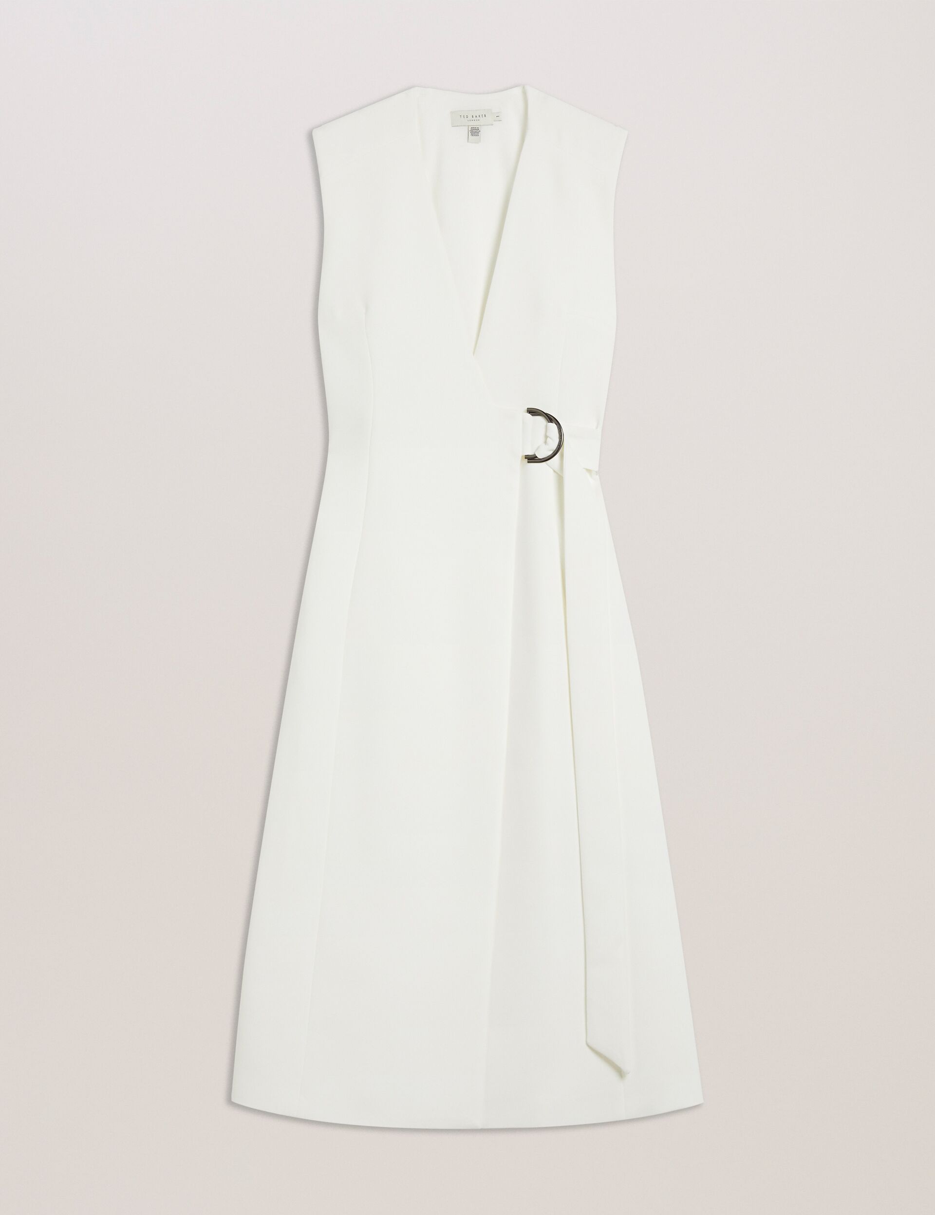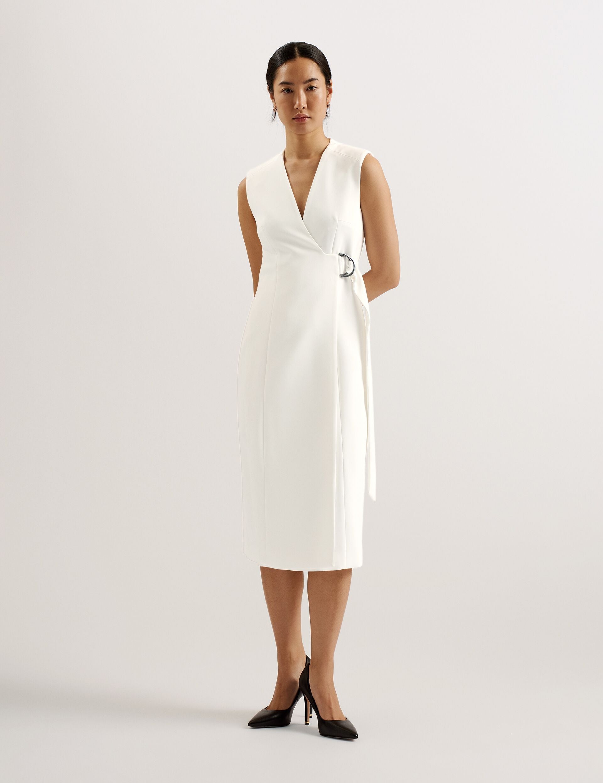 A fresh take on timeless tailoring, MOLENAA is designed with a sleek wrap silhouette that defines the waist while keeping the look modern and minimal. The deep V-neckline adds sophistication, while the midi length ensures versatility — polished enough for work, yet refined enough for evening occasions.