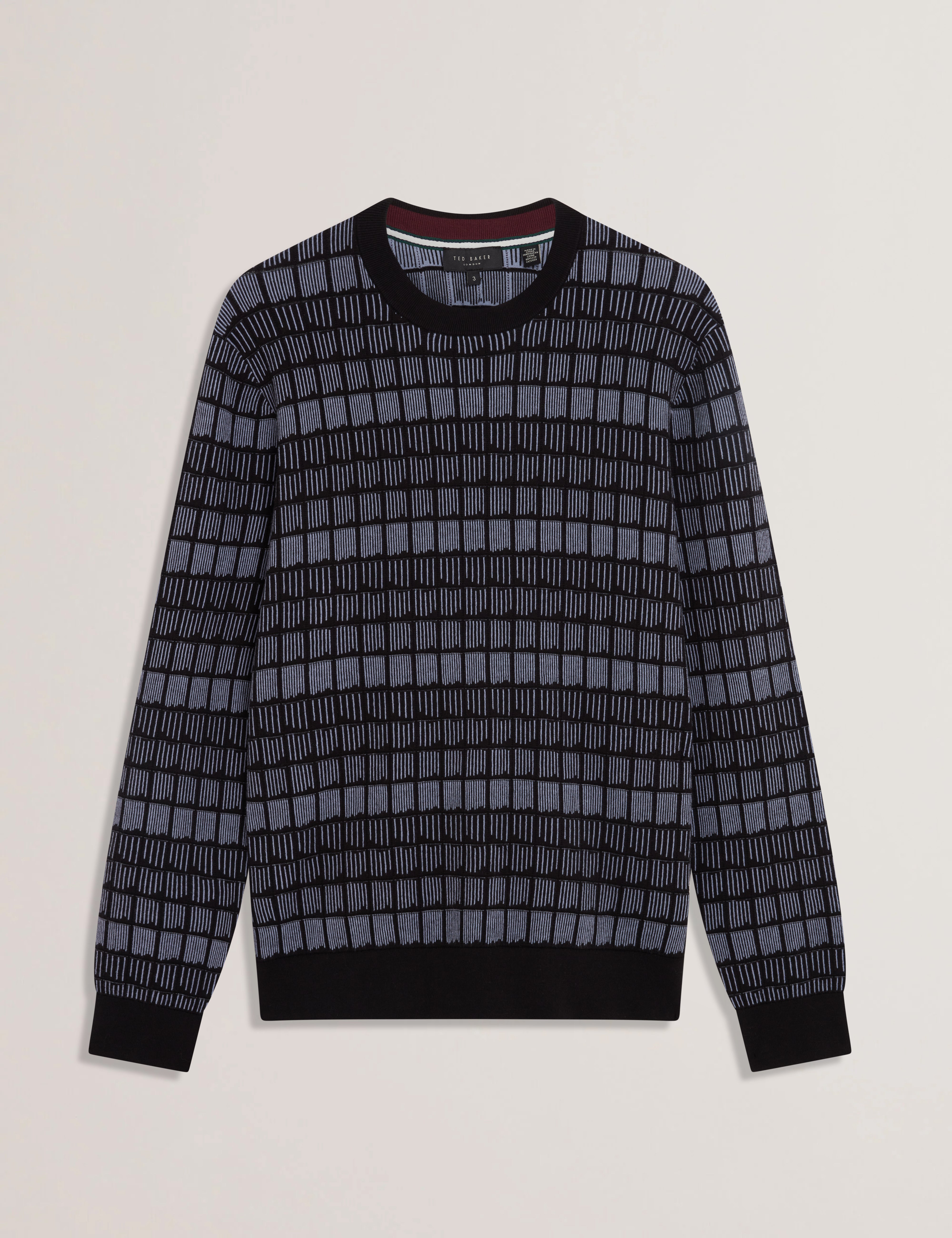 Opt for something a little louder with the OSBURN crew neck jumper, featuring a unique ombre grid design that creates a textured look. Light cotton knitted fabric makes it the perfect transitional piece that's easy to layer under winter coats and light jackets.