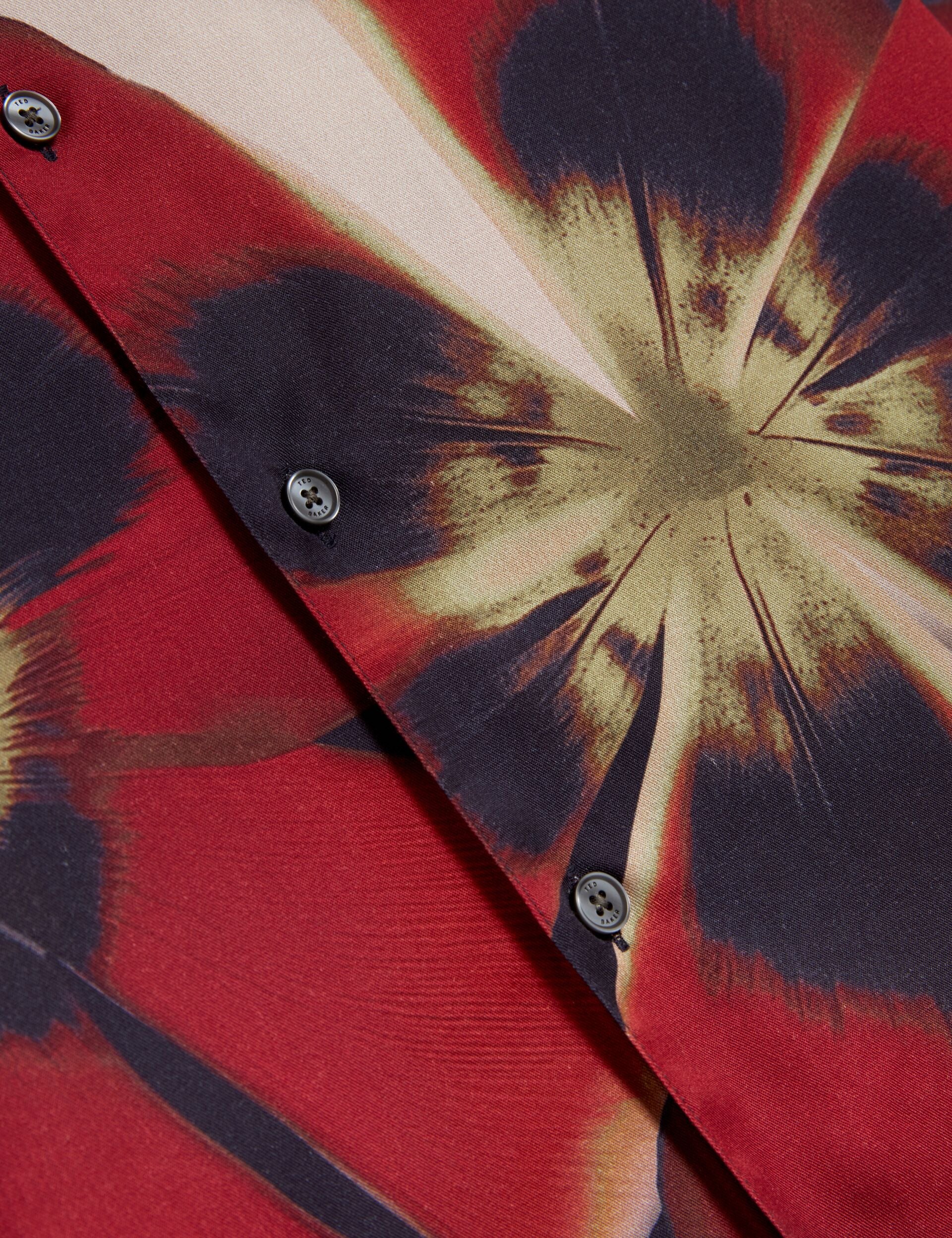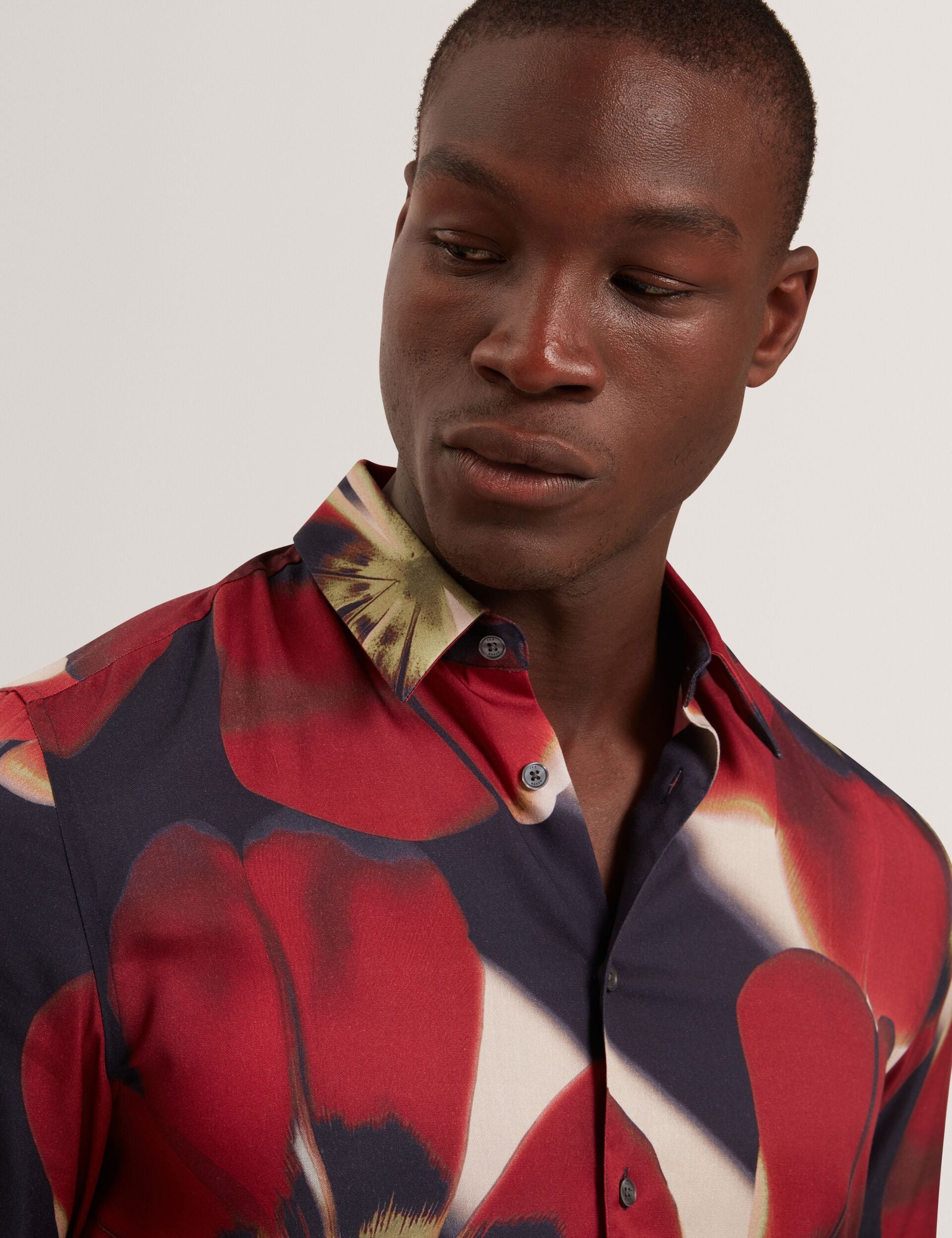 Make a bold statement with PHELIN, featuring an oversized floral placement print that commands attention. The dramatic blooms create an artistic focal point that elevates your smart-casual wardrobe with contemporary flair. Perfect for making an impression whether you're heading to dinner or the office.