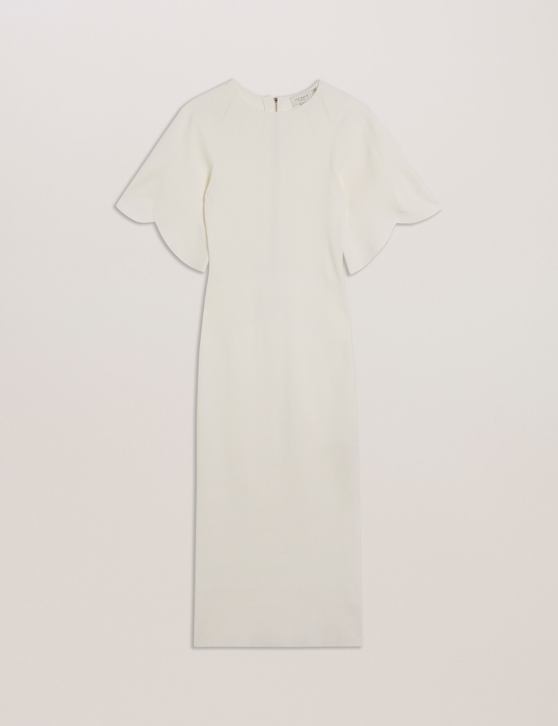 The RAELEA midi dress is made to flatter with a soft ribbed knit material and sculpting bodycon fit that shows off your shape. The short, fluted sleeves and split hem add a level of understated glamour that will make this dress your go to for special occasions. Finish your look with a pair of heels and get ready to feel your most beautiful self.