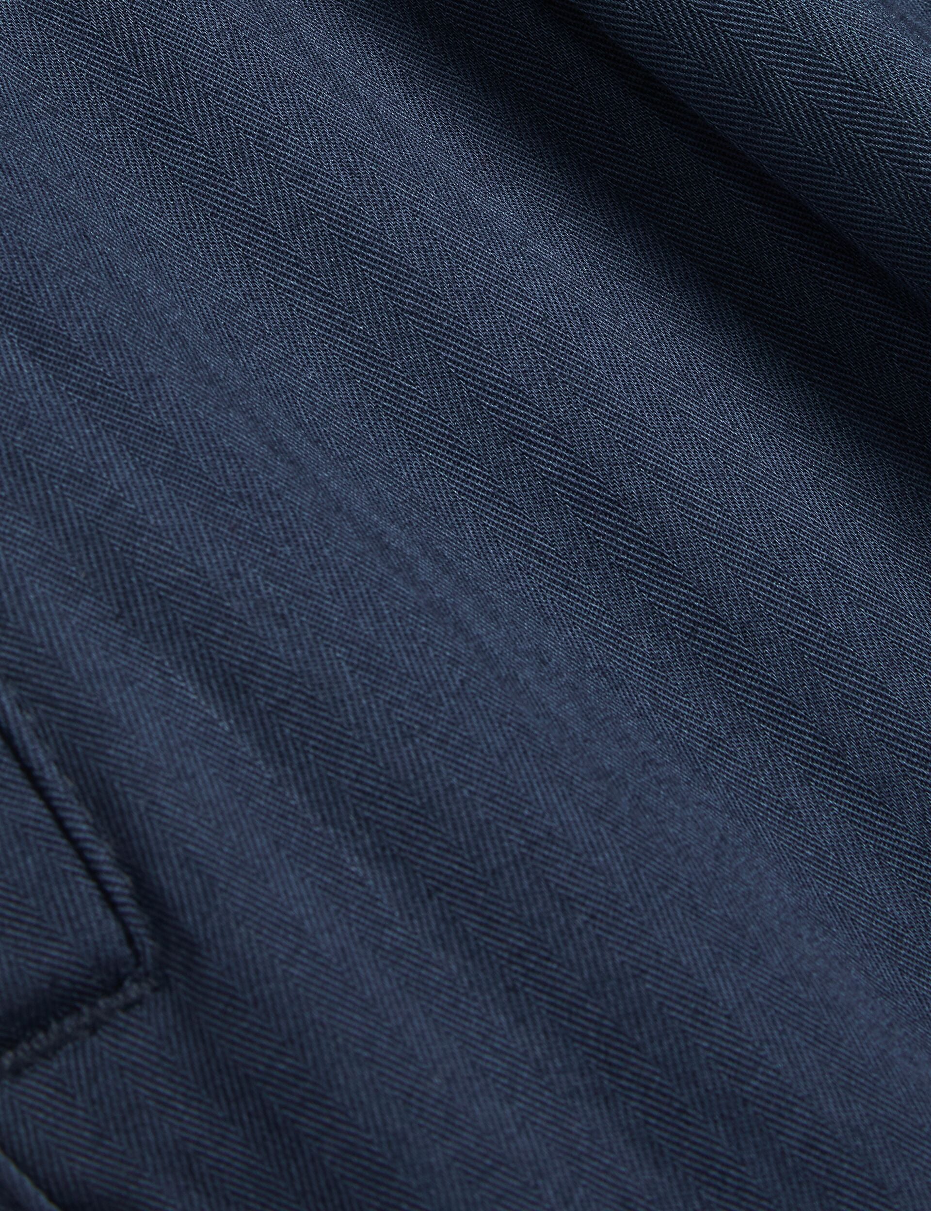 - Tailored straight-leg chino trouser in textured herringbone weave