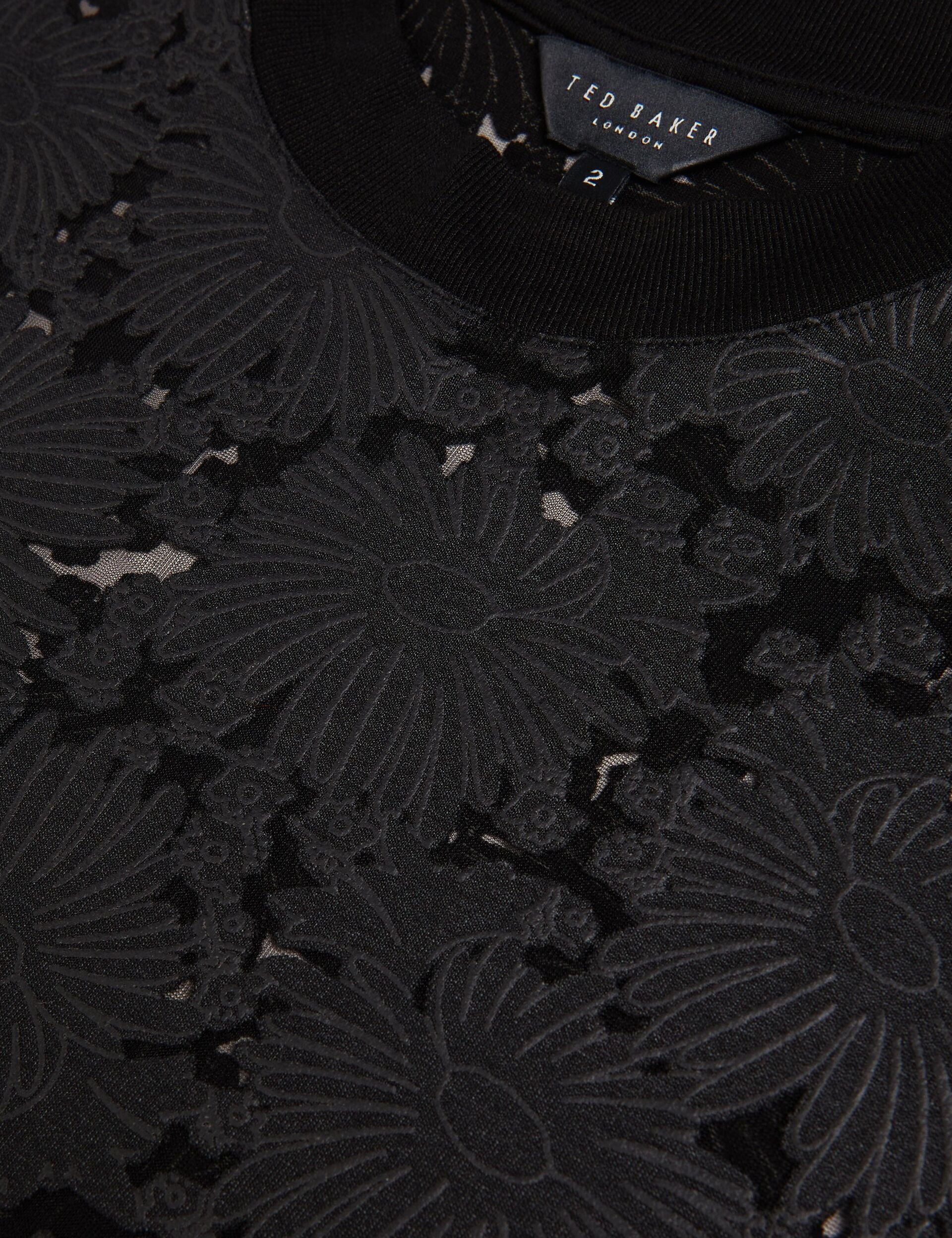 Sophisticated textures meet effortless comfort in this elevated essential that transforms your everyday wardrobe. The intricate floral burnout design creates beautiful depth and visual interest, while the relaxed silhouette with grown-on sleeves delivers contemporary ease. Perfect for pairing with tailored trousers or elevated separates for an understated yet refined look.