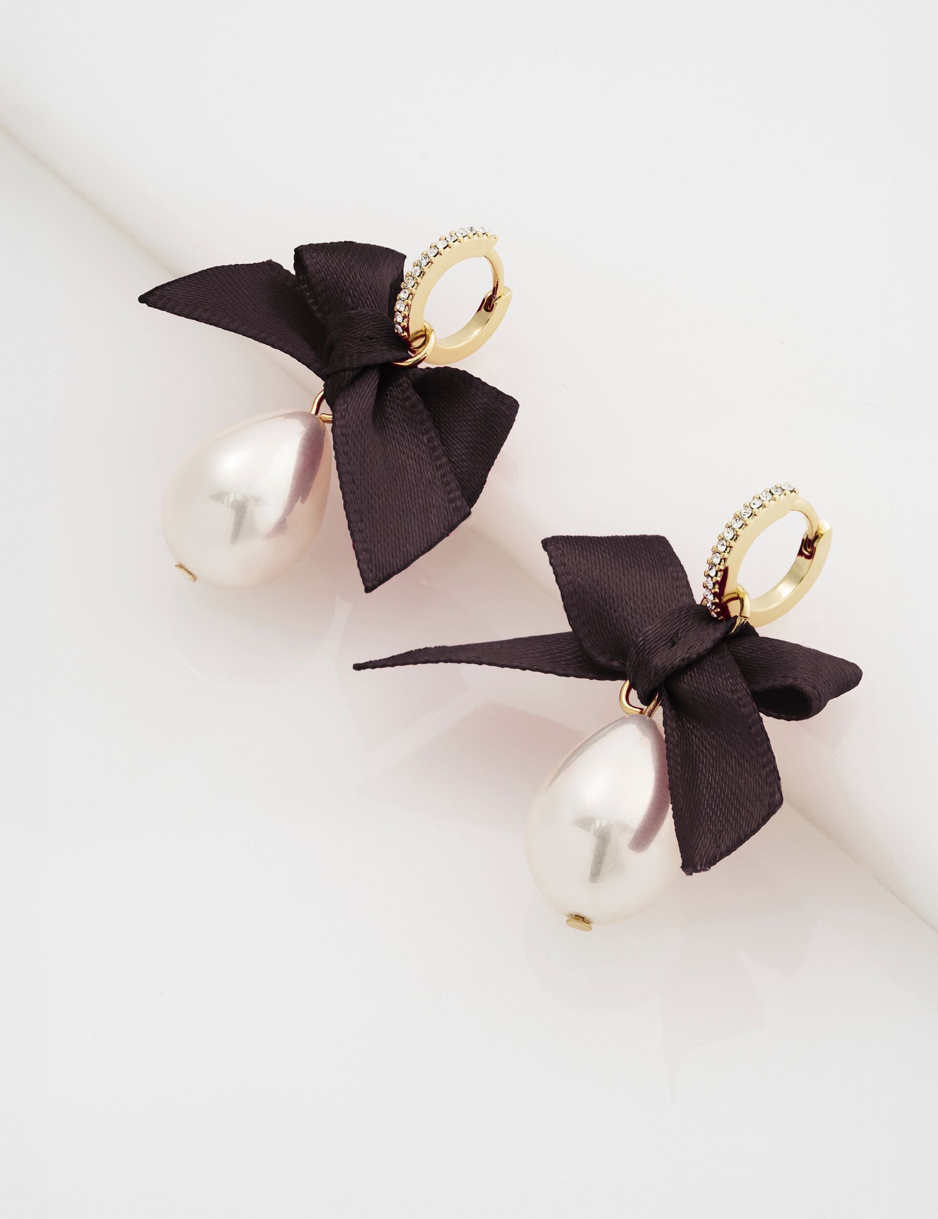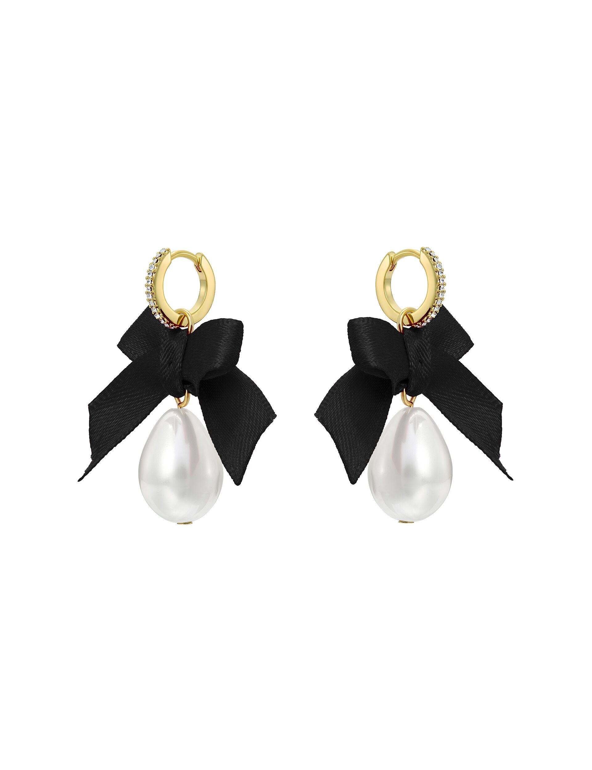 Ribbon Bow Pearl Drop Huggie Earrings