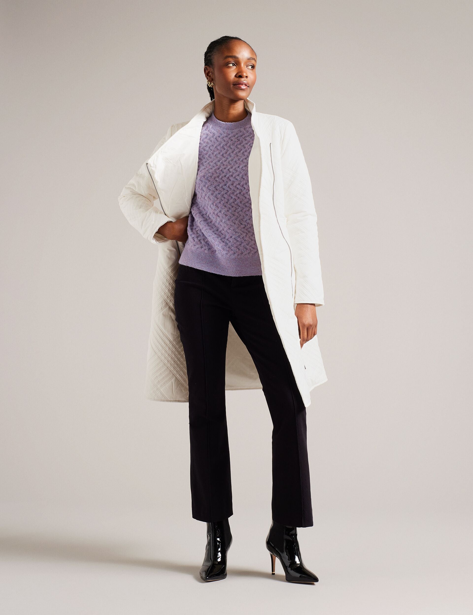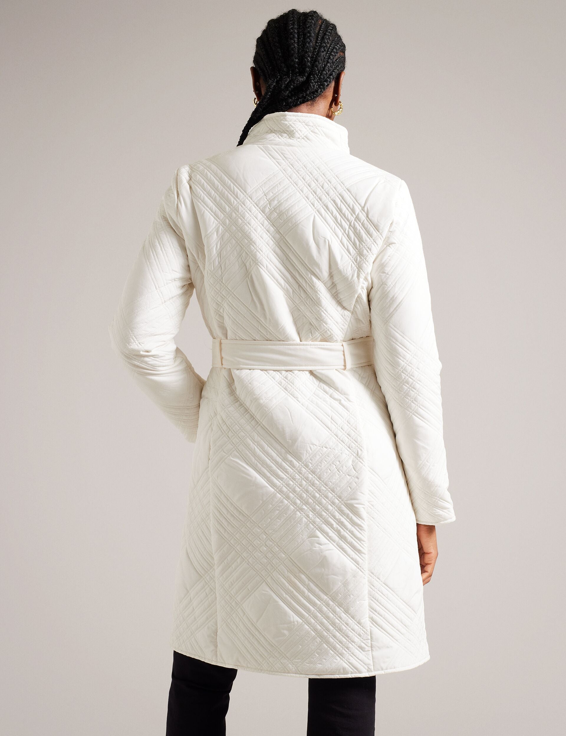 Wrap yourself in timeless elegance with our ROSEMAE padded wrap coat. Designed with a midi length, it exudes sophistication and provides optimal coverage for cooler days. Our house check quilted texture adds depth and dimension, so yoou can showcase your style whether you're walking the dog or making your morning commute.