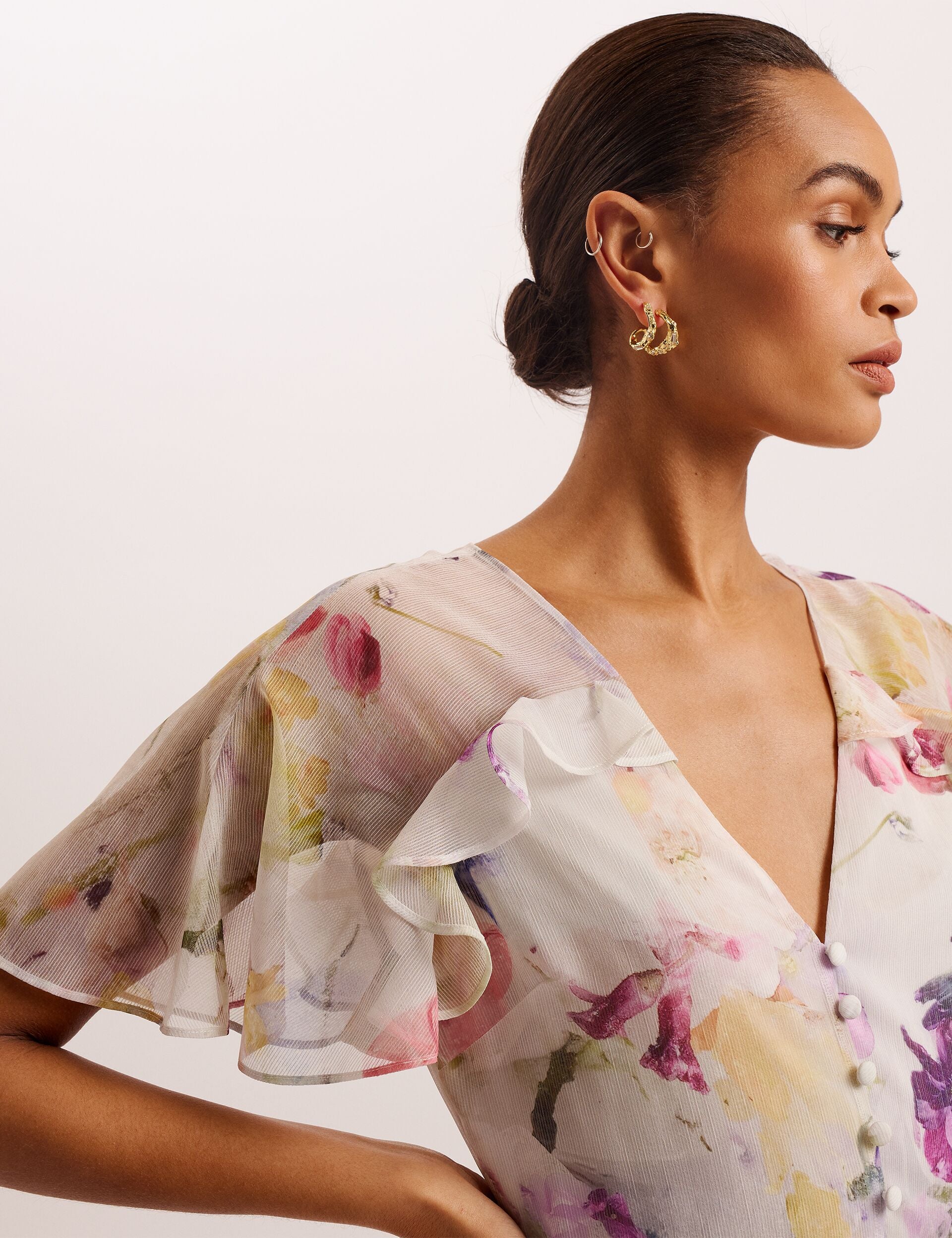 Revive your wardrobe with the SANGRO dress. The lilac floral mini dress is perfect for a day out or elegant evening.