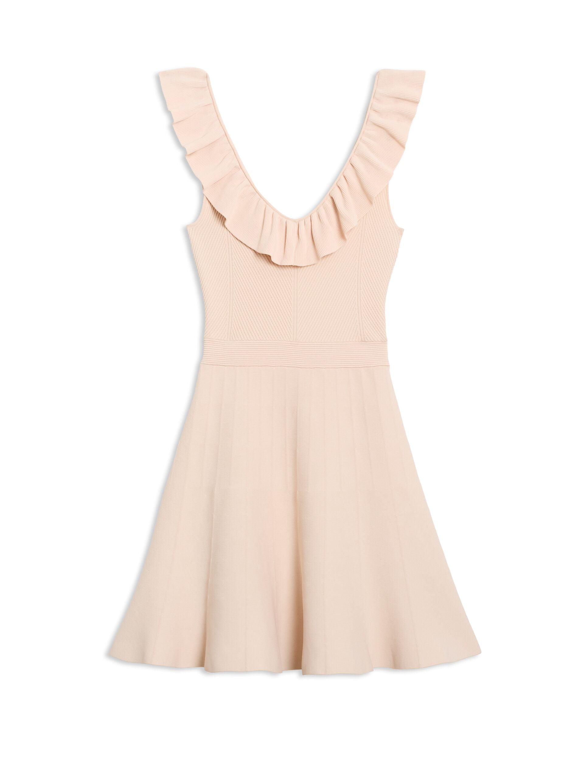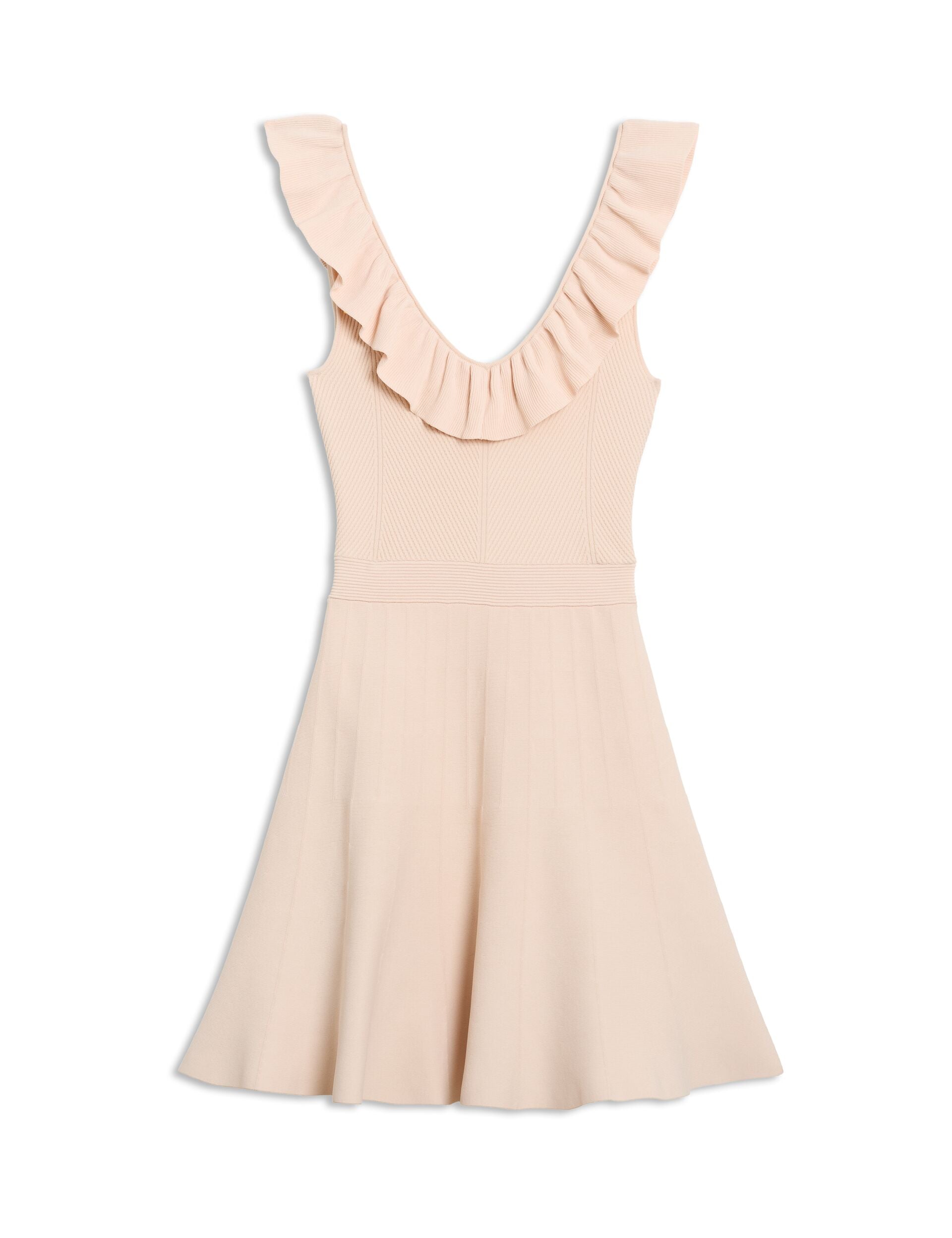 Feminine charm meets contemporary sophistication in this beautifully crafted knitted piece that elevates your wardrobe with effortless elegance. The playful ruffle neckline adds a romantic flourish to the sleek silhouette, while the fit-and-flare shape creates a universally flattering profile. Perfect for transitioning from desk to dinner, this versatile piece pairs beautifully with heels and a blazer for polished professionalism or sandals for weekend ease.