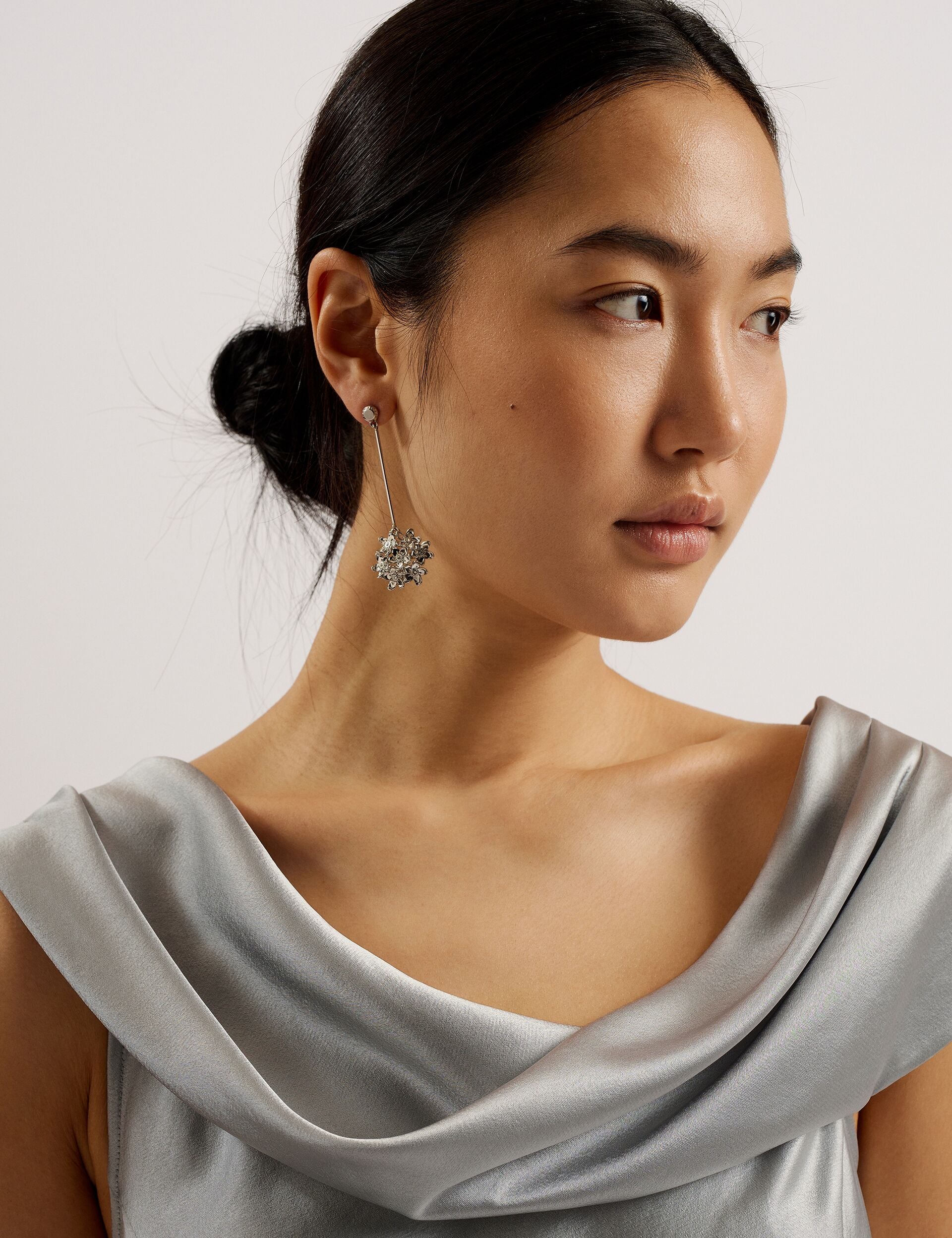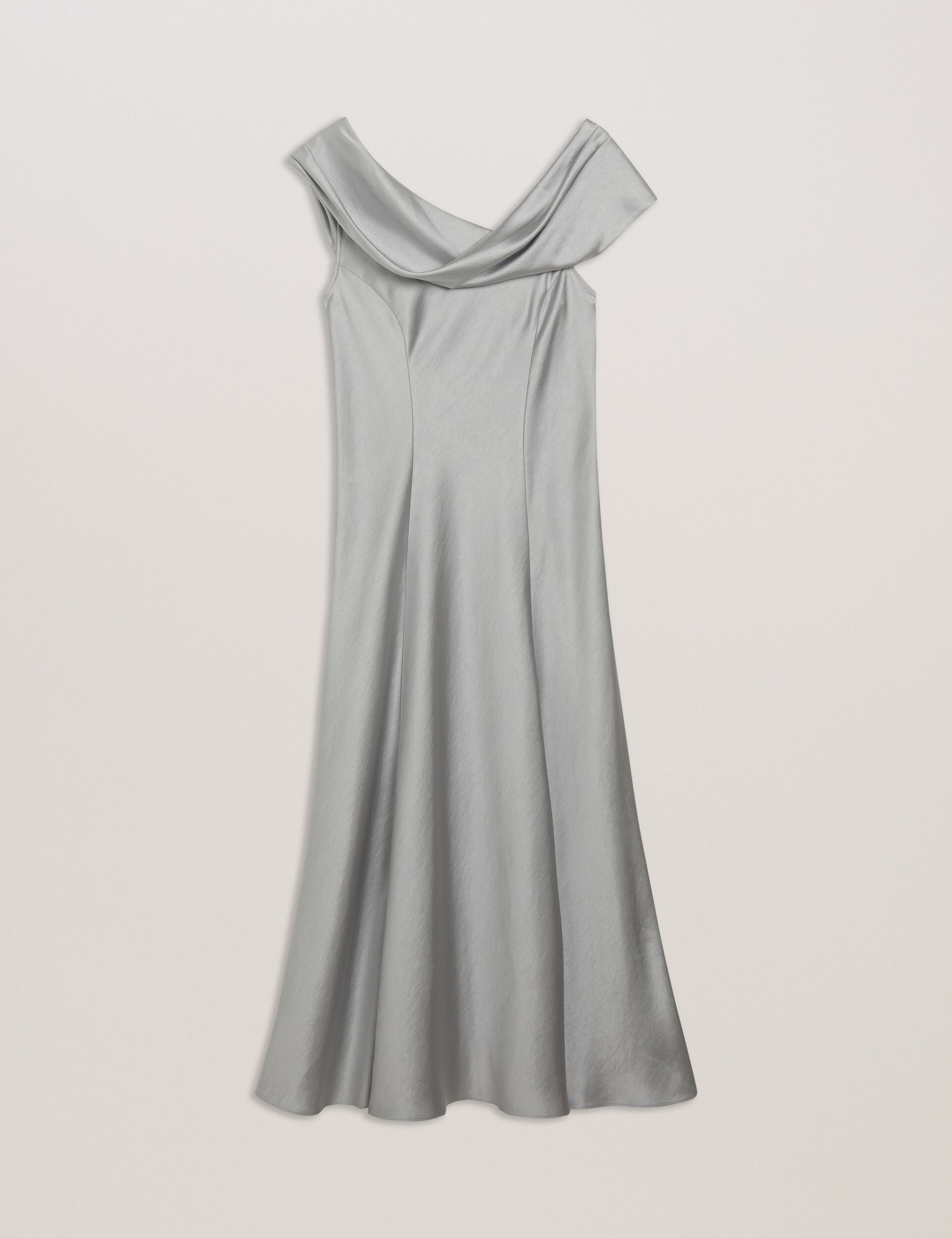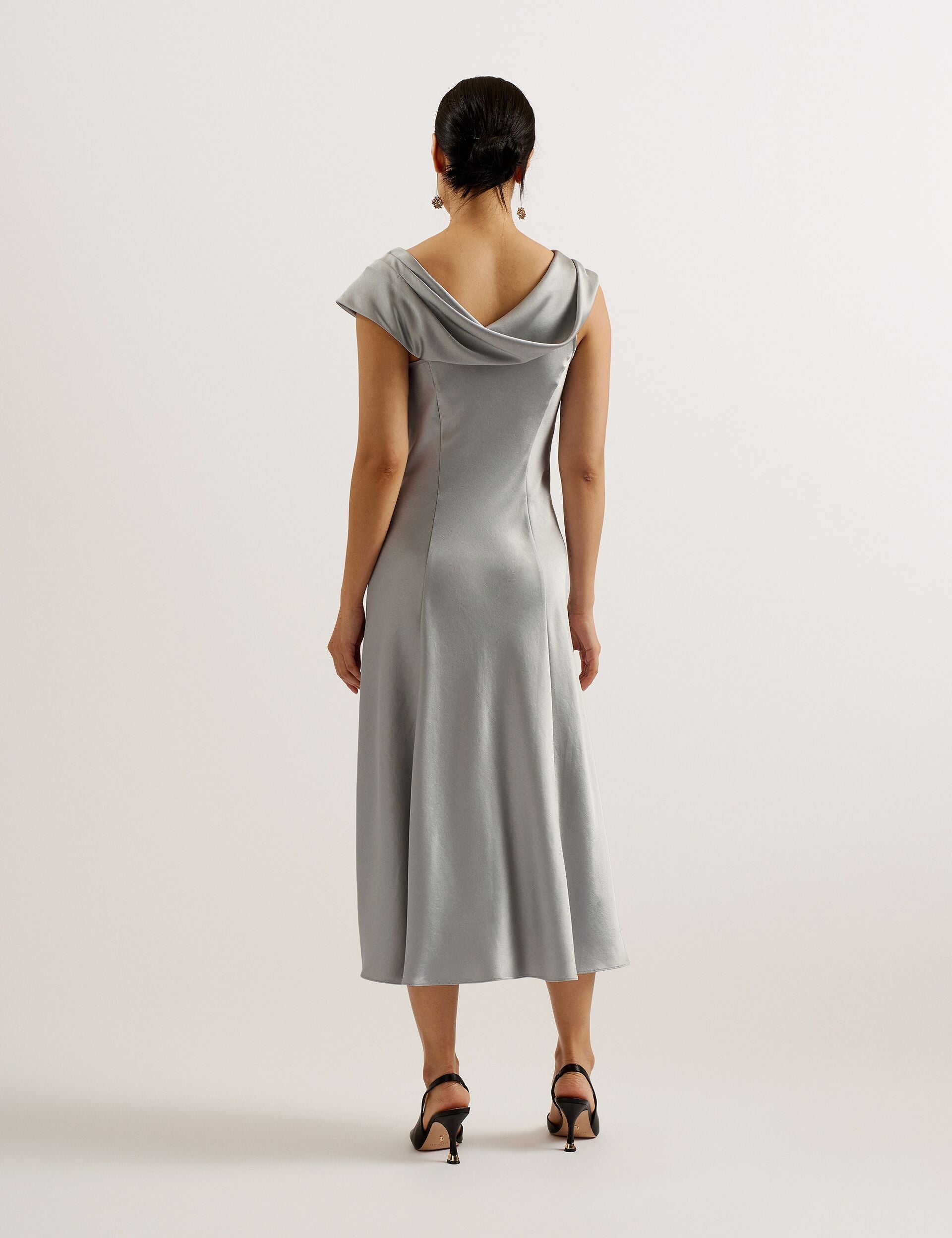 Looking for a dress that gives old Hollywood glamor? Meet SIRINNA. Crafted from a luxe satin, this bias-cut midi dress effortlessly drapes across your shoulders, adding the perfect amount of elegance. Pair it with an up-do and simple accessories to let this piece shine.